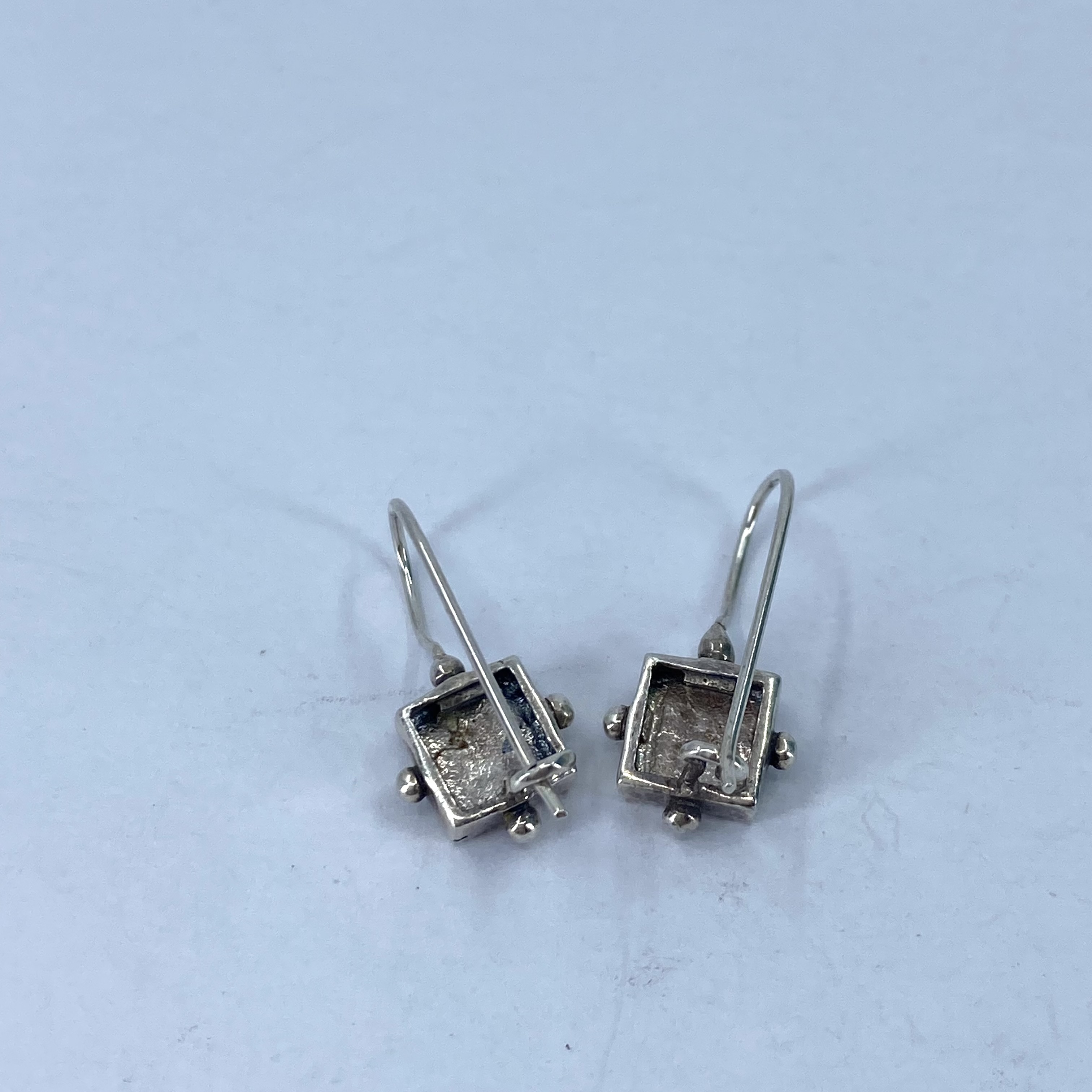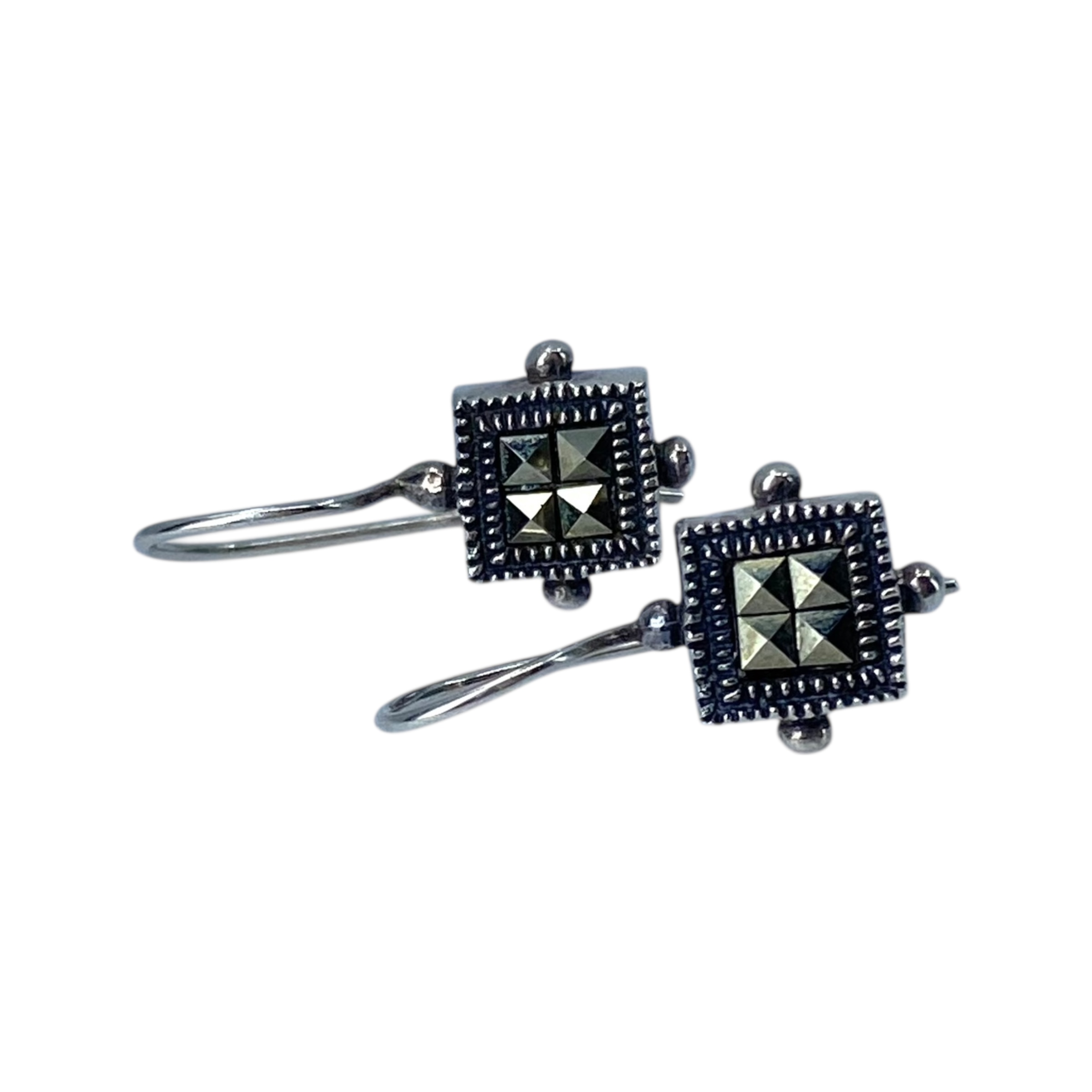 Signed Sterling Square Marcasite Hook Earrings 3g