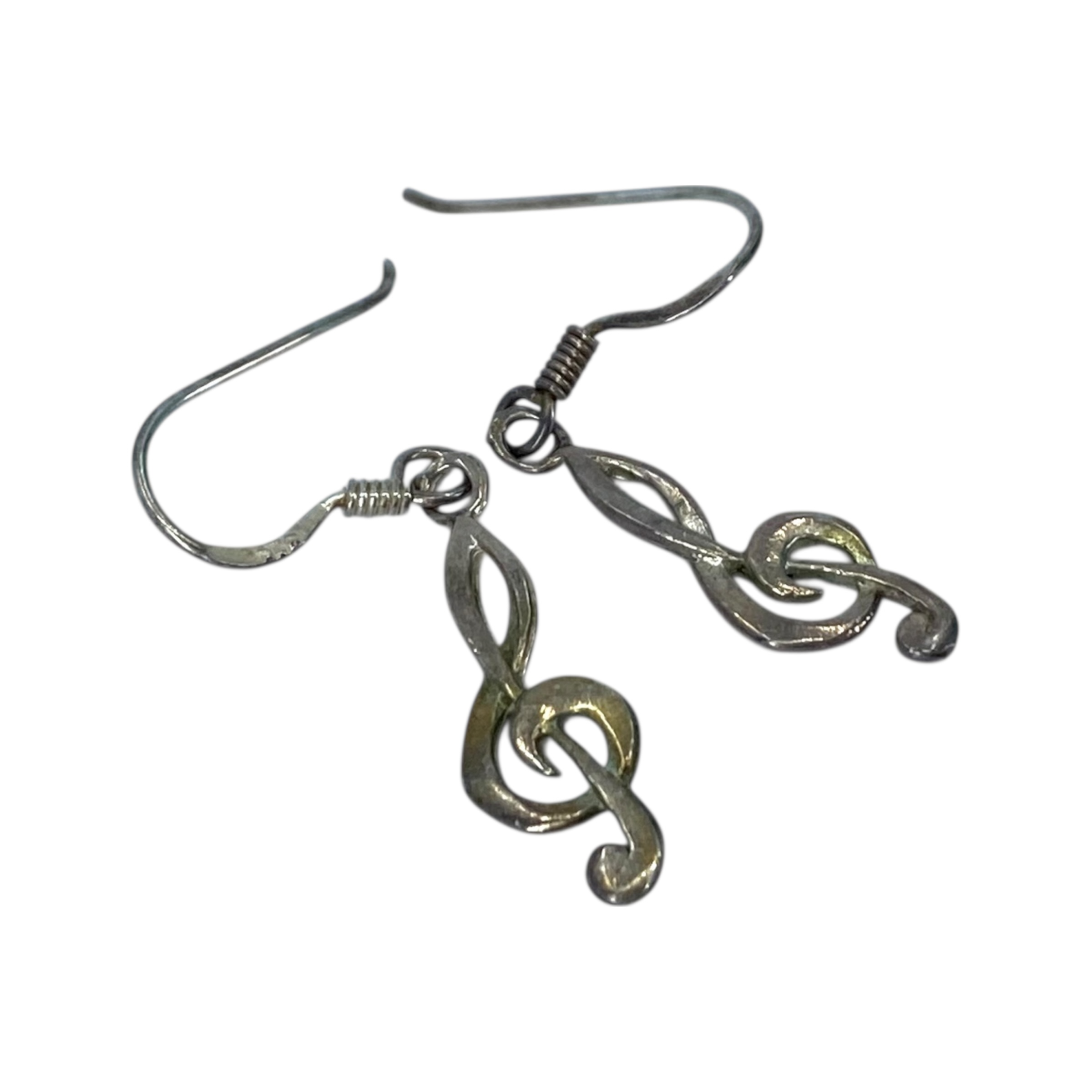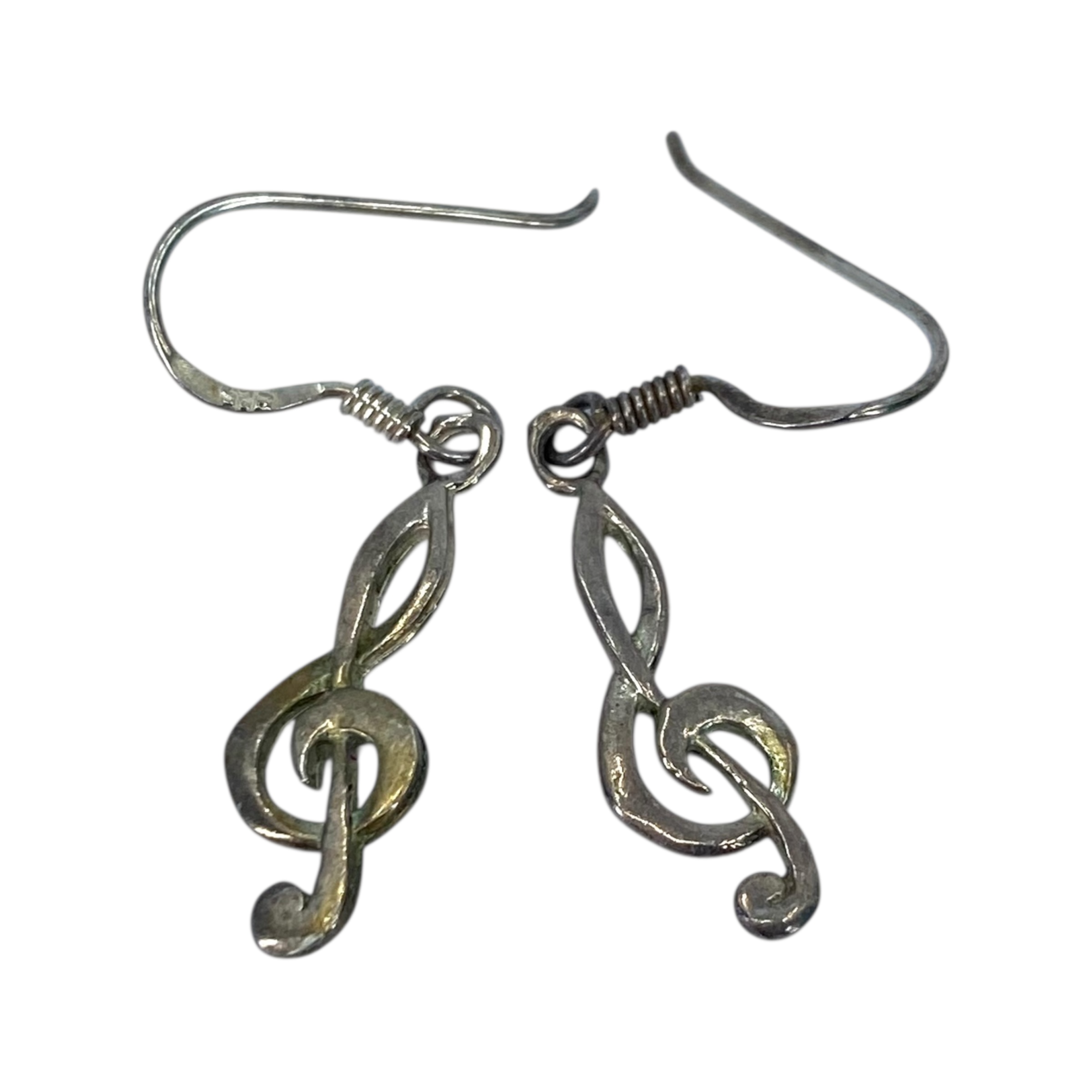 Sterling Treble Clef Hook Earrings 1.4g, Engraved 925