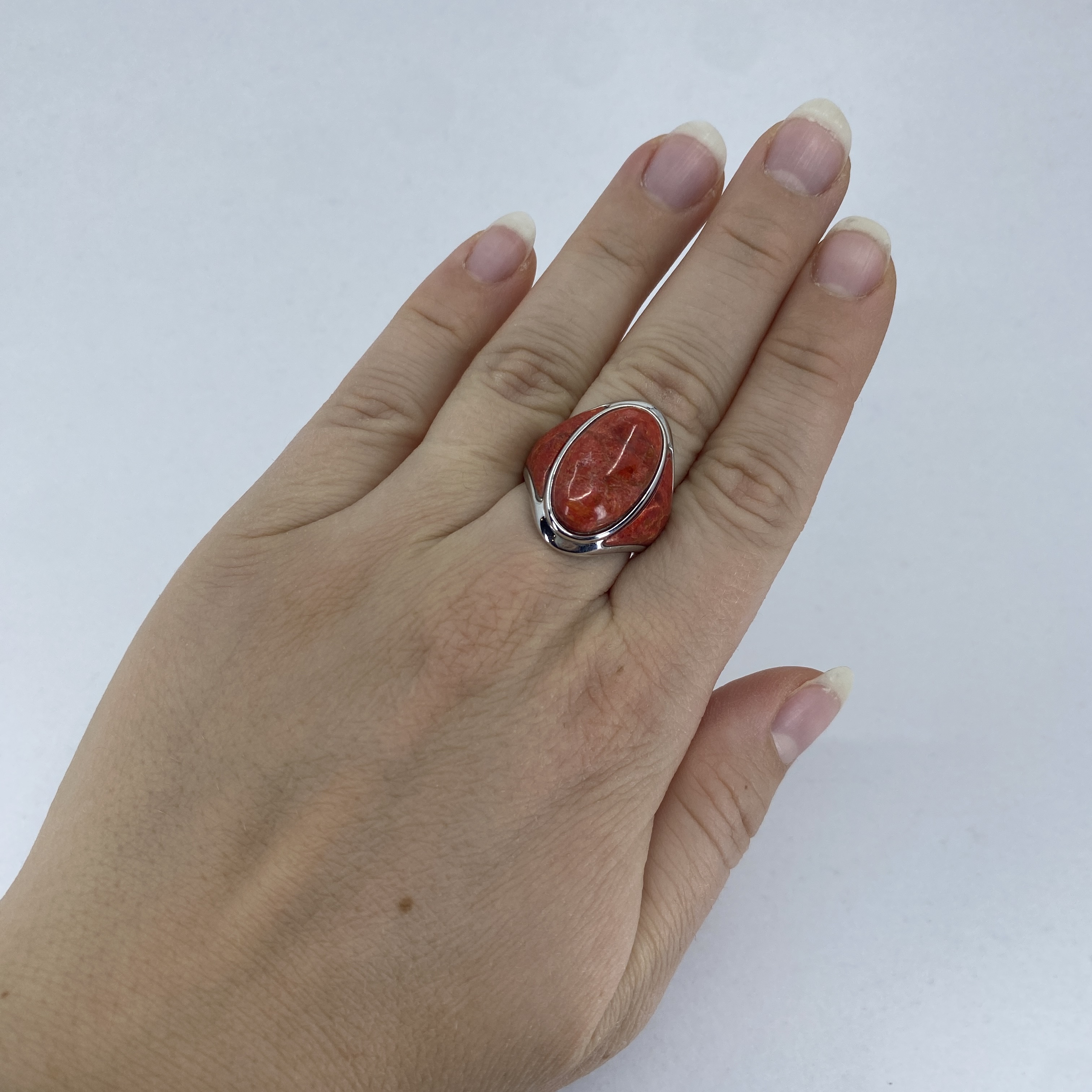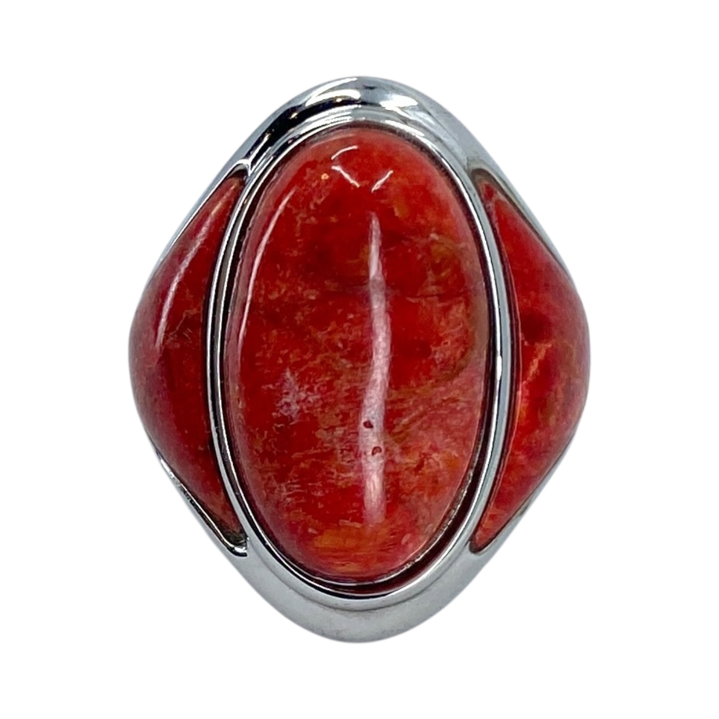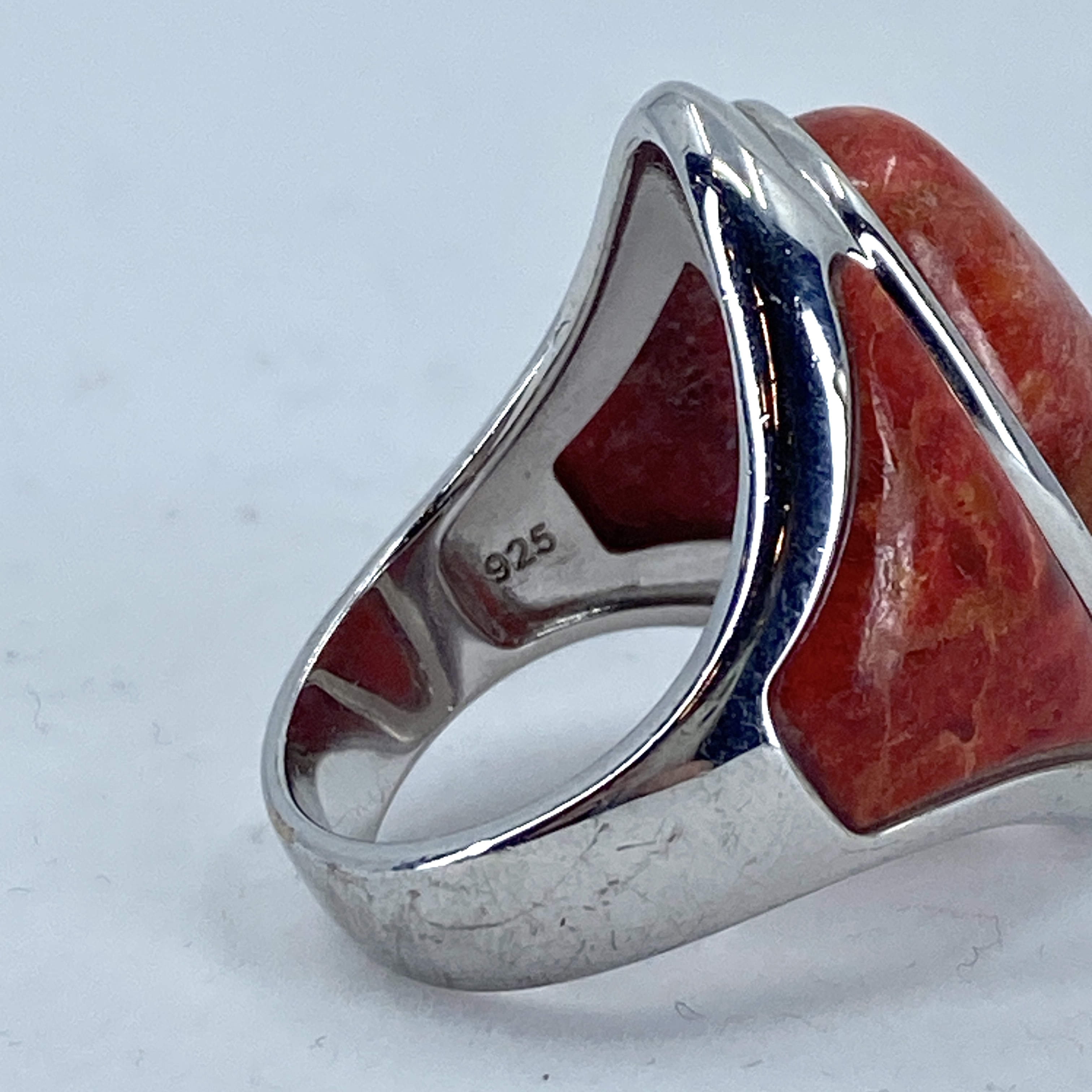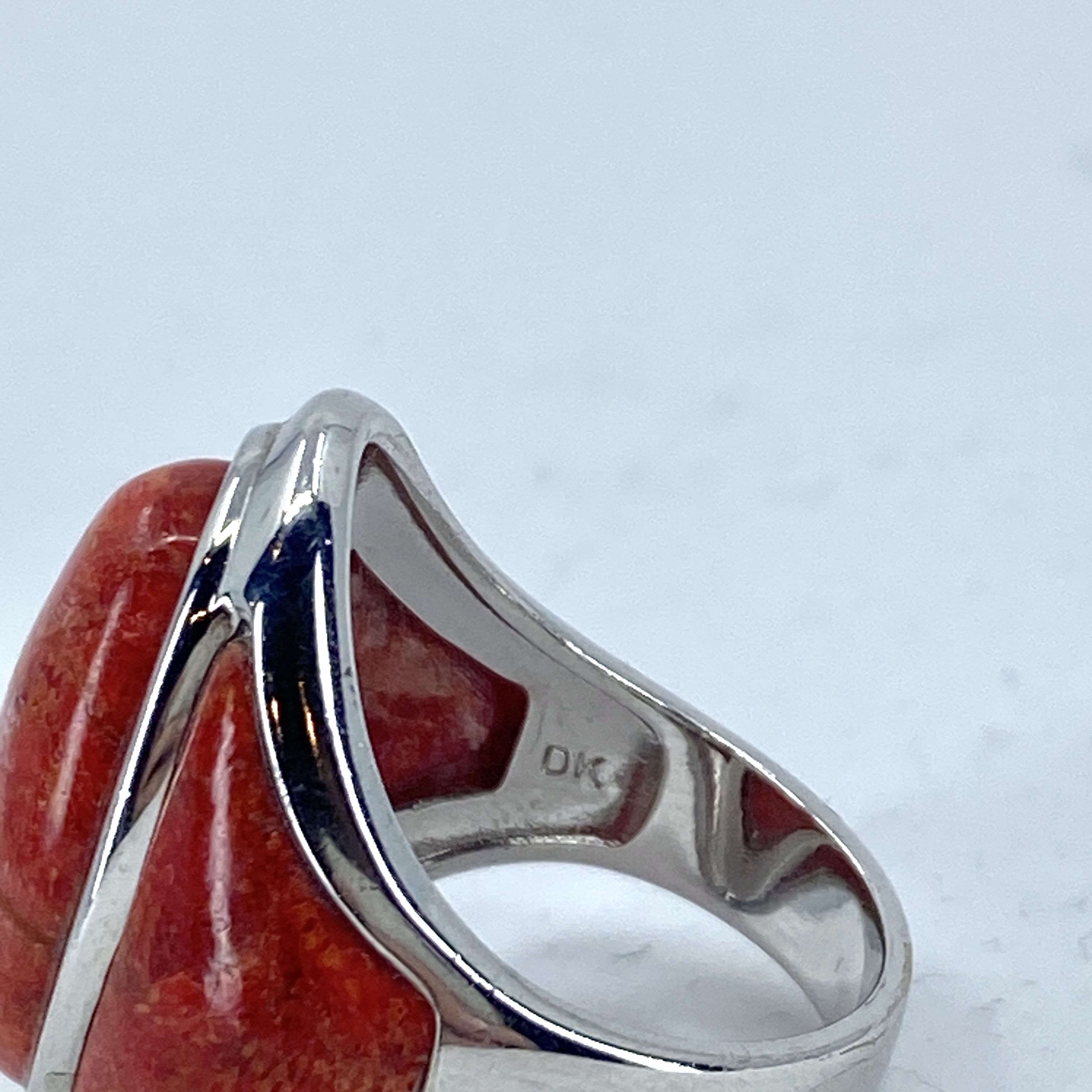 Signed Sterling Red Spiny Oyster Statement Ring 10g sz 8 Engraved DK 925