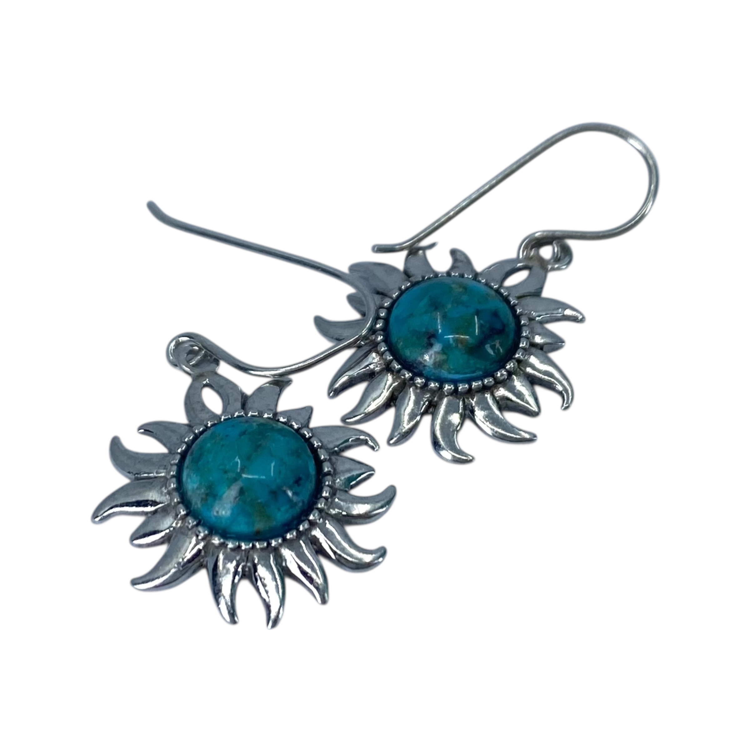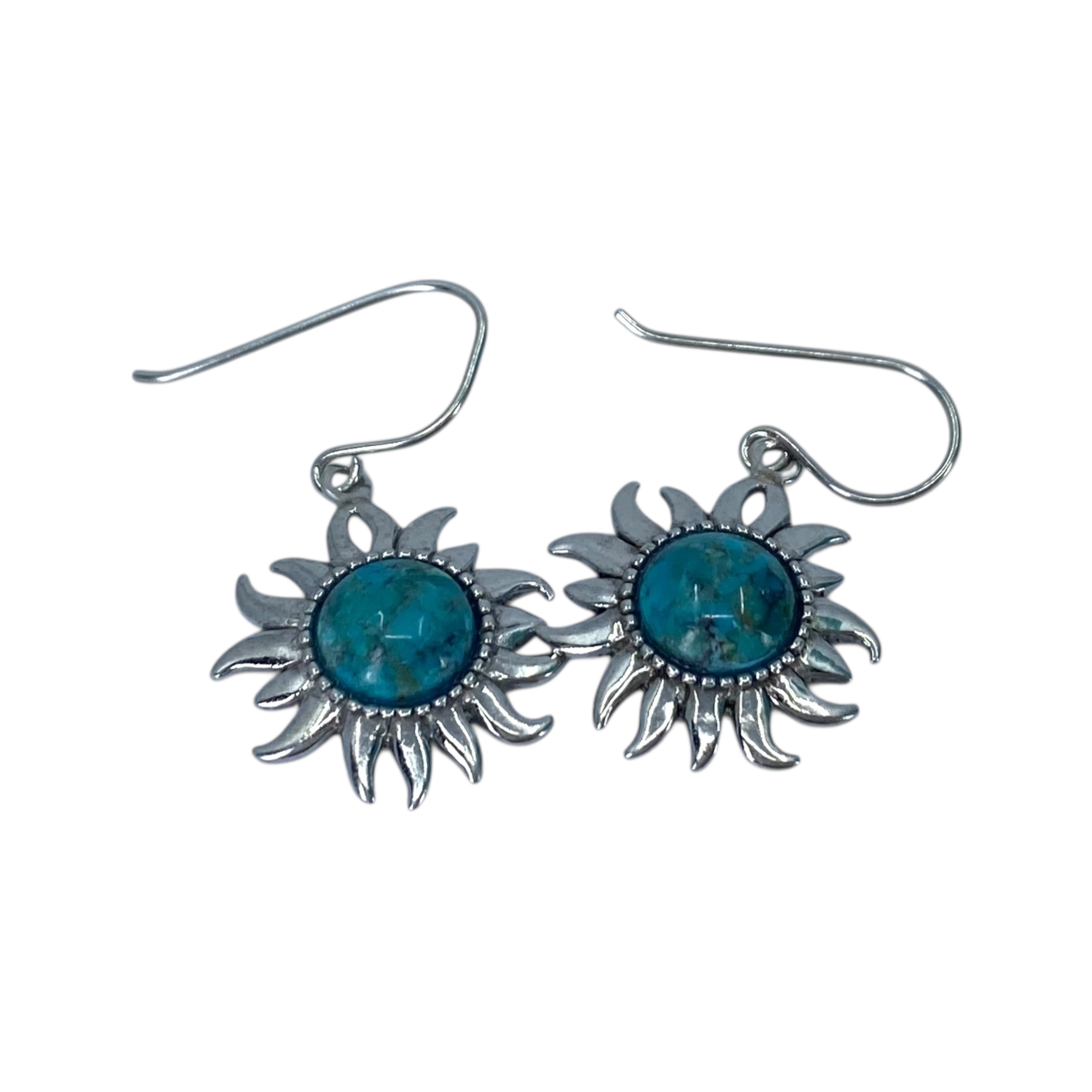 Signed Sterling Turquoise Sun Earrings 5g