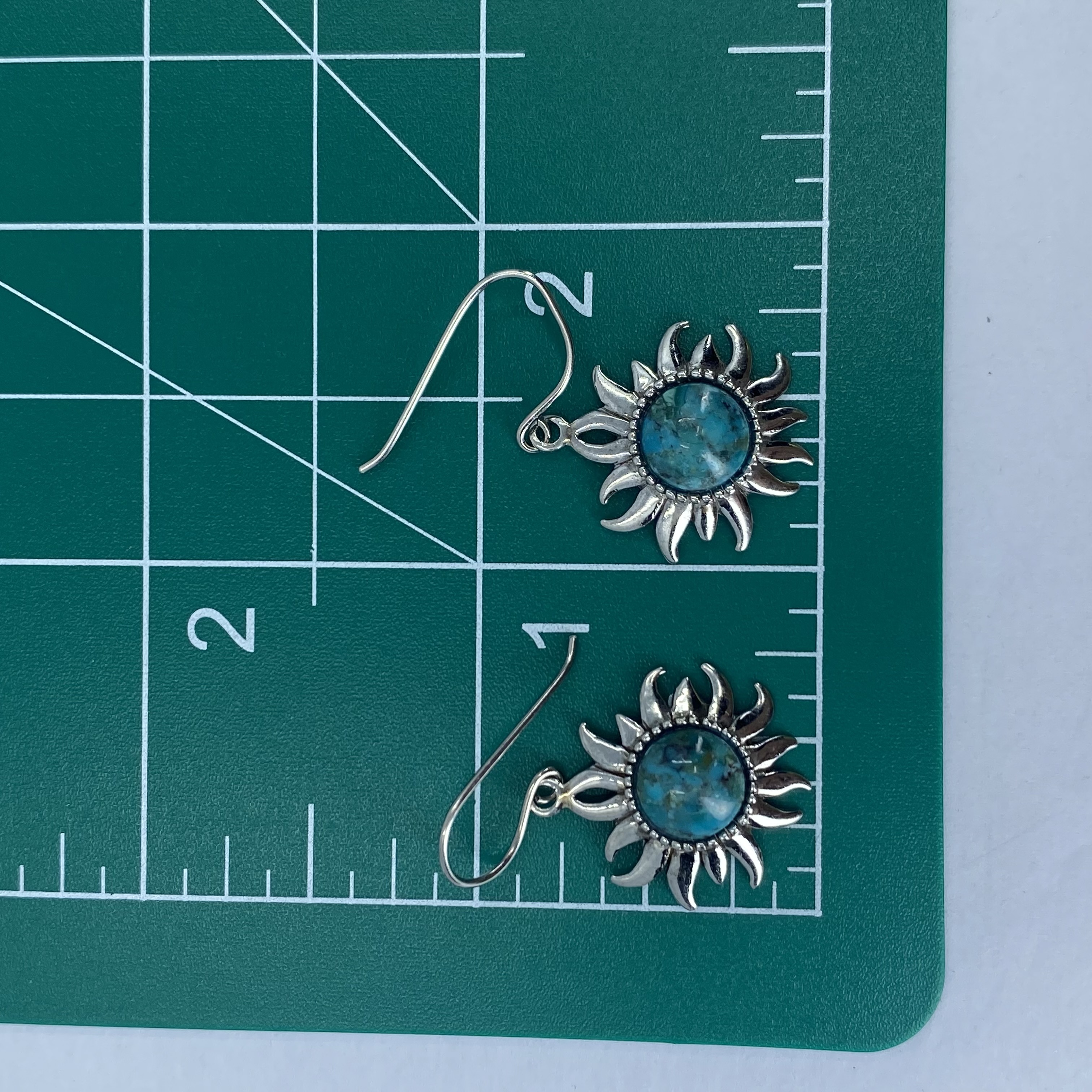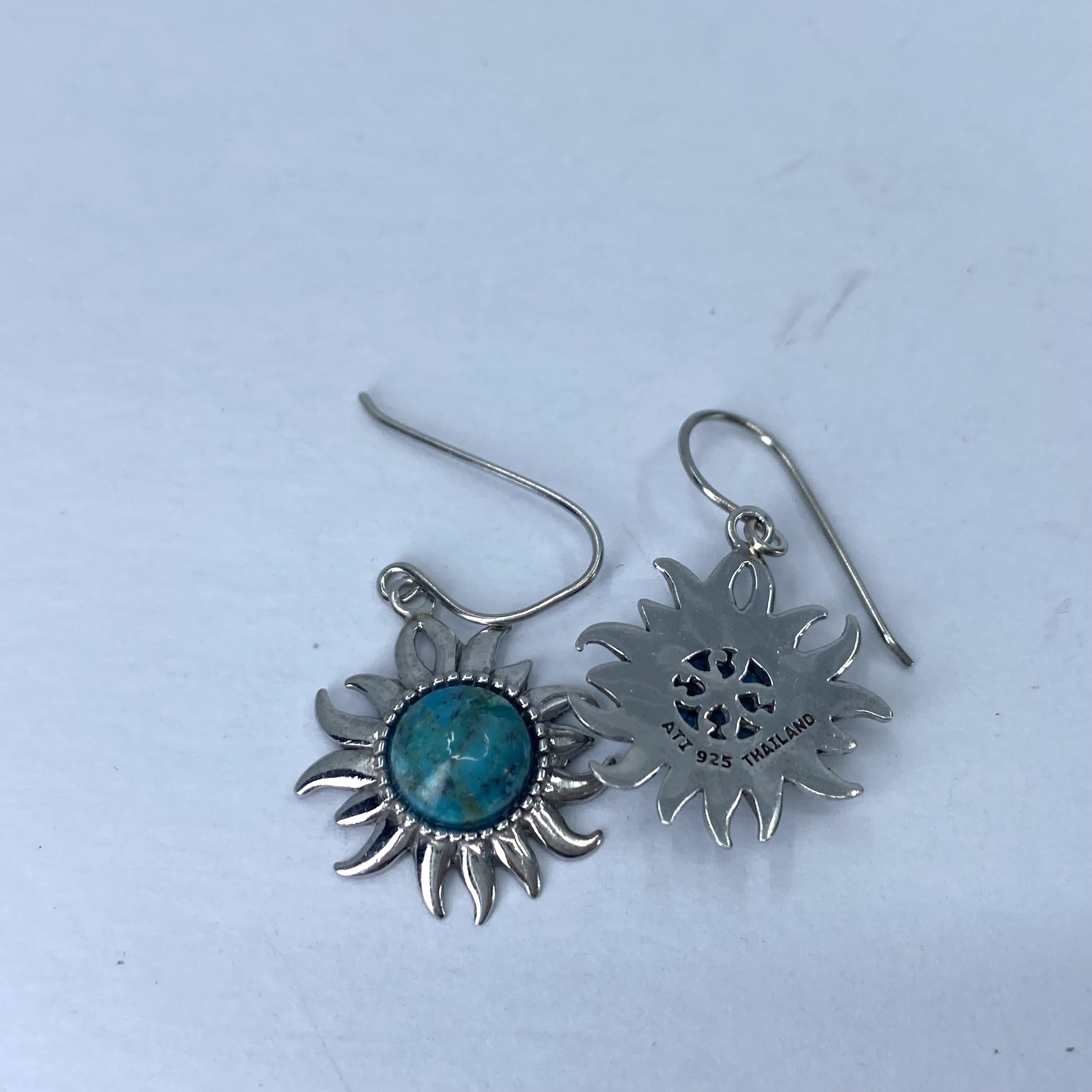 Signed Sterling Turquoise Sun Earrings 5g , engraved ATI 925 Thailand