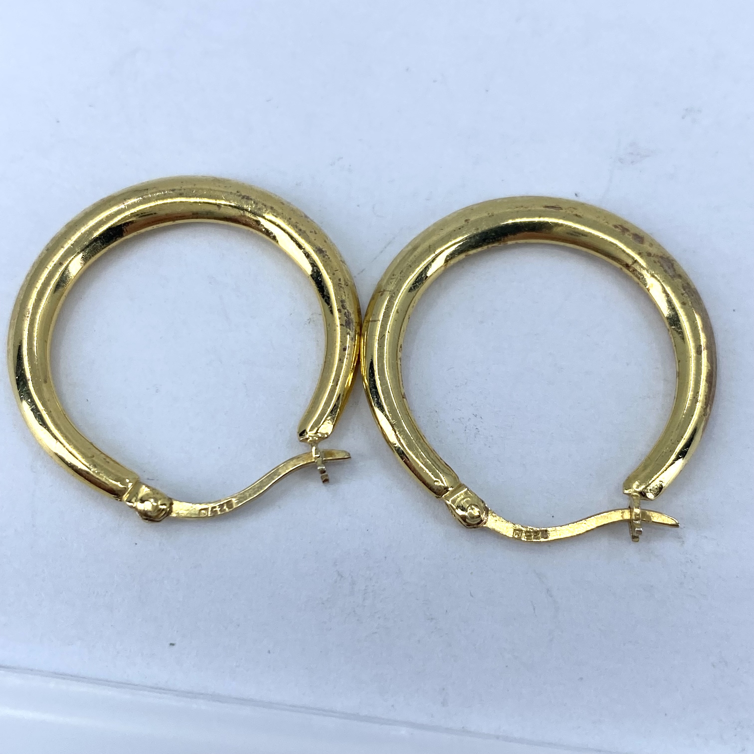 Signed Gold Over Sterling Hoop Earrings 4g, Engraved M 925