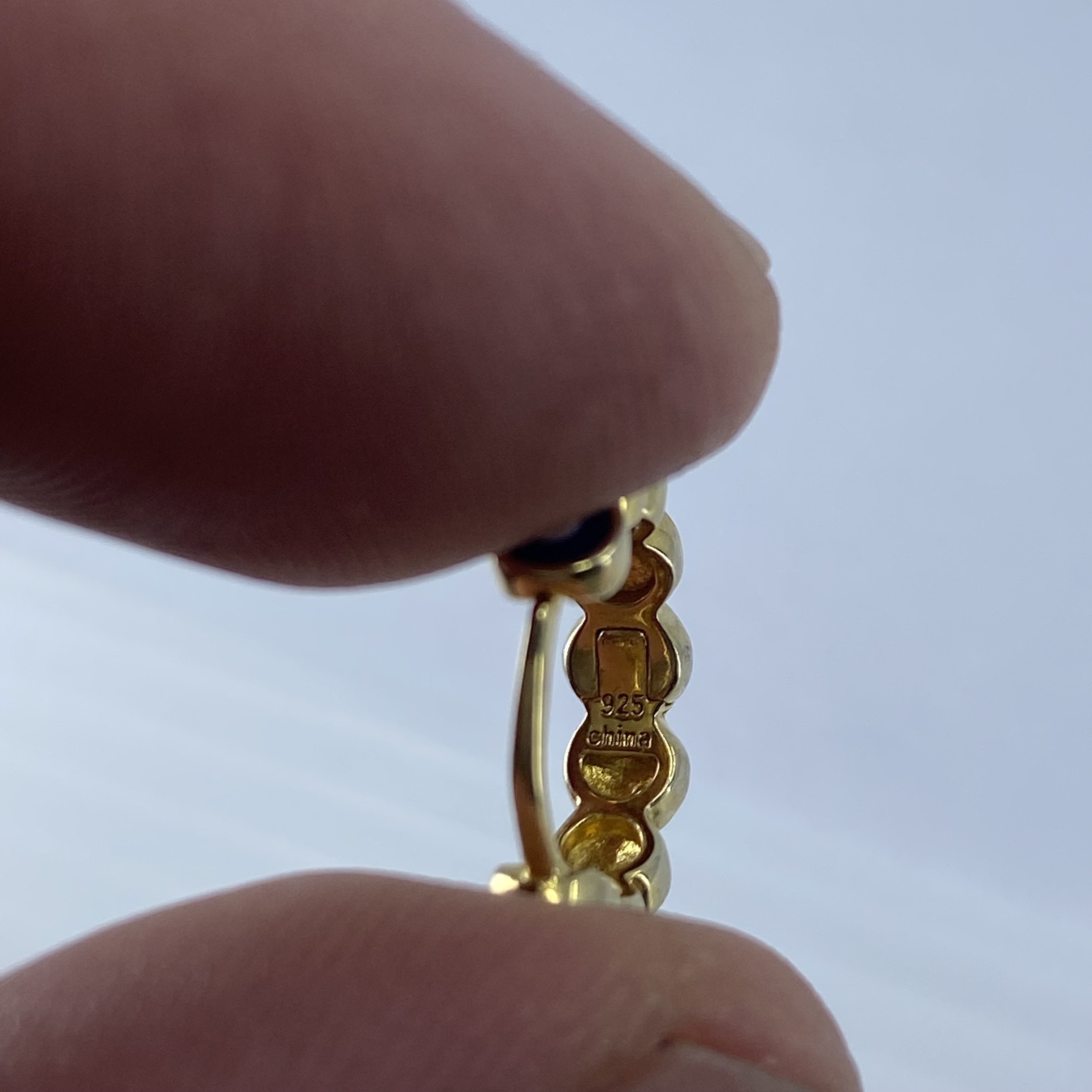 Gold Over Sterling Painted Eye Hoop Earrings 3g engraved 925 China