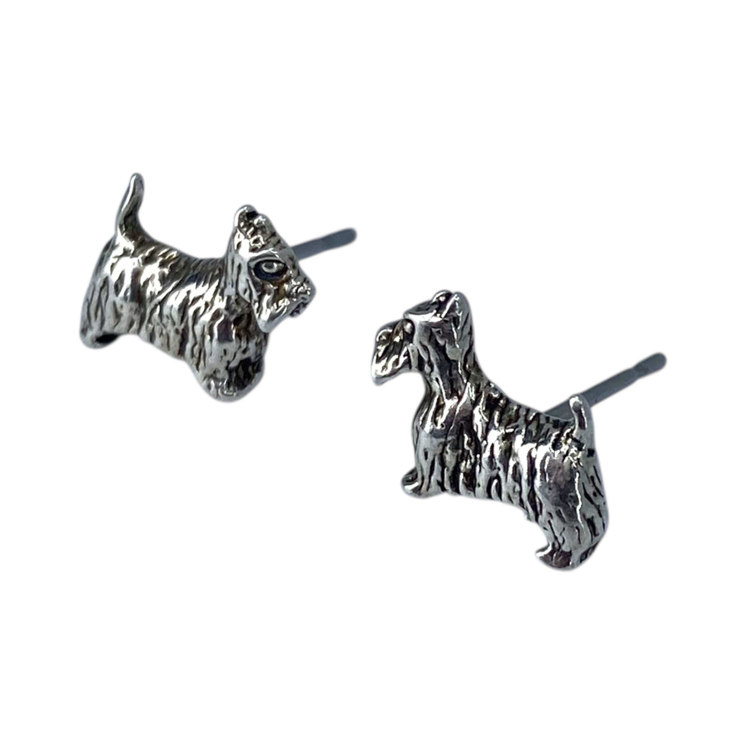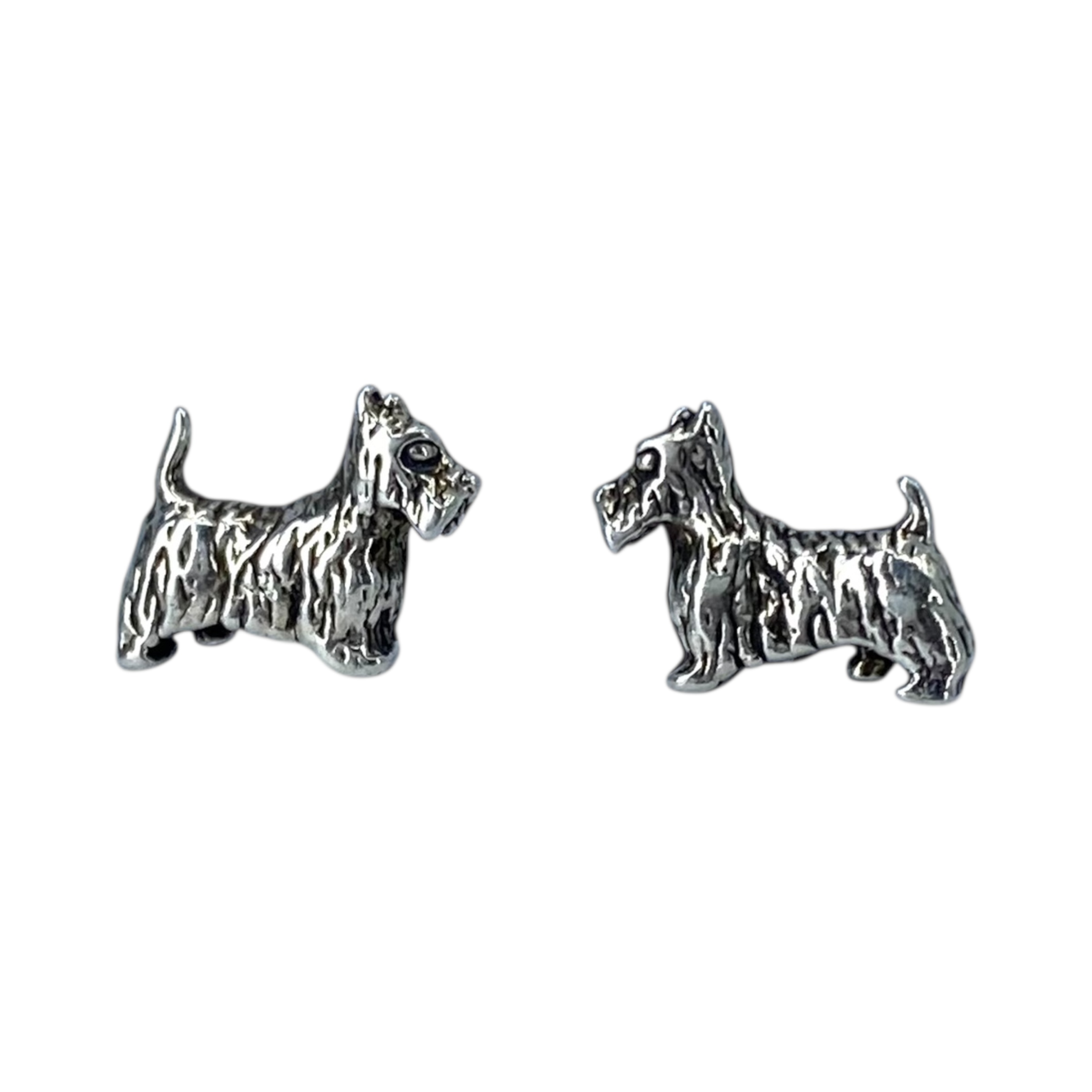 Sterling Scottish Terrier Stud Earrings 1.4g Engraved Flower Hallmark 925 copyright