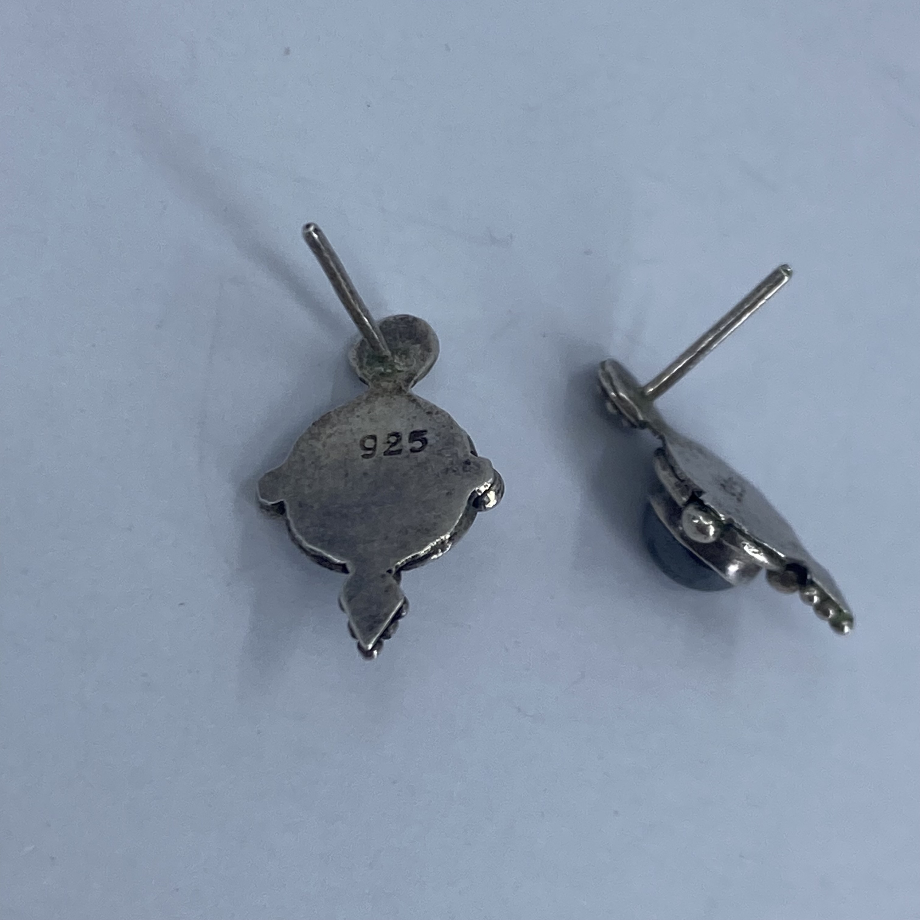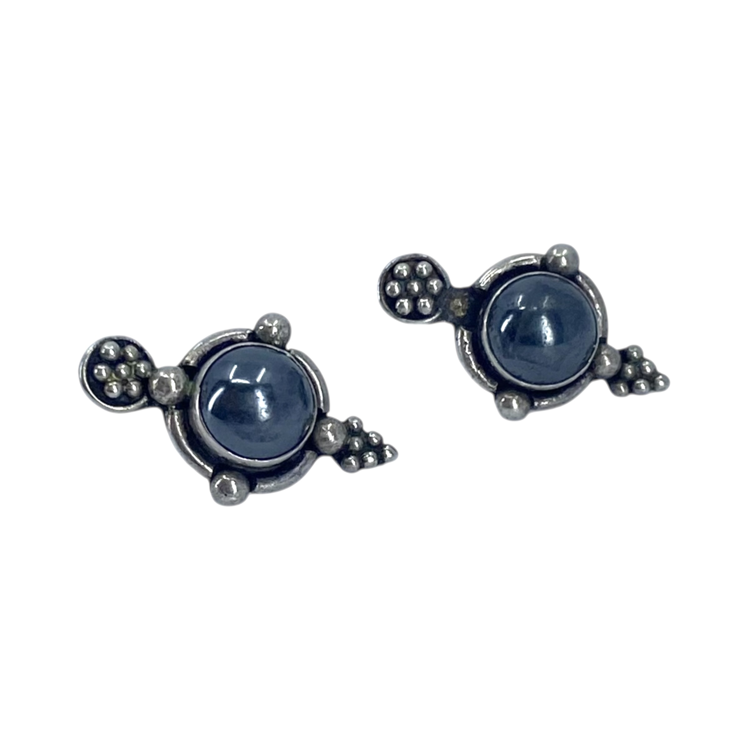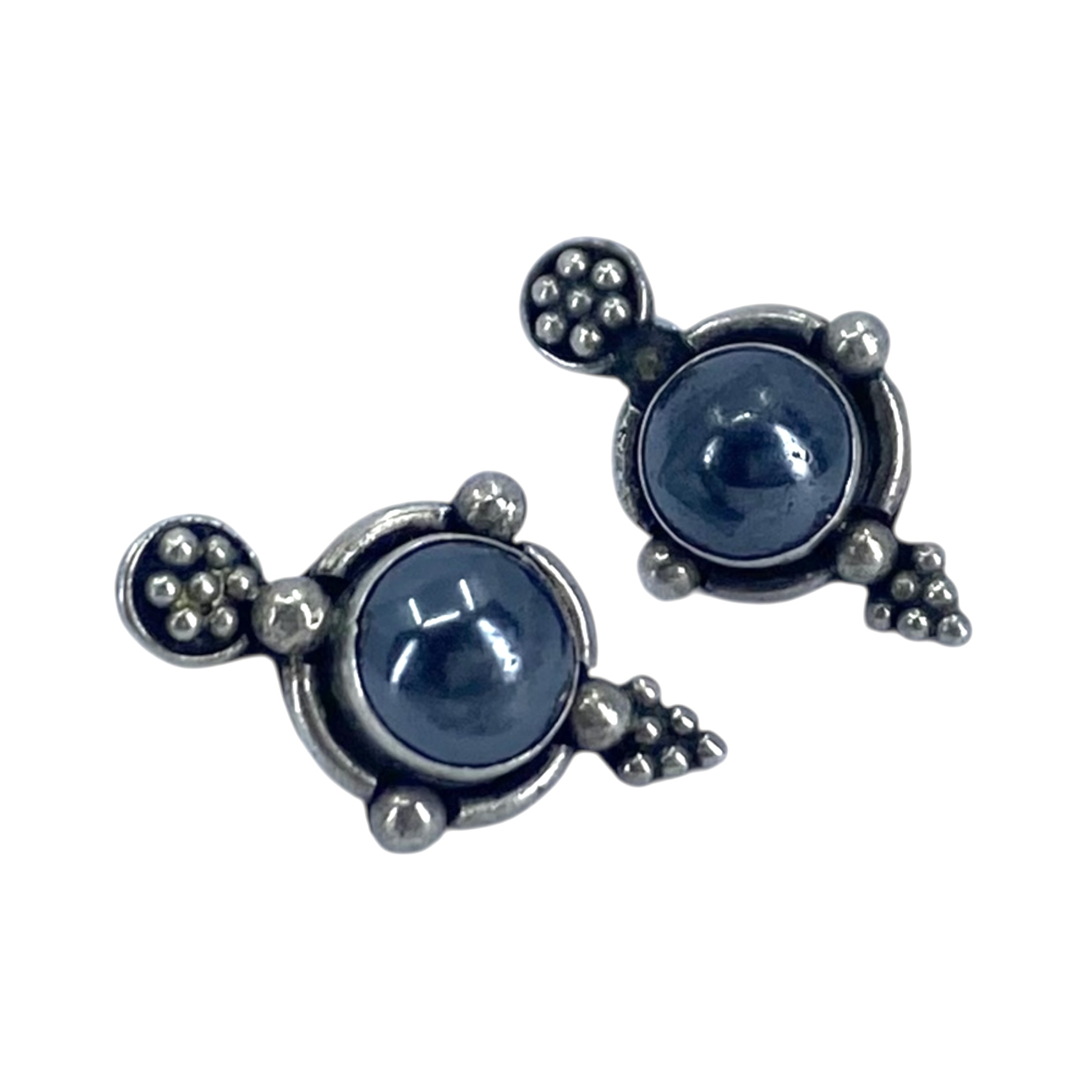 Sterling Circle Hematite Vintage Earrings 2.1g Engraved 925