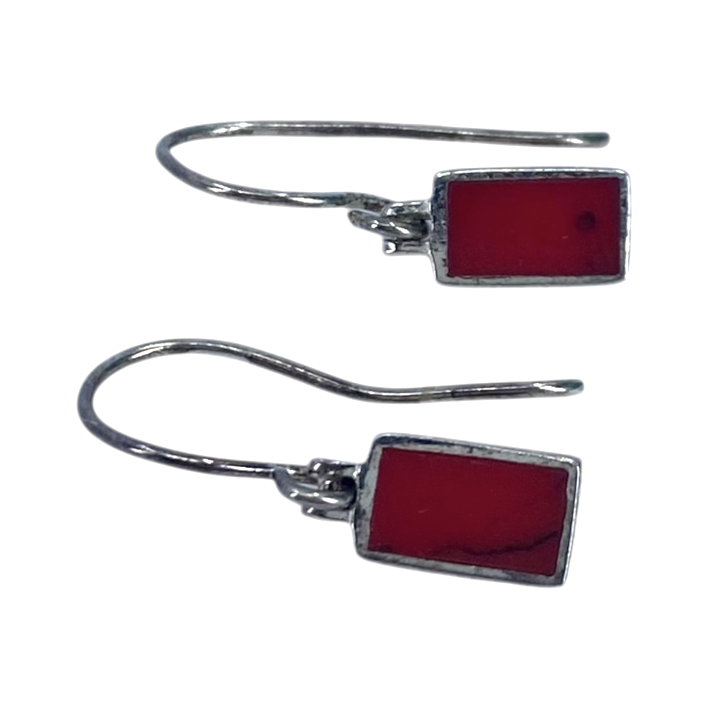 Signed Sterling Red Enamel Rectangle Earrings 2g