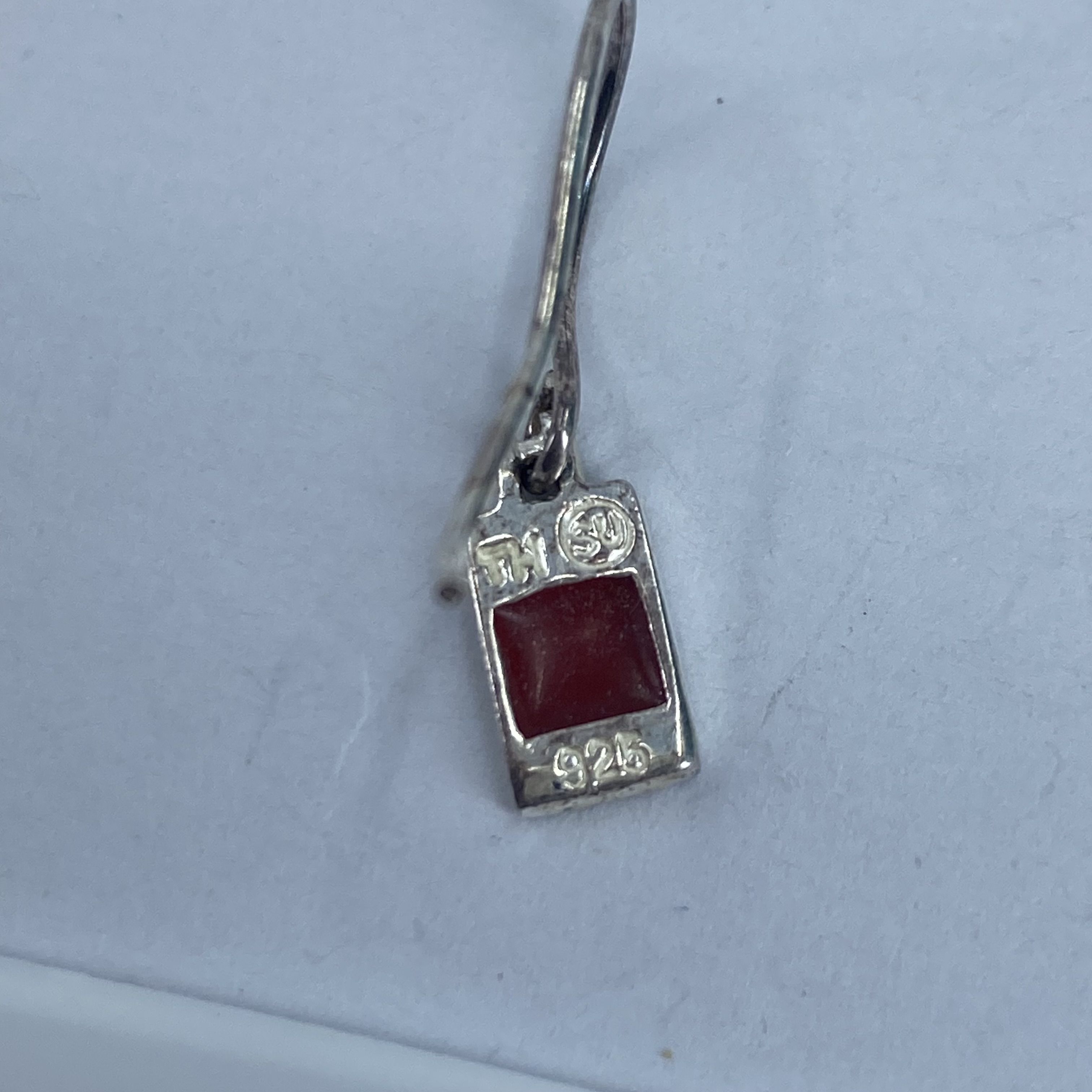 Signed Sterling Red Enamel Rectangle Earrings 2g Engraved TH SU 925