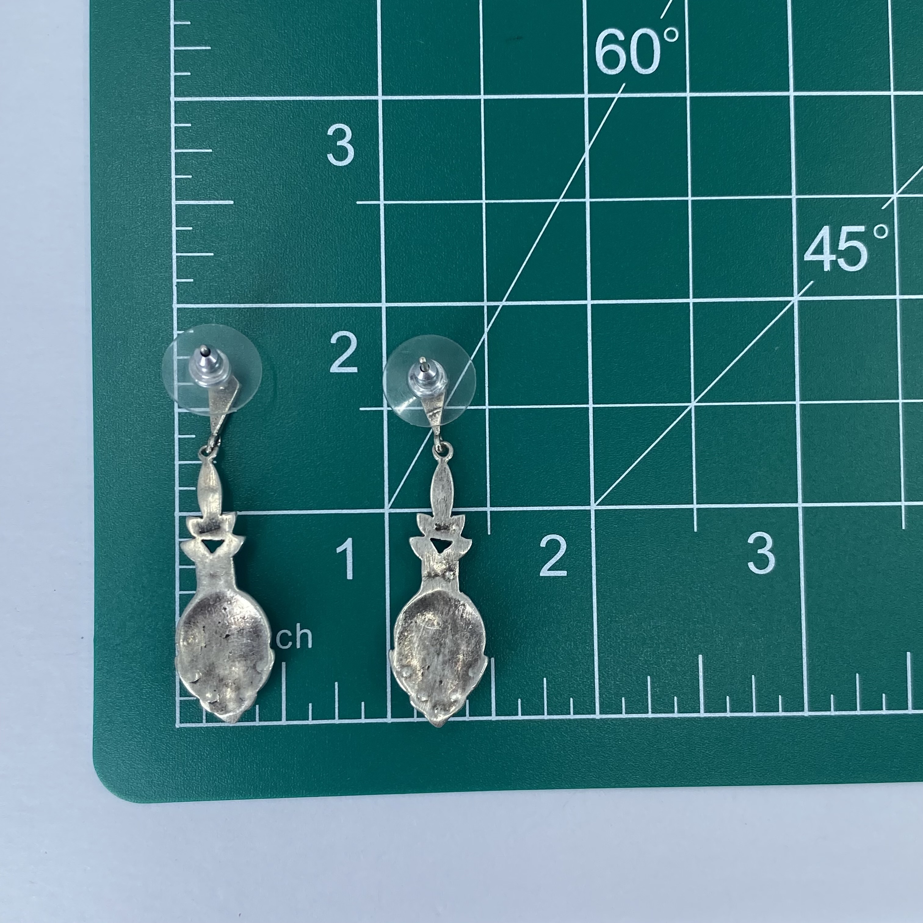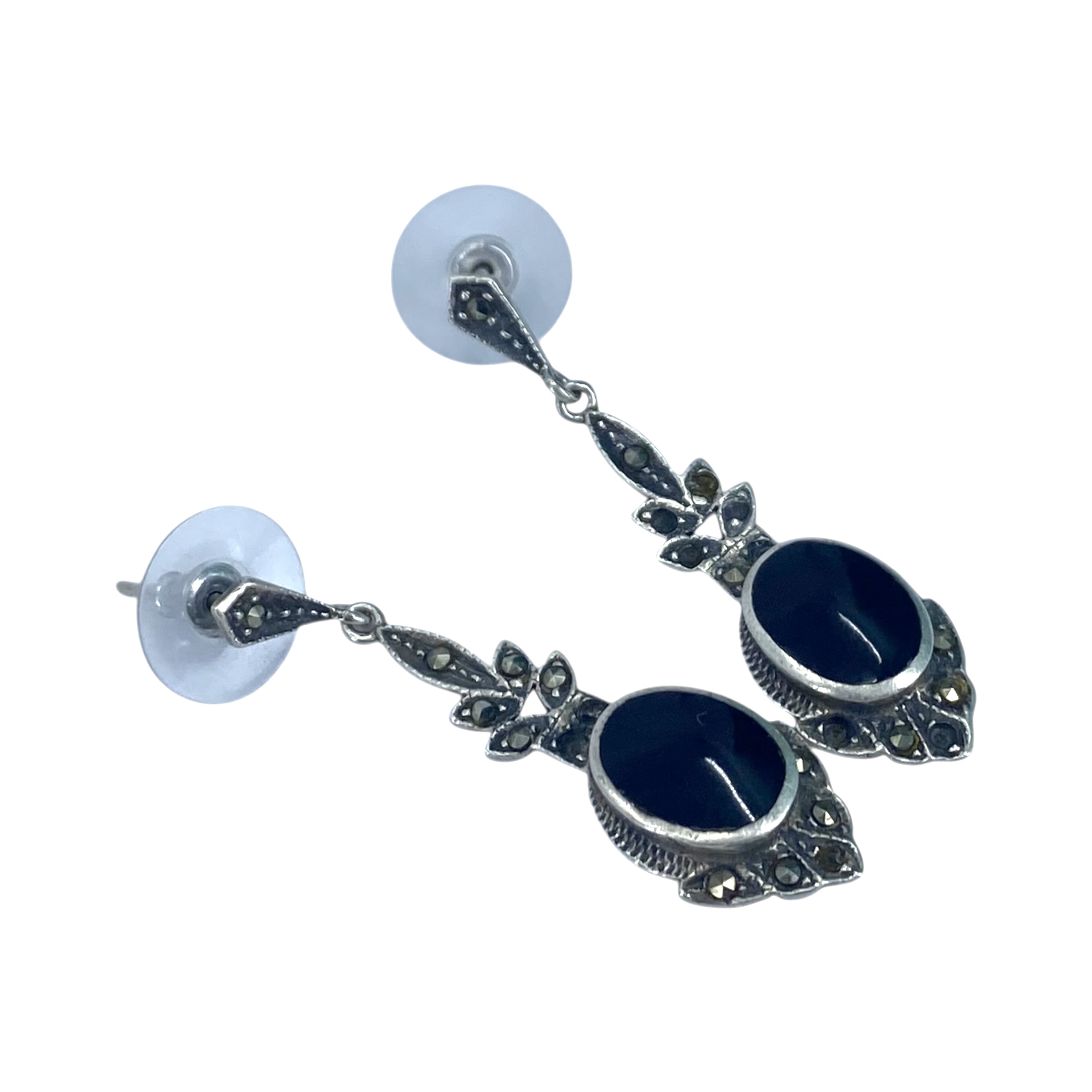 Sterling Marcasite and Black Onyx Vintage Drop Earrings 6g Engraved 925 Missing Stones