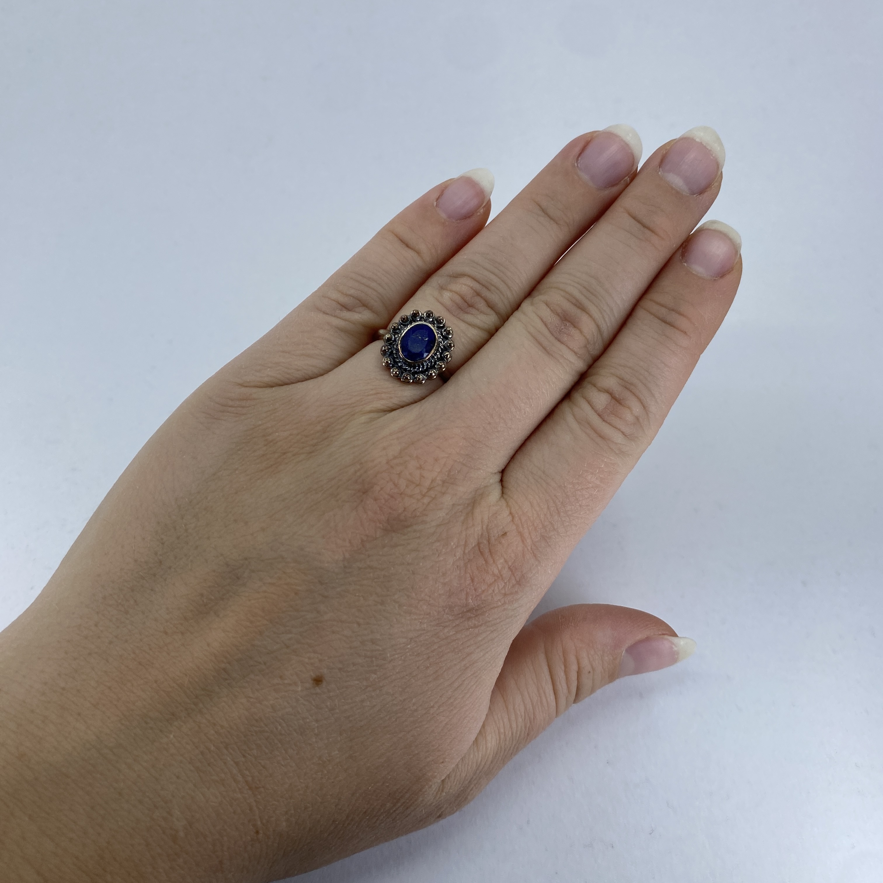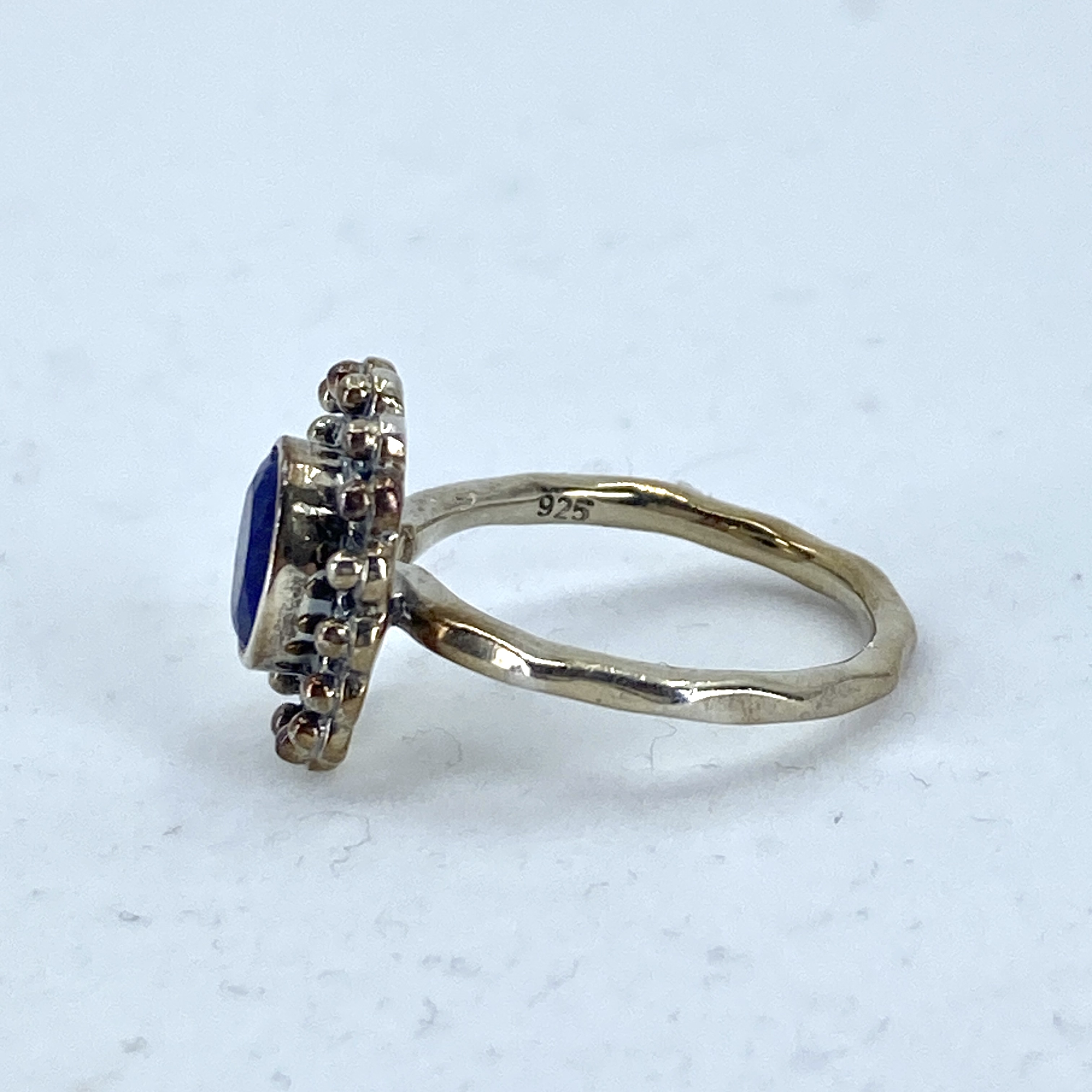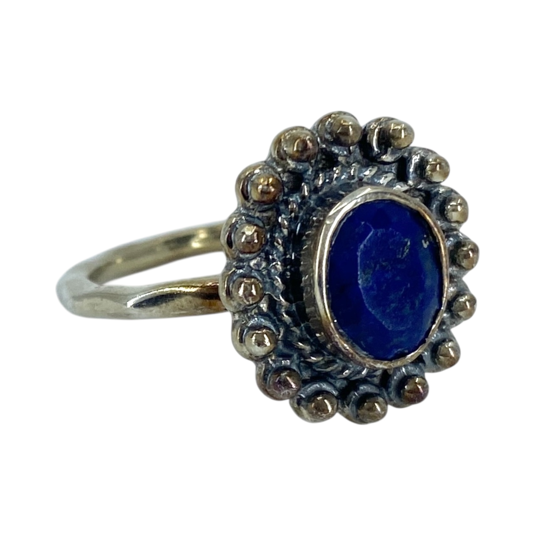 Sterling Lapis Lazuli Oval Beaded Ring 4g sz 6 Engraved 925