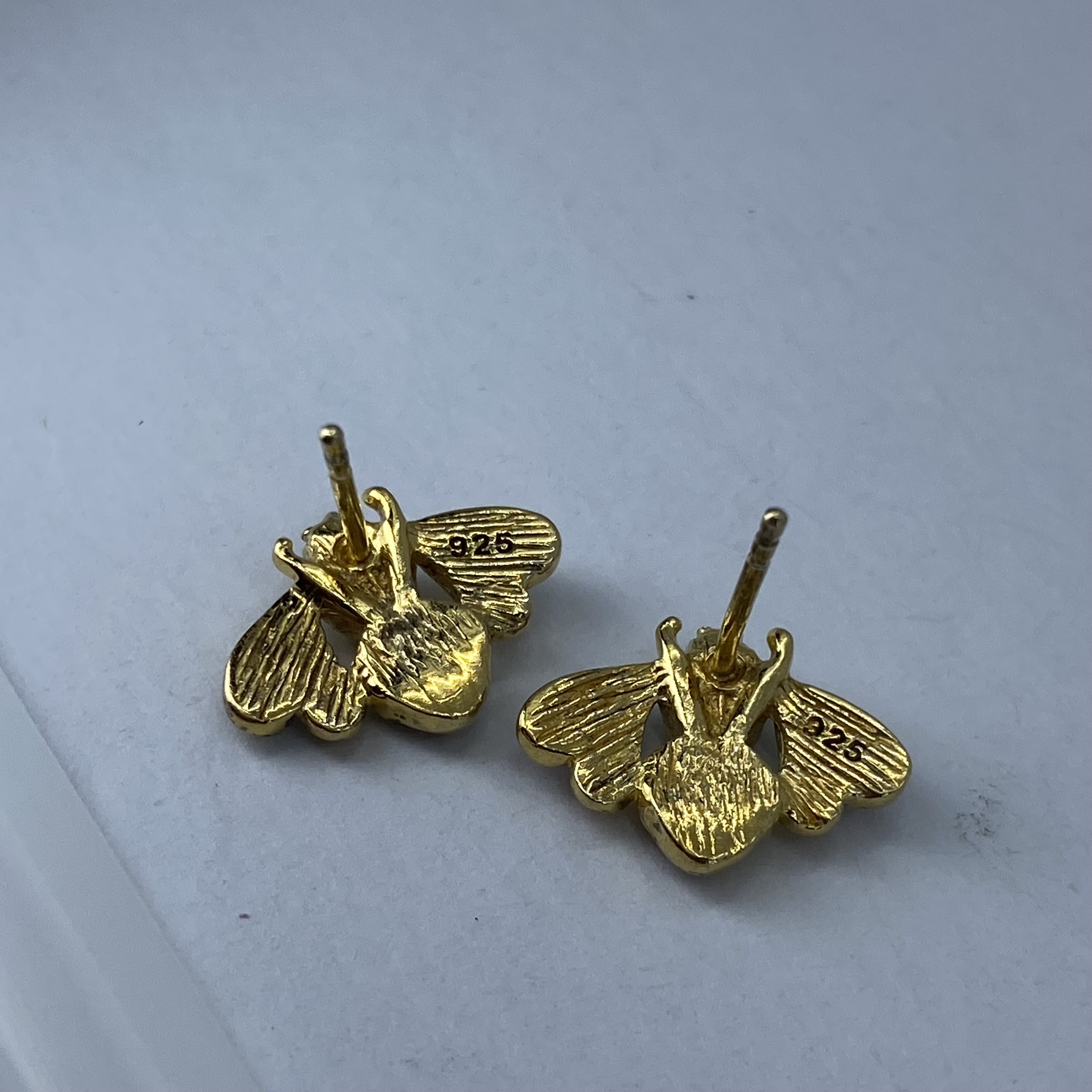 Gold Over Sterling Queen Bee Earrings 4g Engraved 925