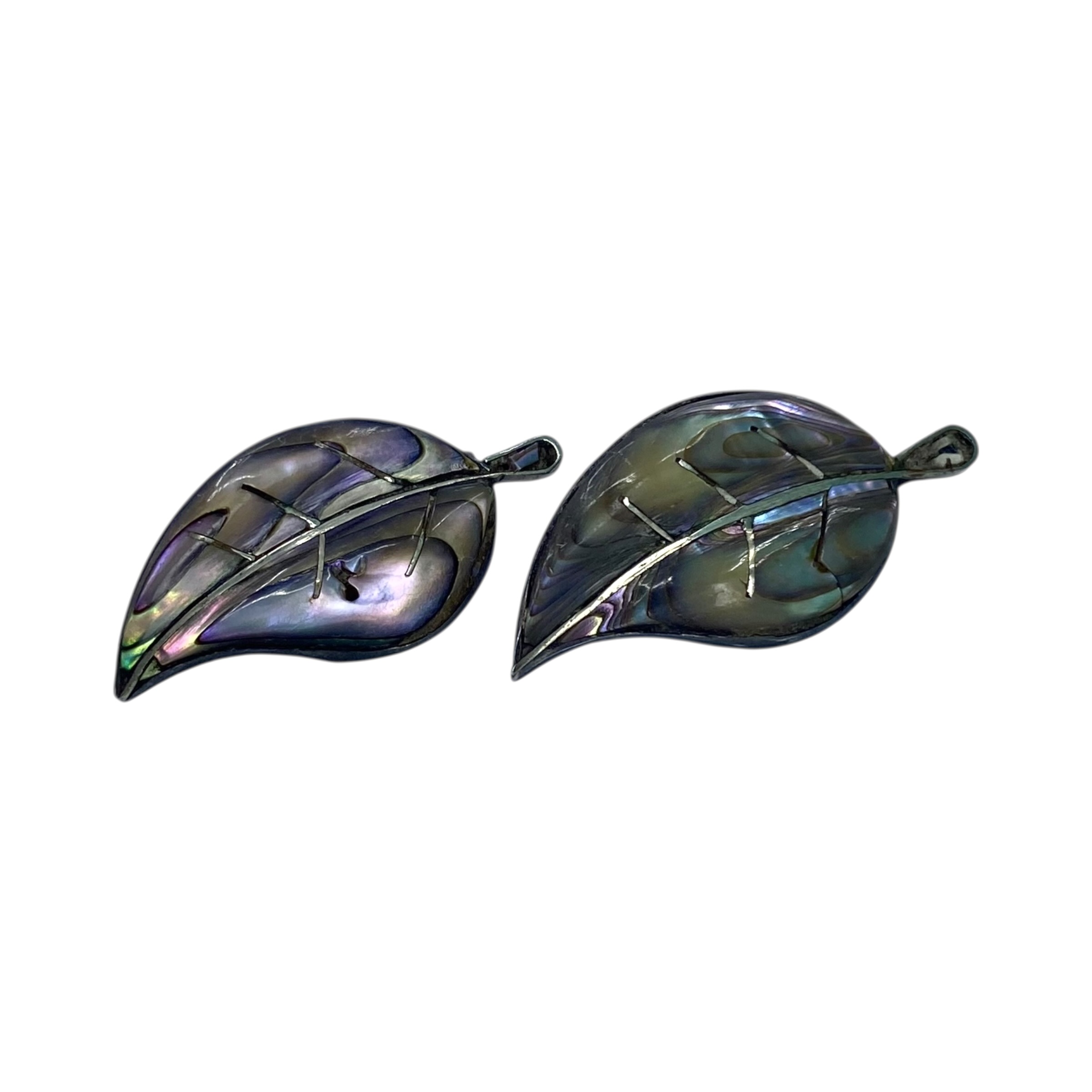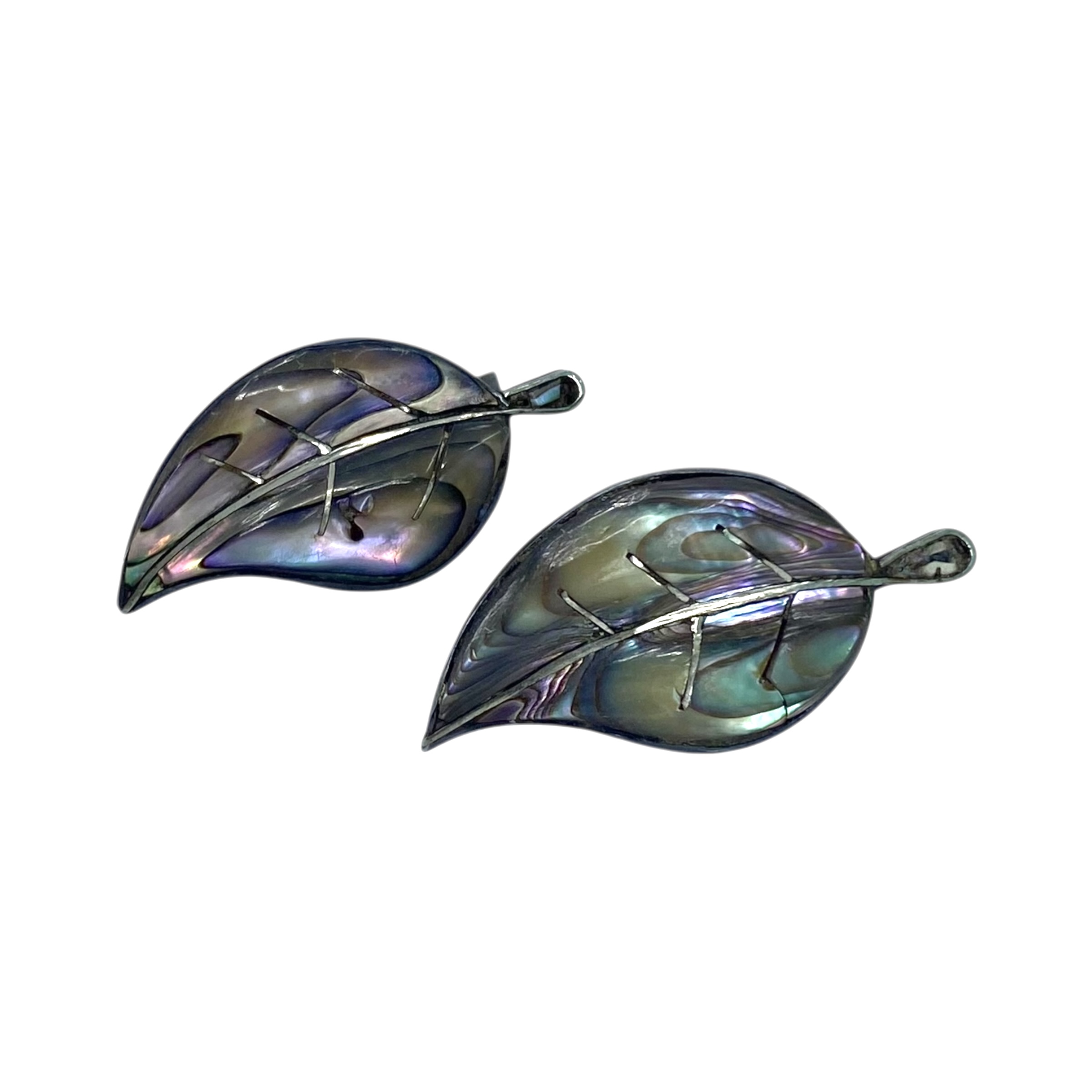 Taxco Sterling Abalone Leaf Screw Clip On Earrings 7g