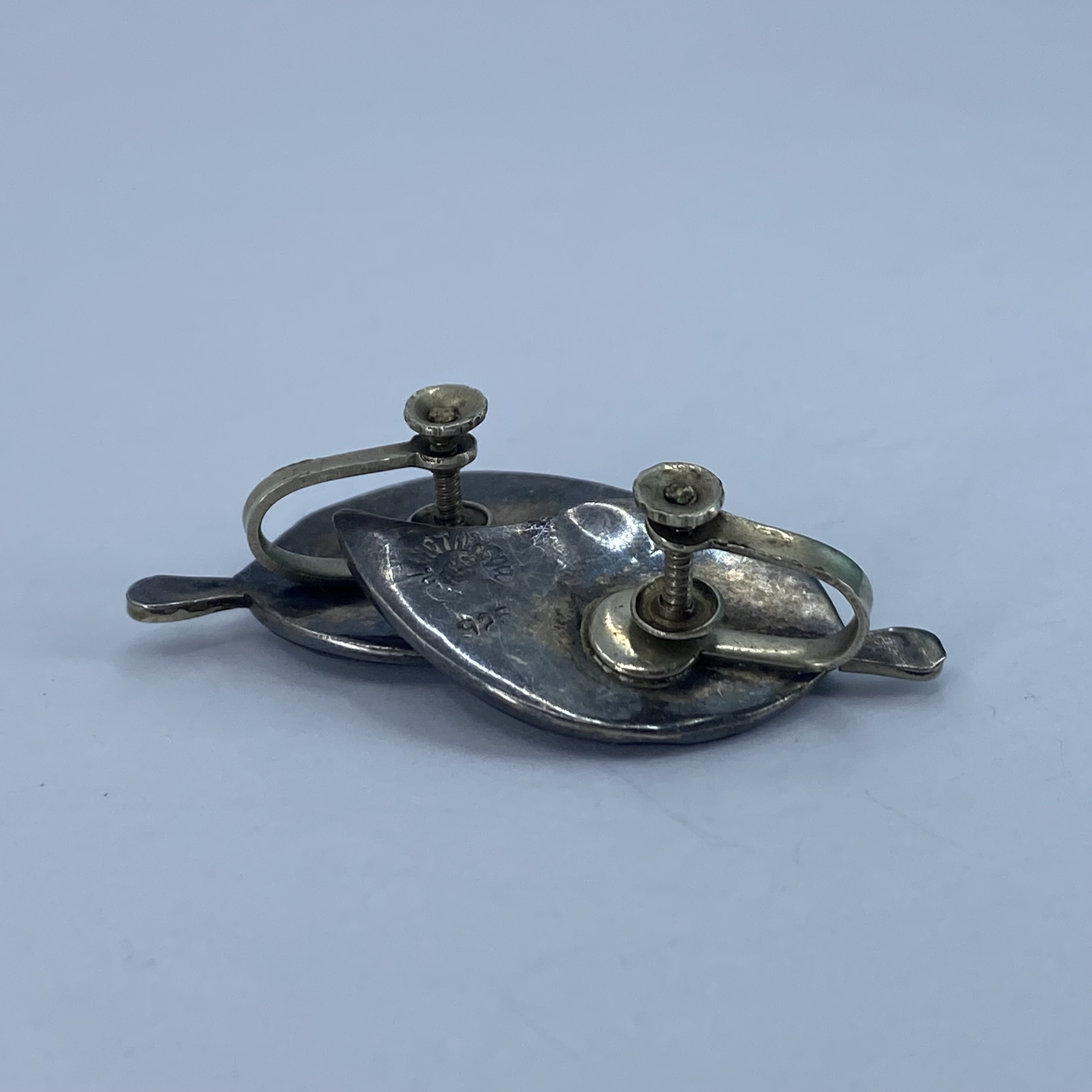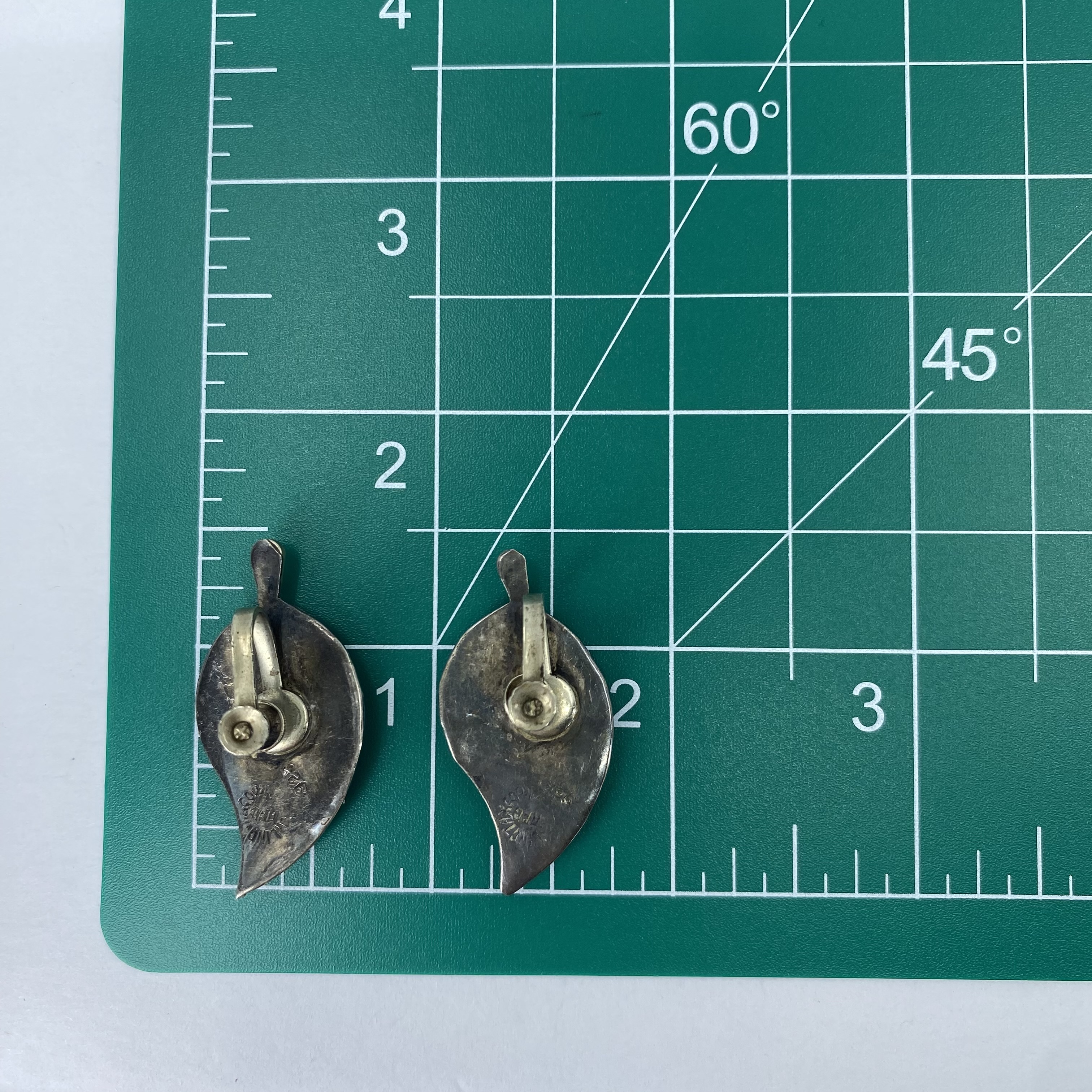 Taxco Sterling Abalone Leaf Screw Clip On Earrings 7g Engraved Sterling Taxco Mexico AEG? 925