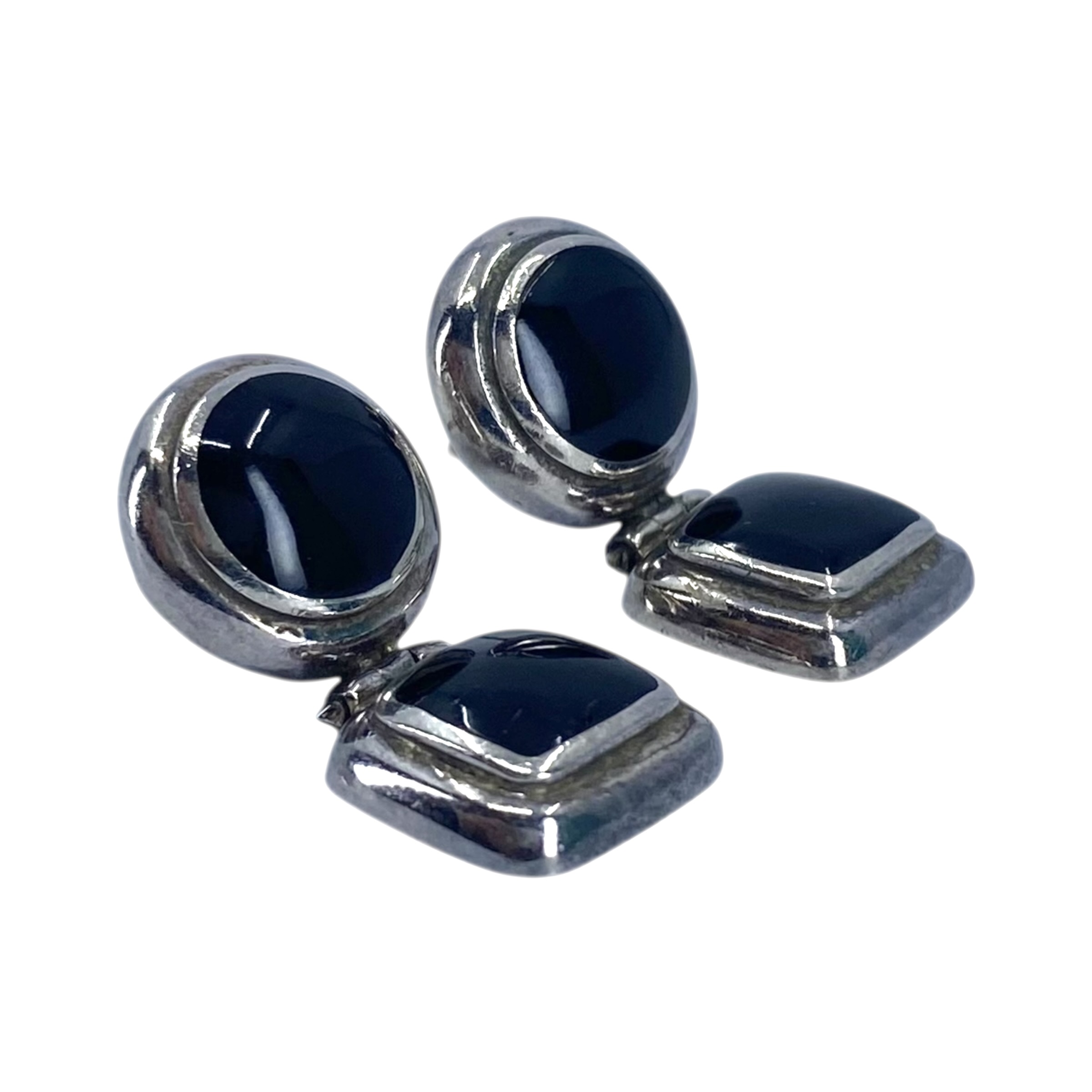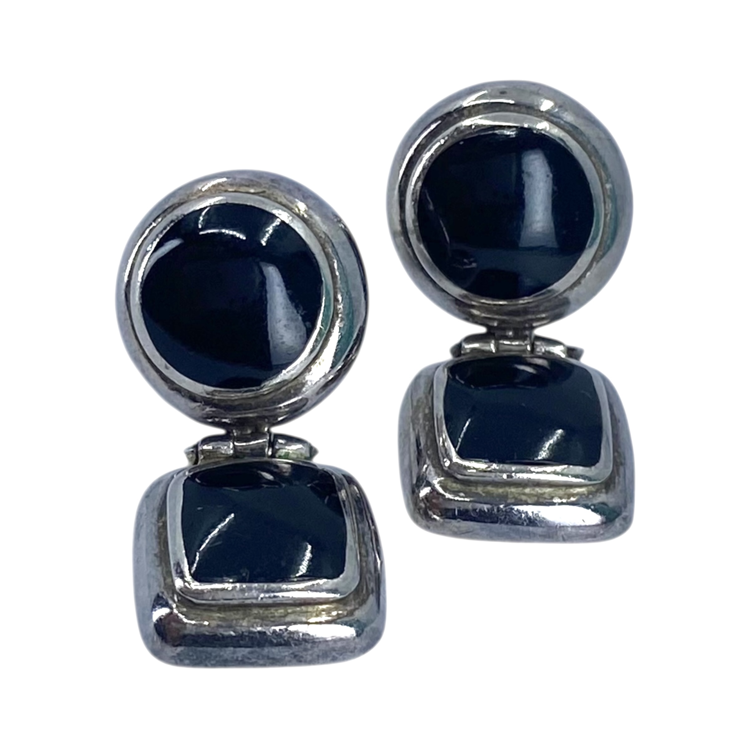 Sterling Black Onyx Modernist Earrings 6.4g Engraved 925 Thai
