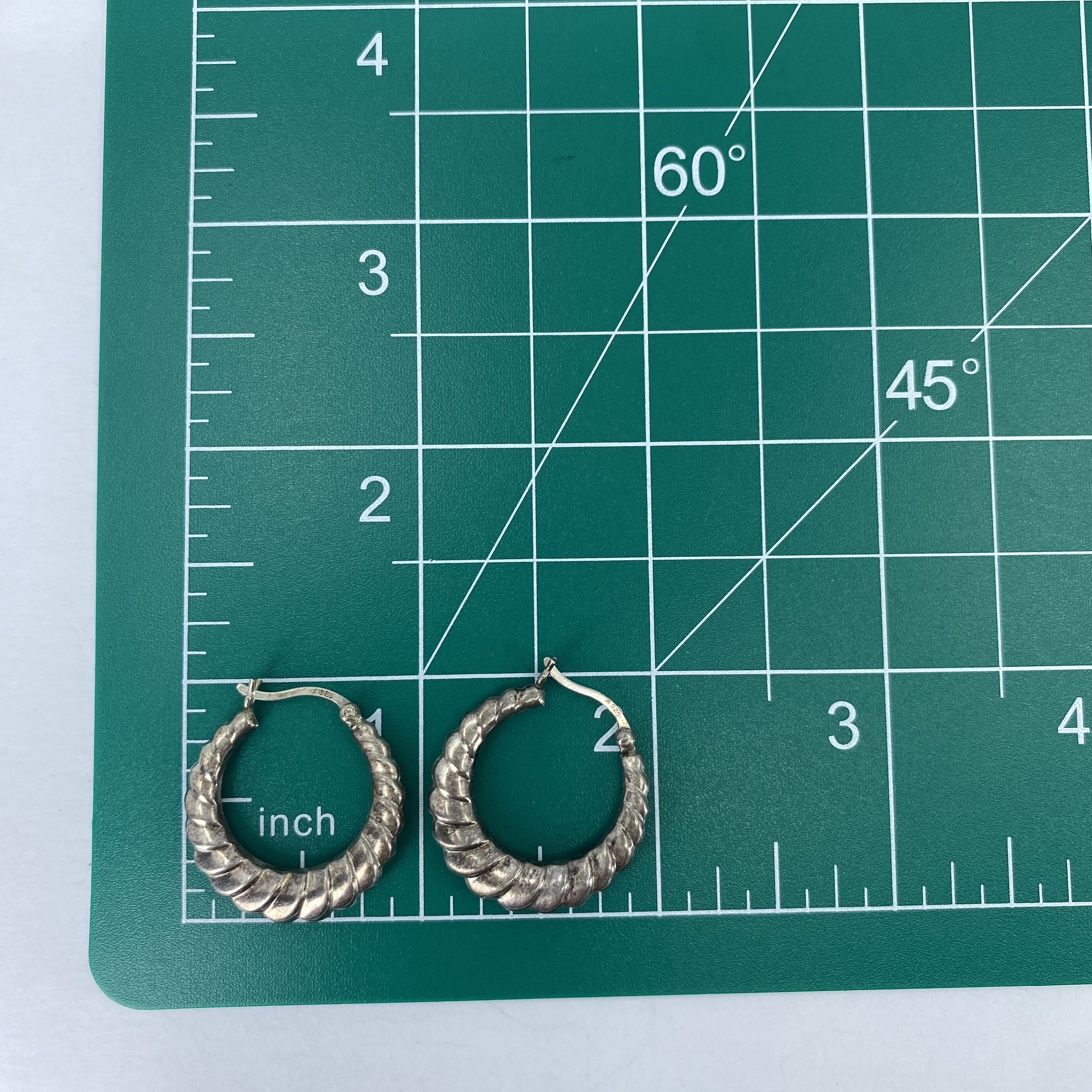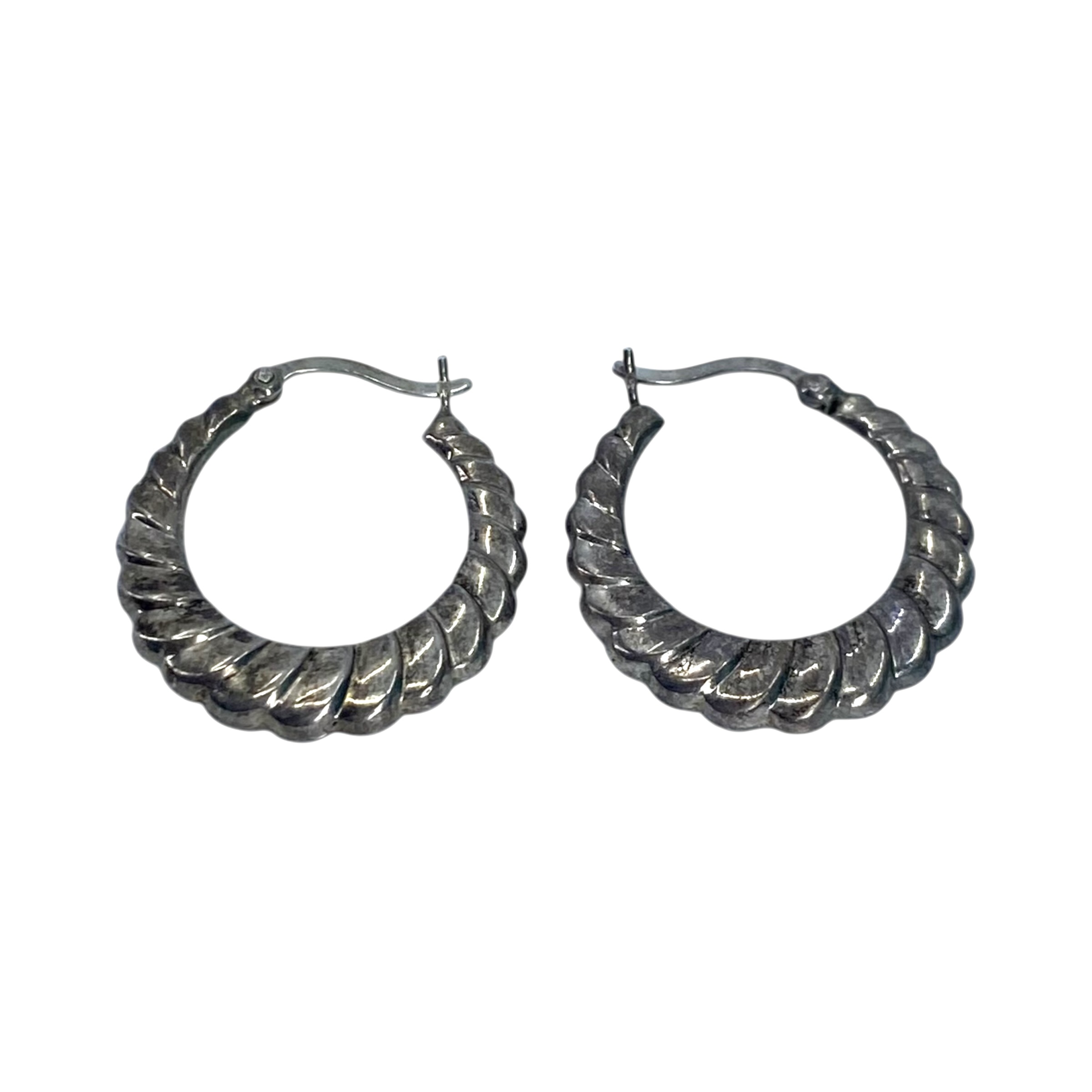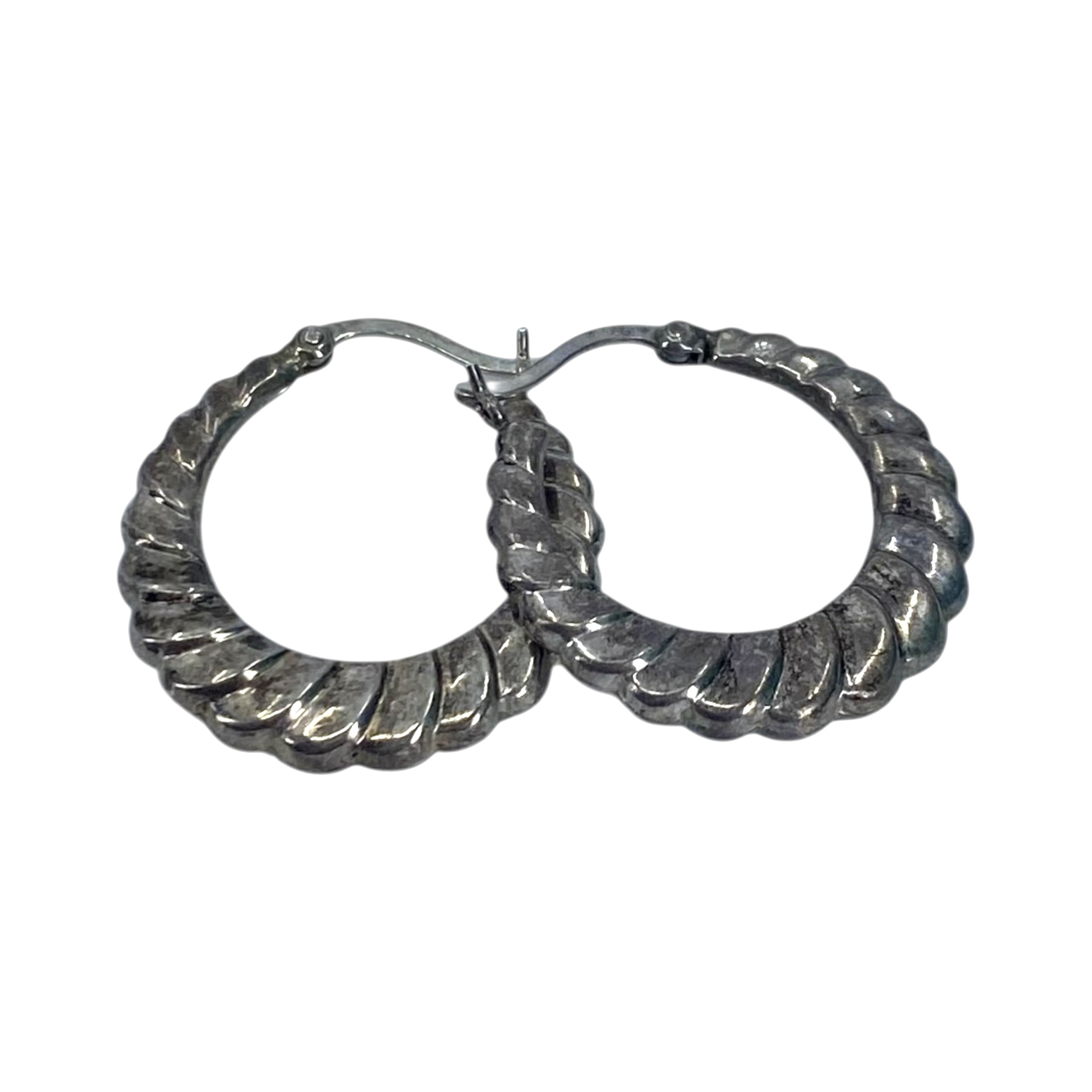 Signed Sterling Scalloped Hoop Earrings 2.3g