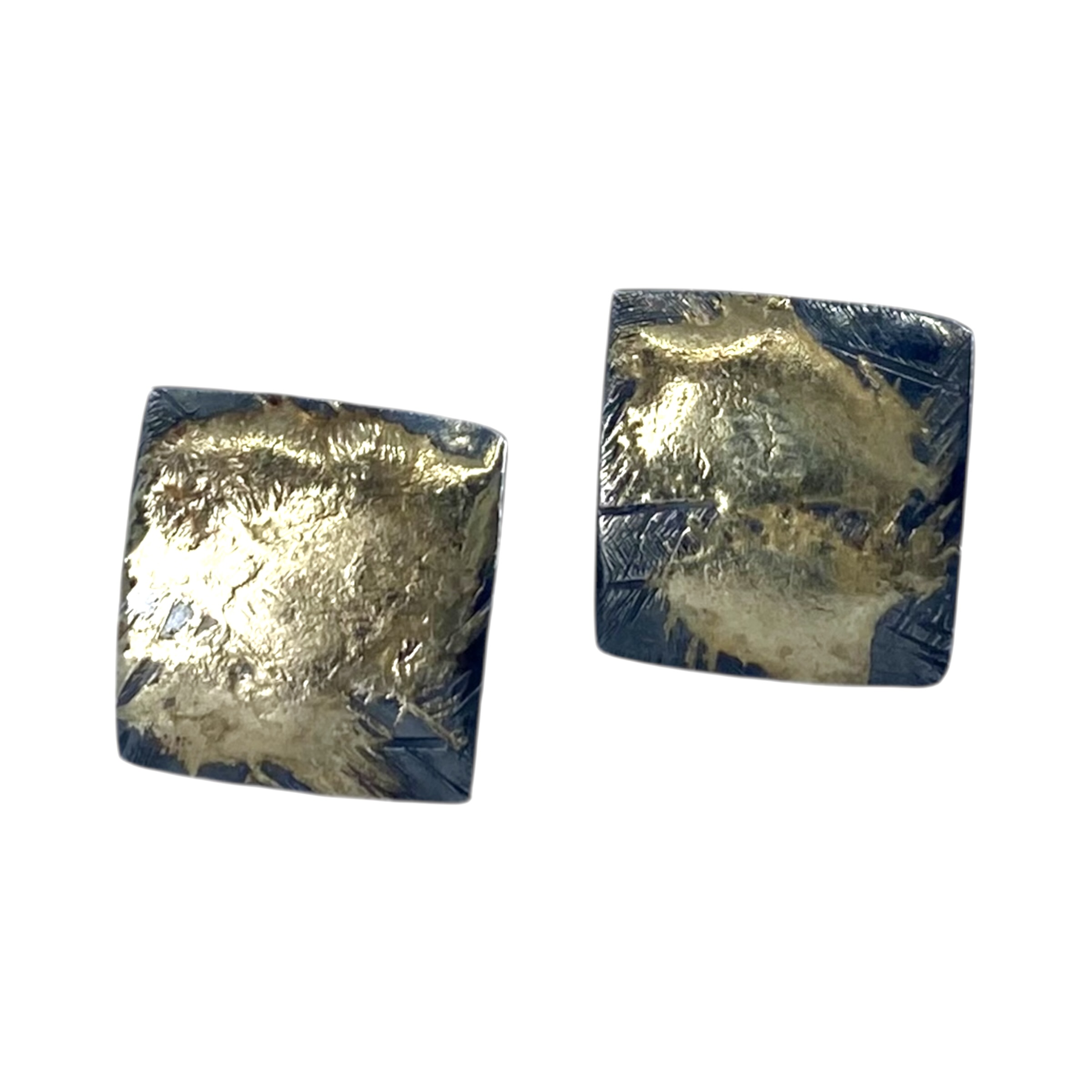 Gold Over Sterling And Sterling Textured Square Earrings 6g