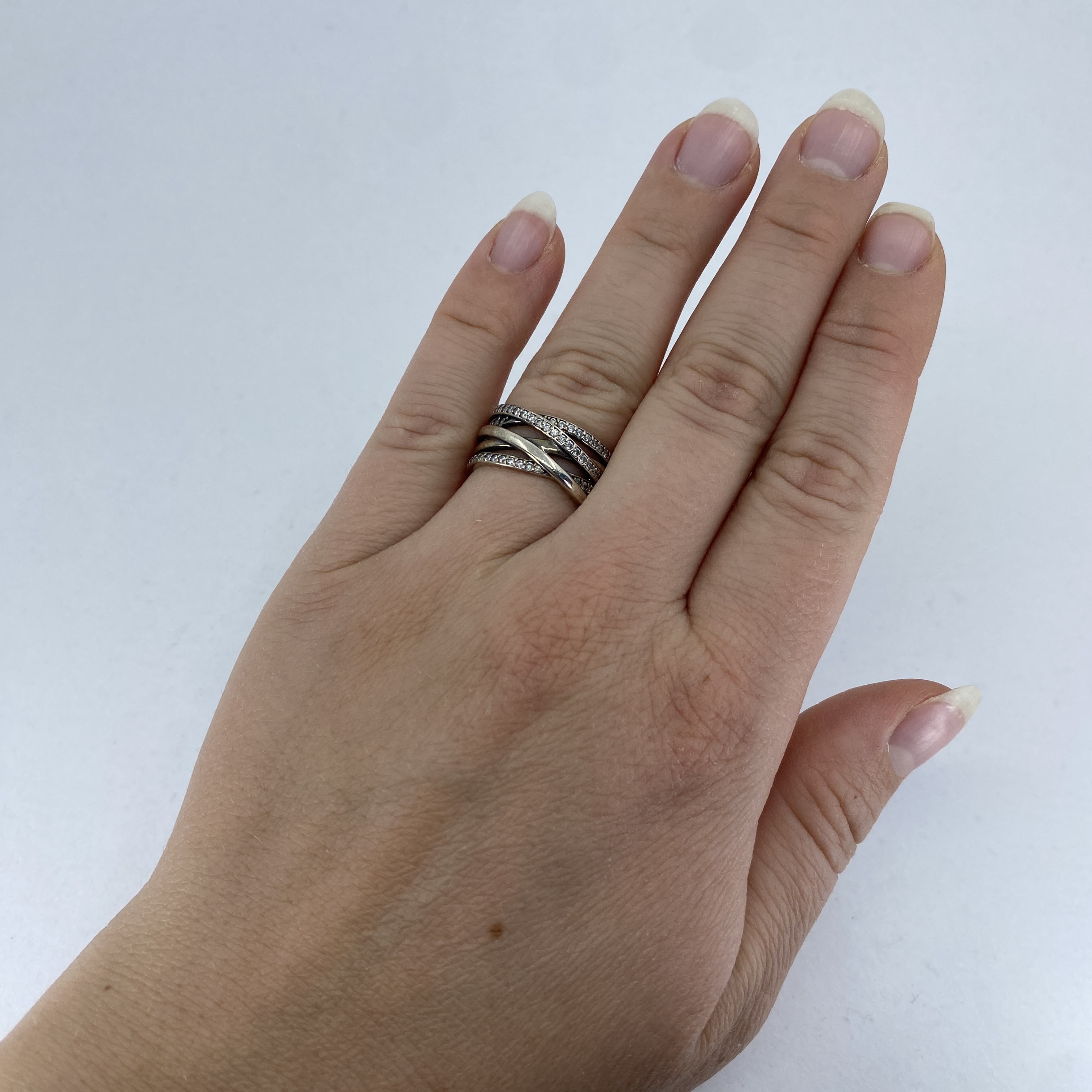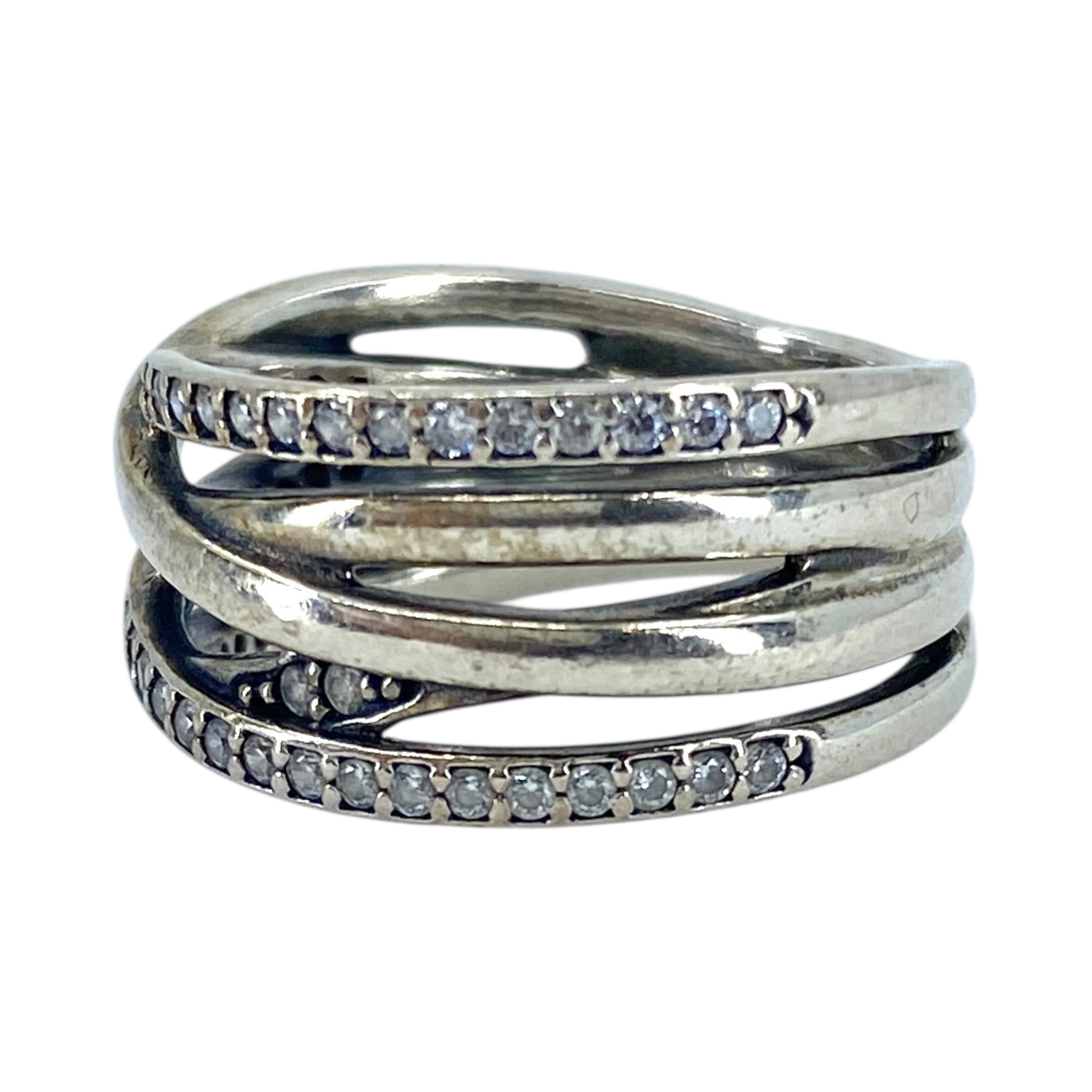 Pandora Sterling Rhinestone Crossover Ring 6.4g sz 7.25