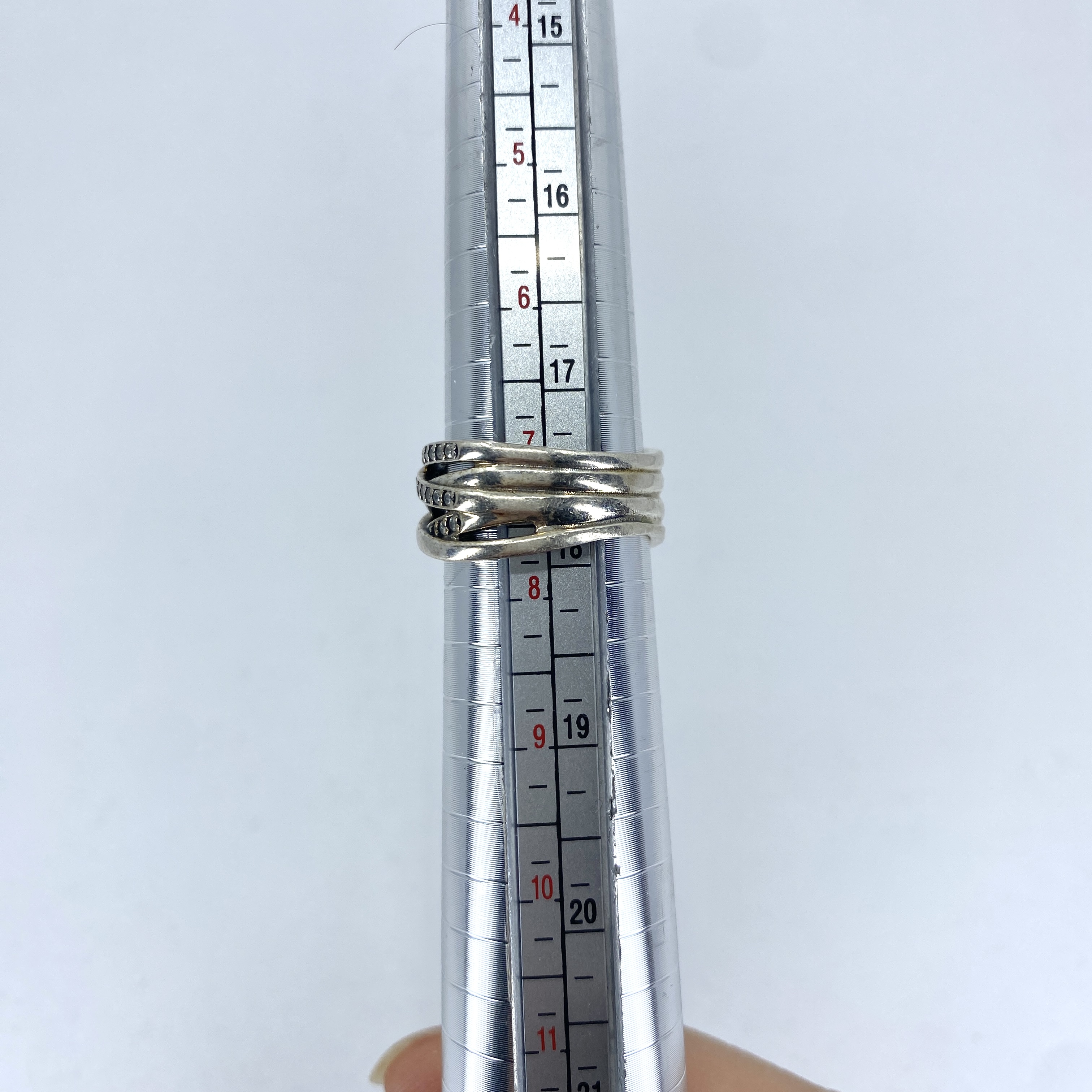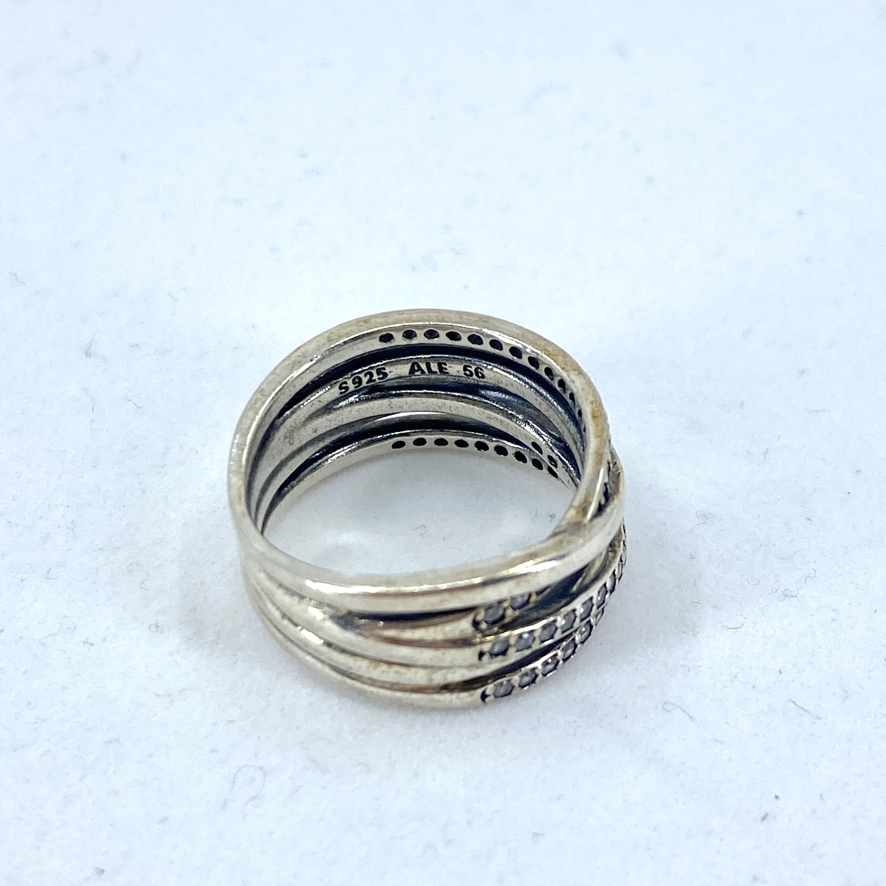 Pandora Sterling Rhinestone Crossover Ring 6.4g sz 7.25 Engraved “S925 ALE 56”