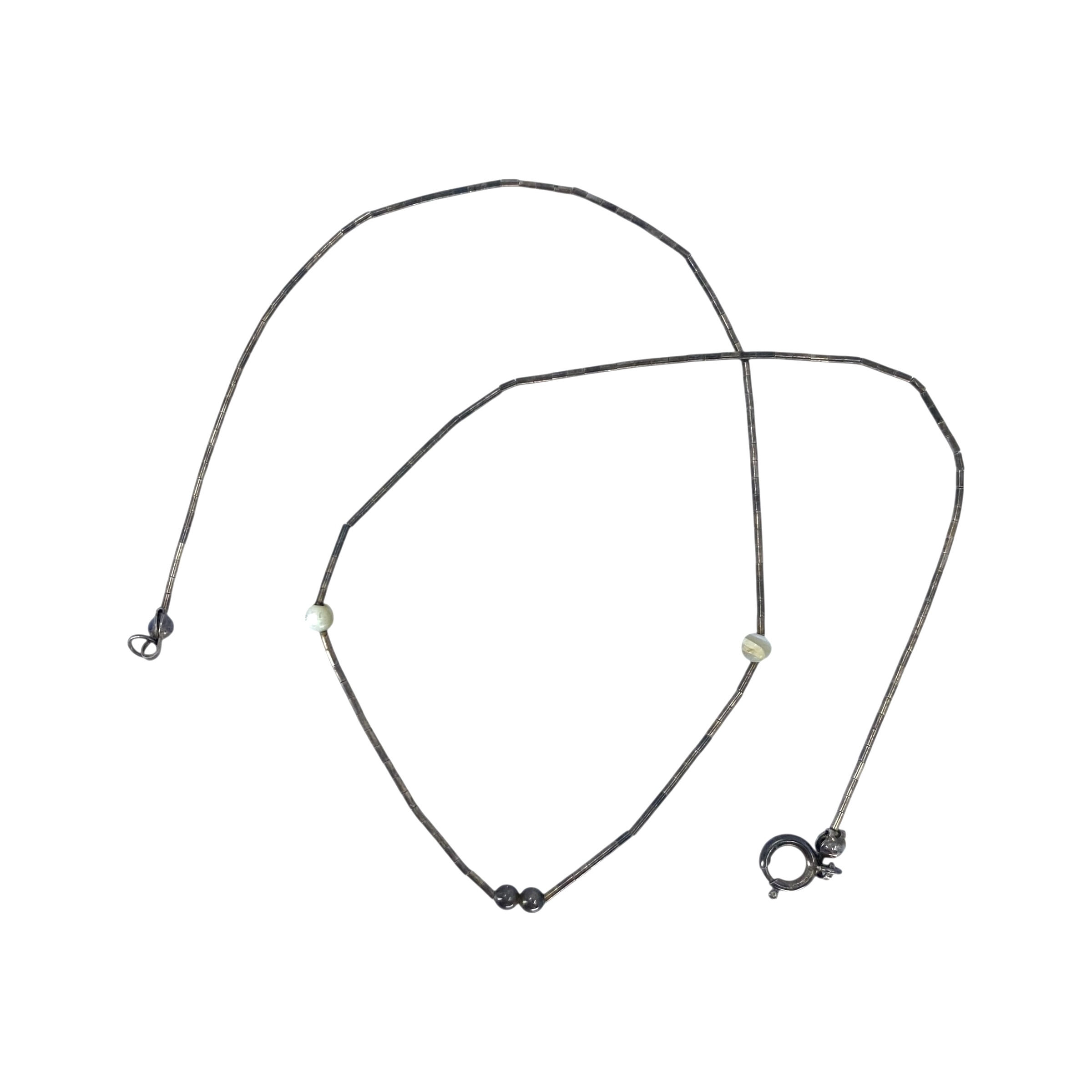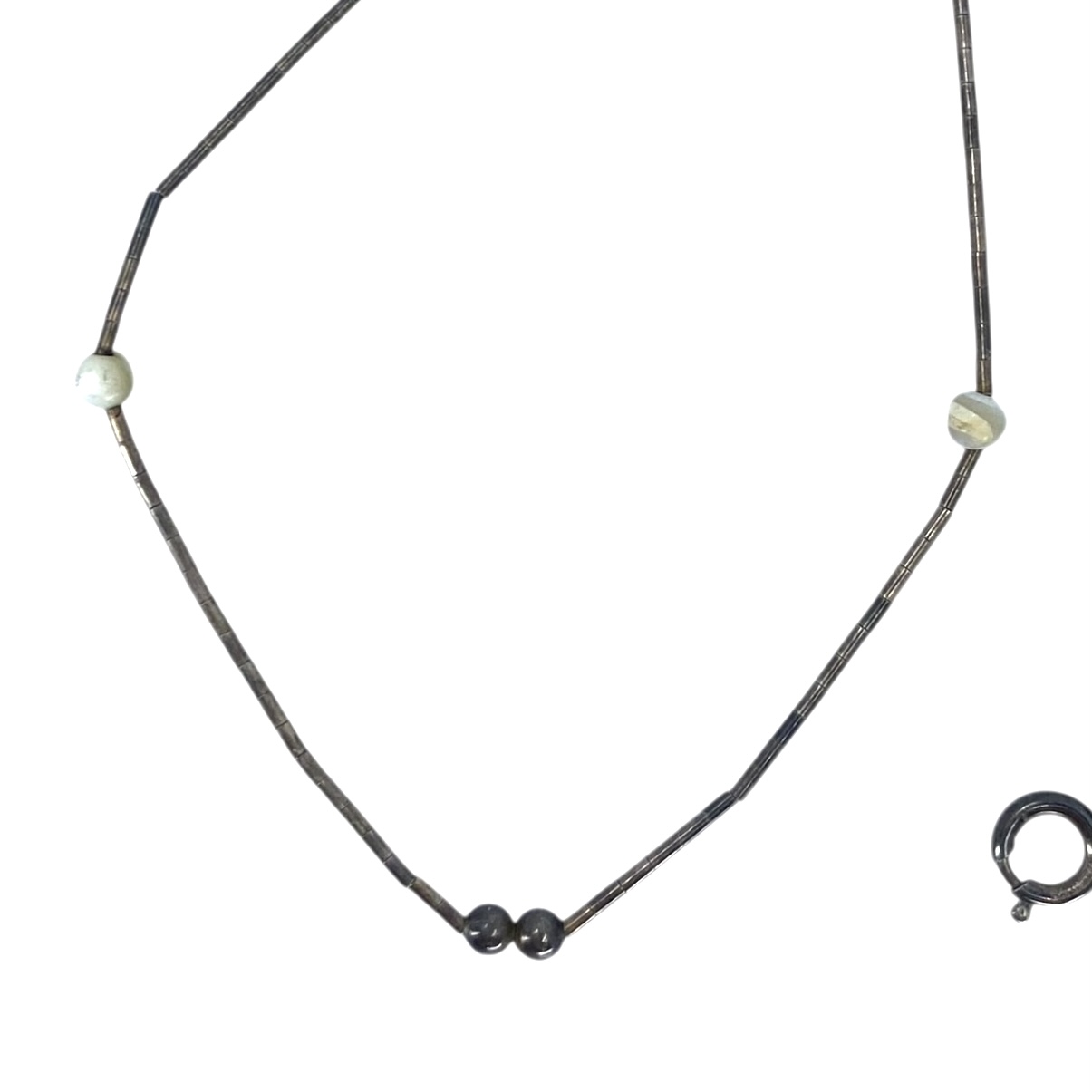 Sterling 16.5 Tube and Iridescent White Bead Necklace 3g Engraved Sterling 925