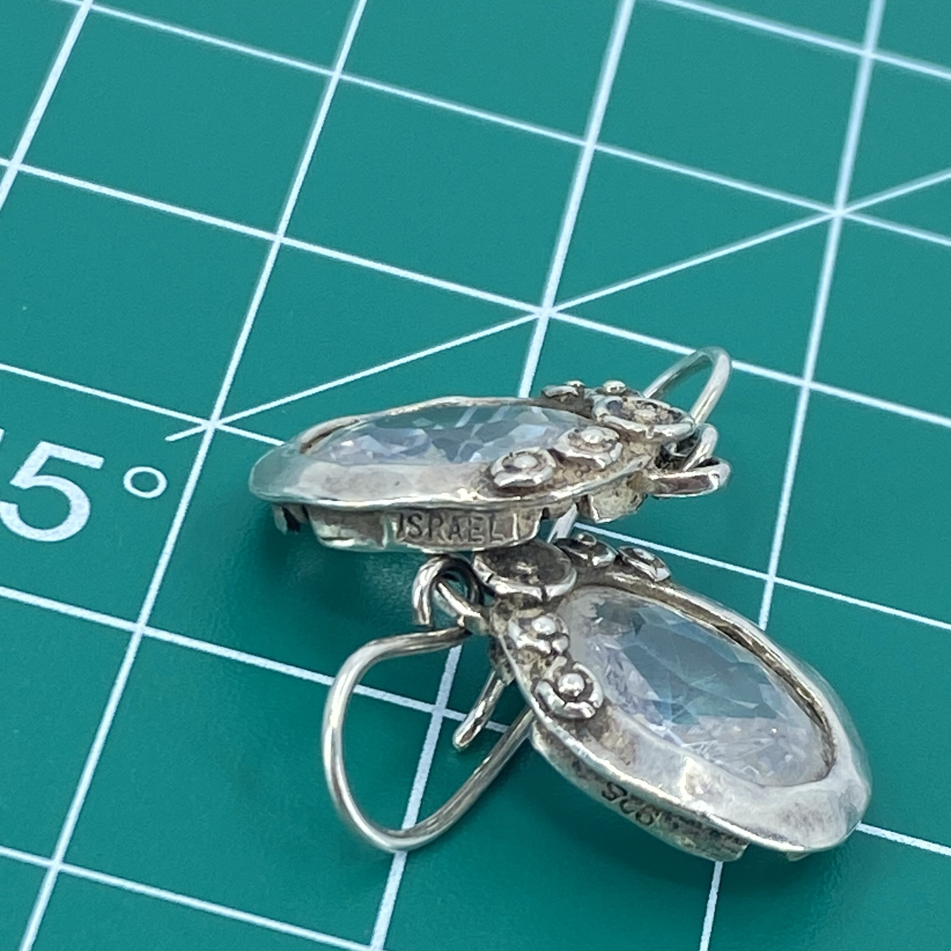 Didae Israel Sterling CZ Dangle Earrings 9g Engraved Israel 925 Didae