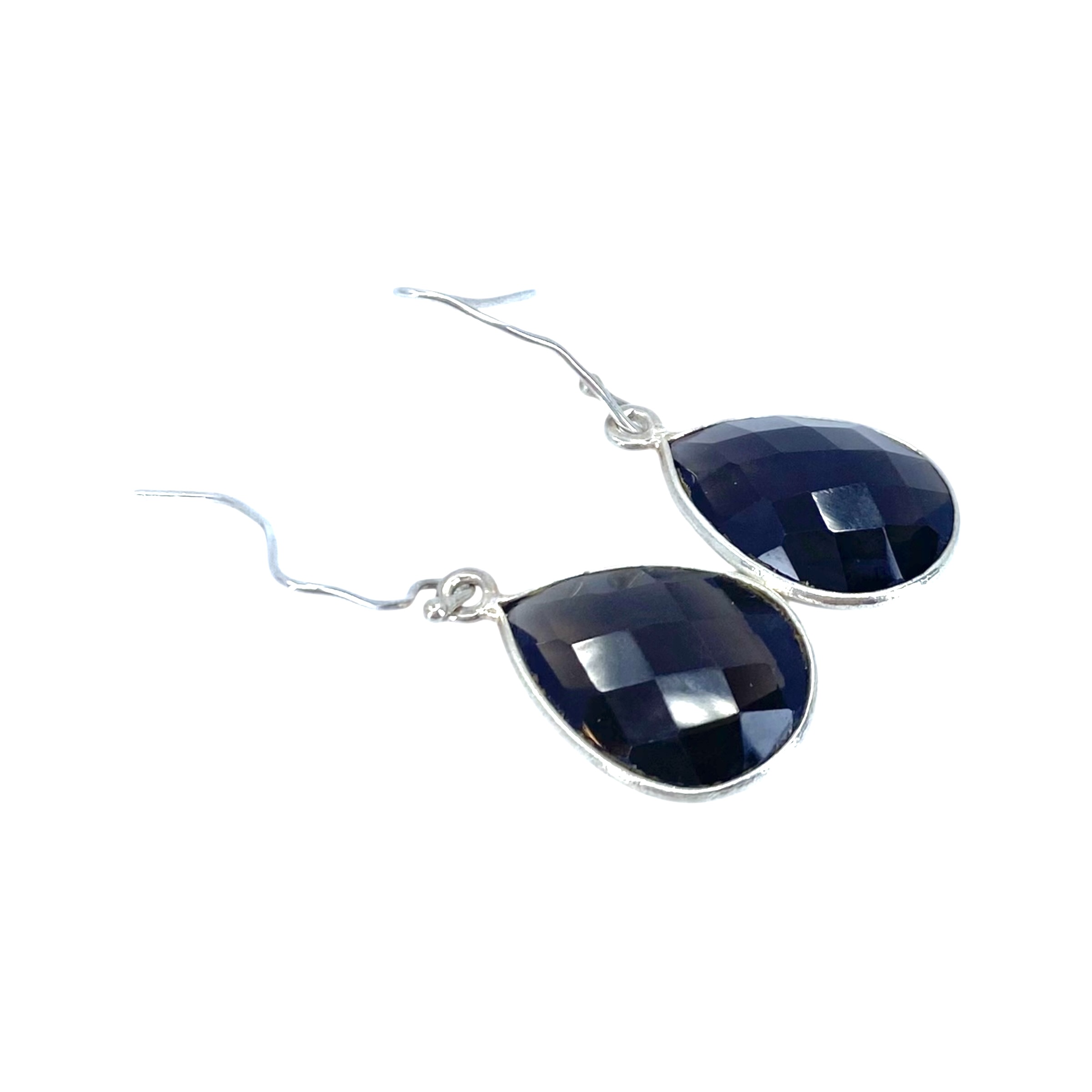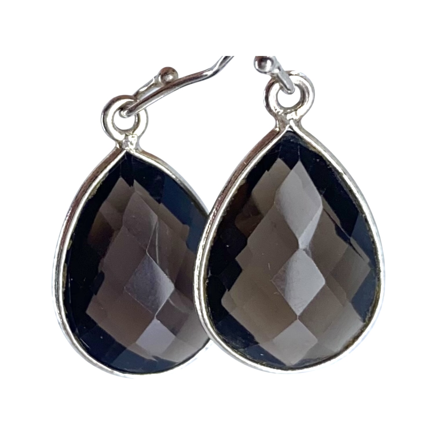Sterling Faceted Teardrop Smoky Quartz Dangle Earrings 4g