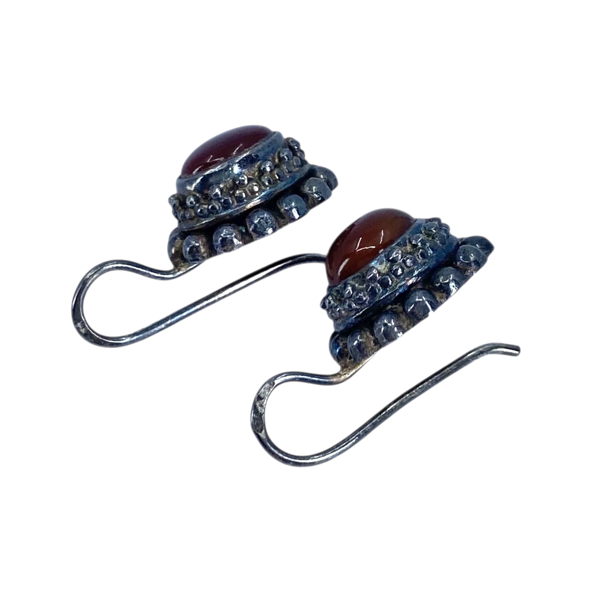 Sterling Cabochon Carnelian Oval Earrings 6.4g