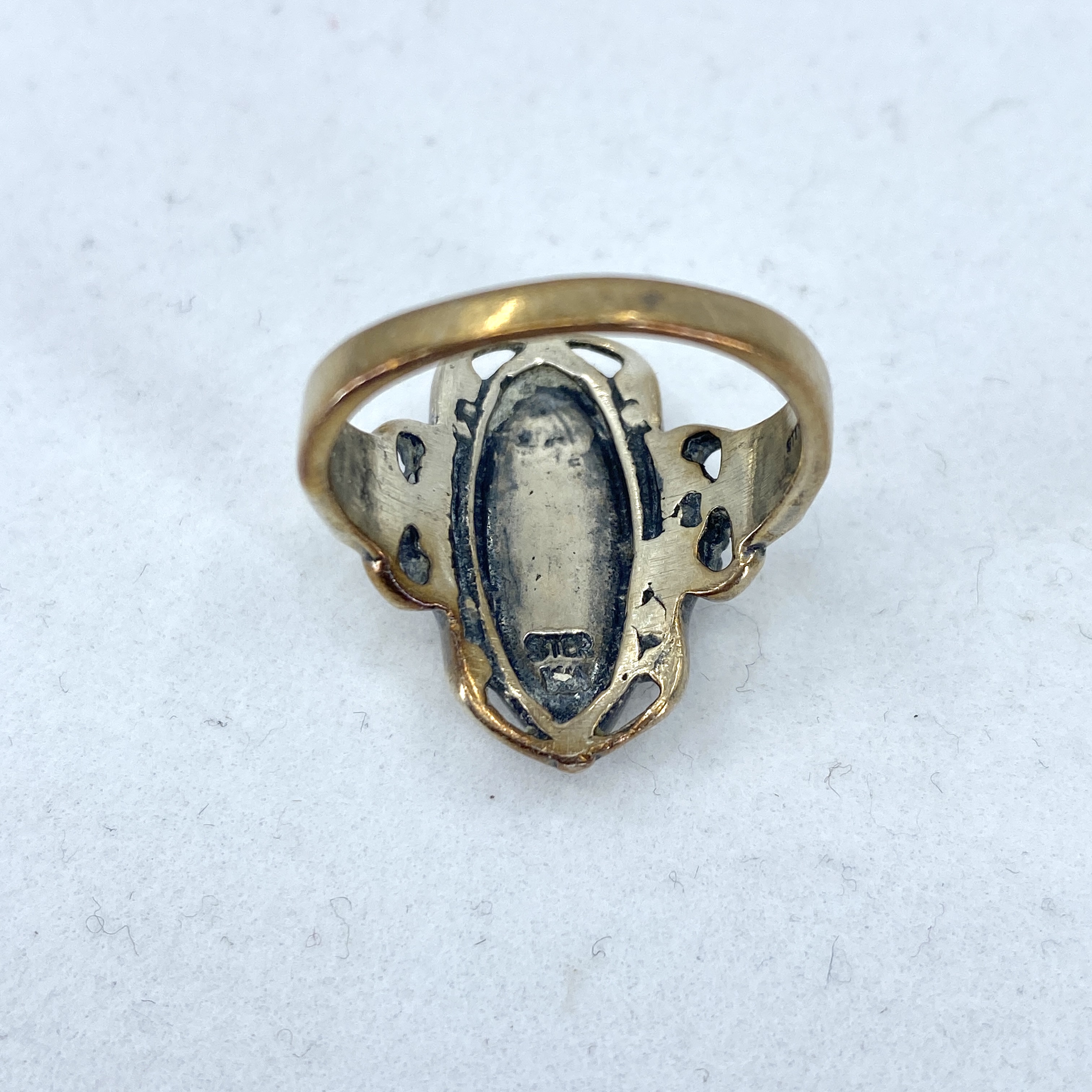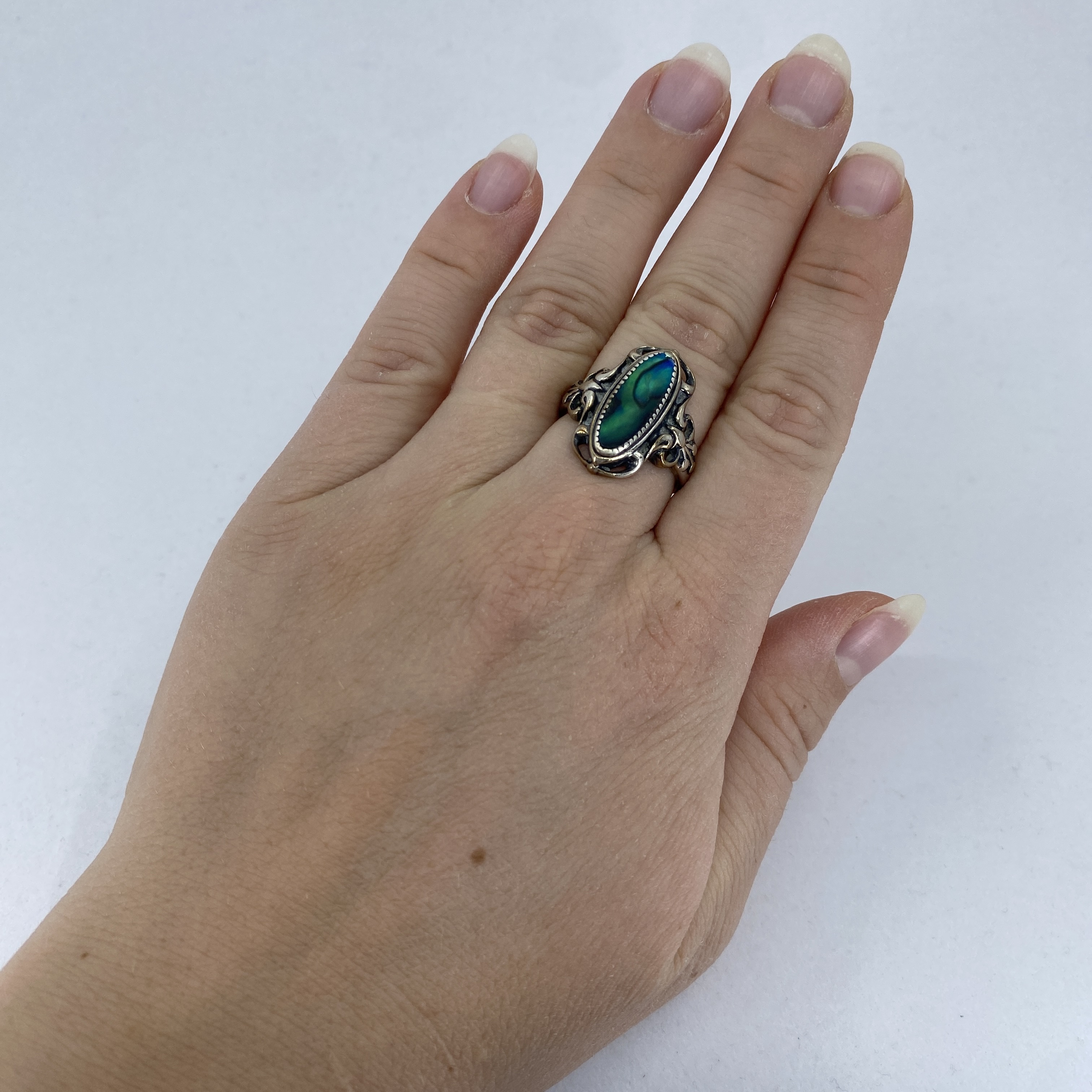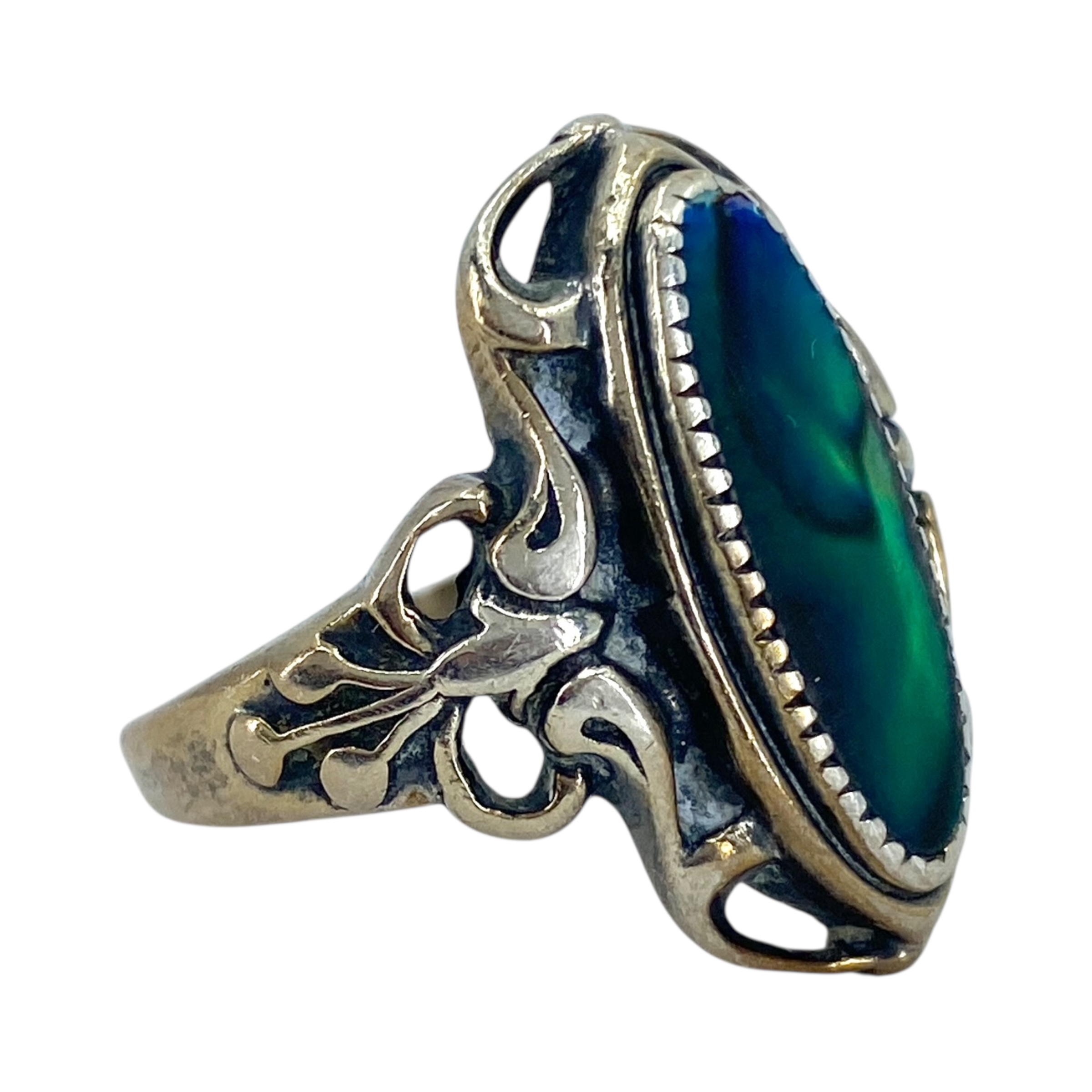Sterling Abalone Vintage Oval Ring 8g sz 7.75