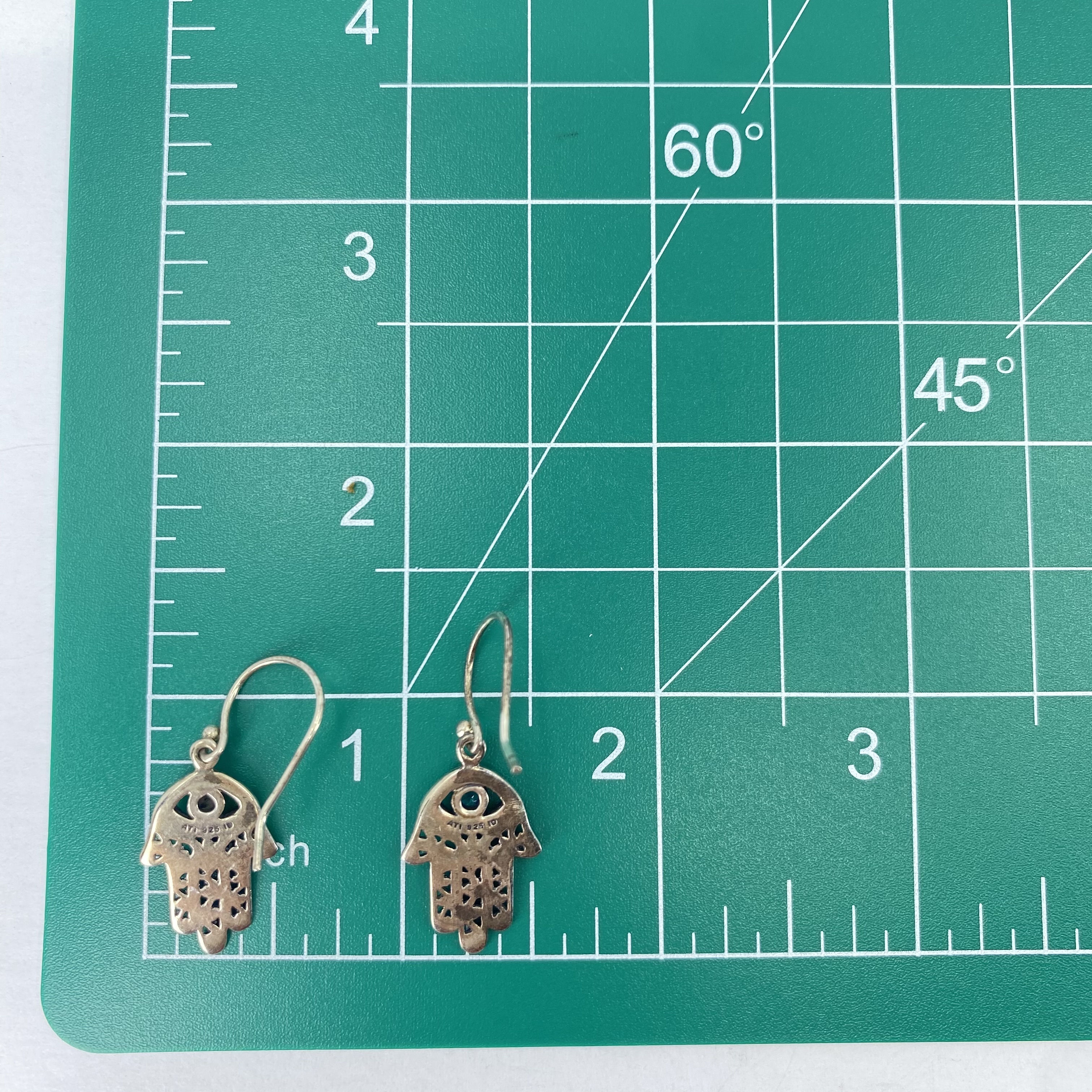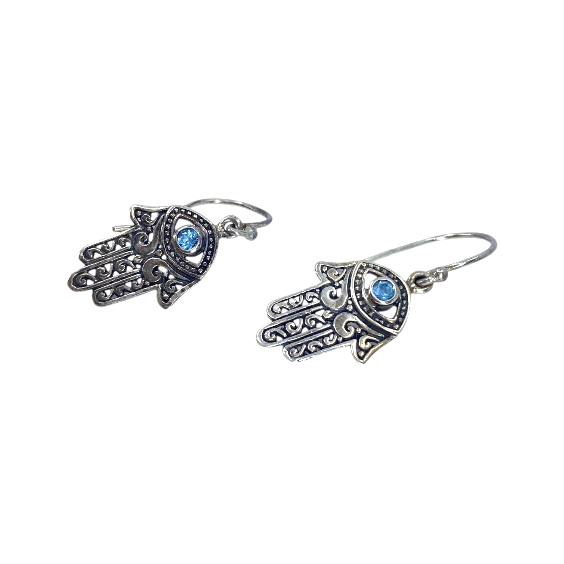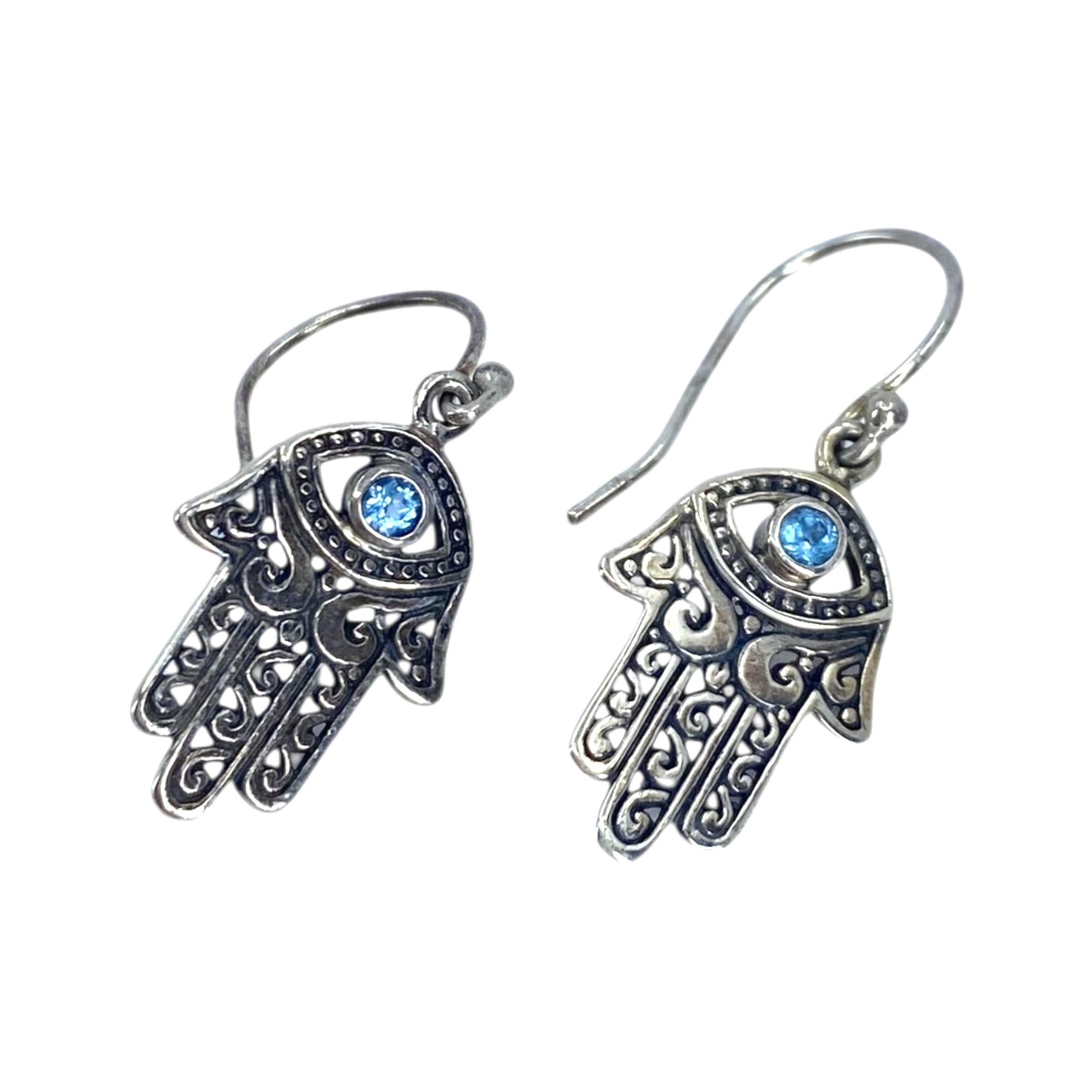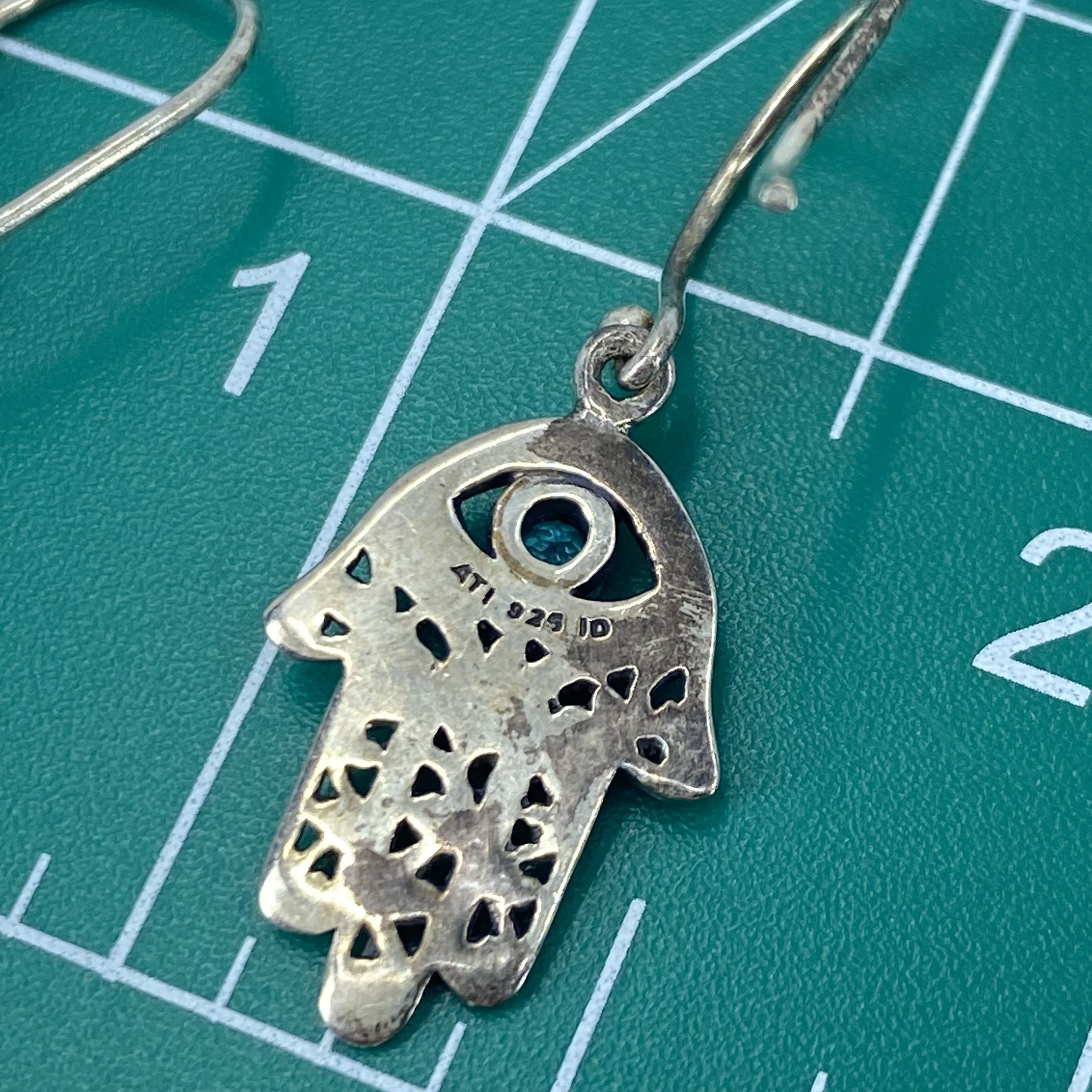 Signed Sterling Blue Topaz Hamsa Evil Eye Earrings 3.2g Engraved ATI 925 ID