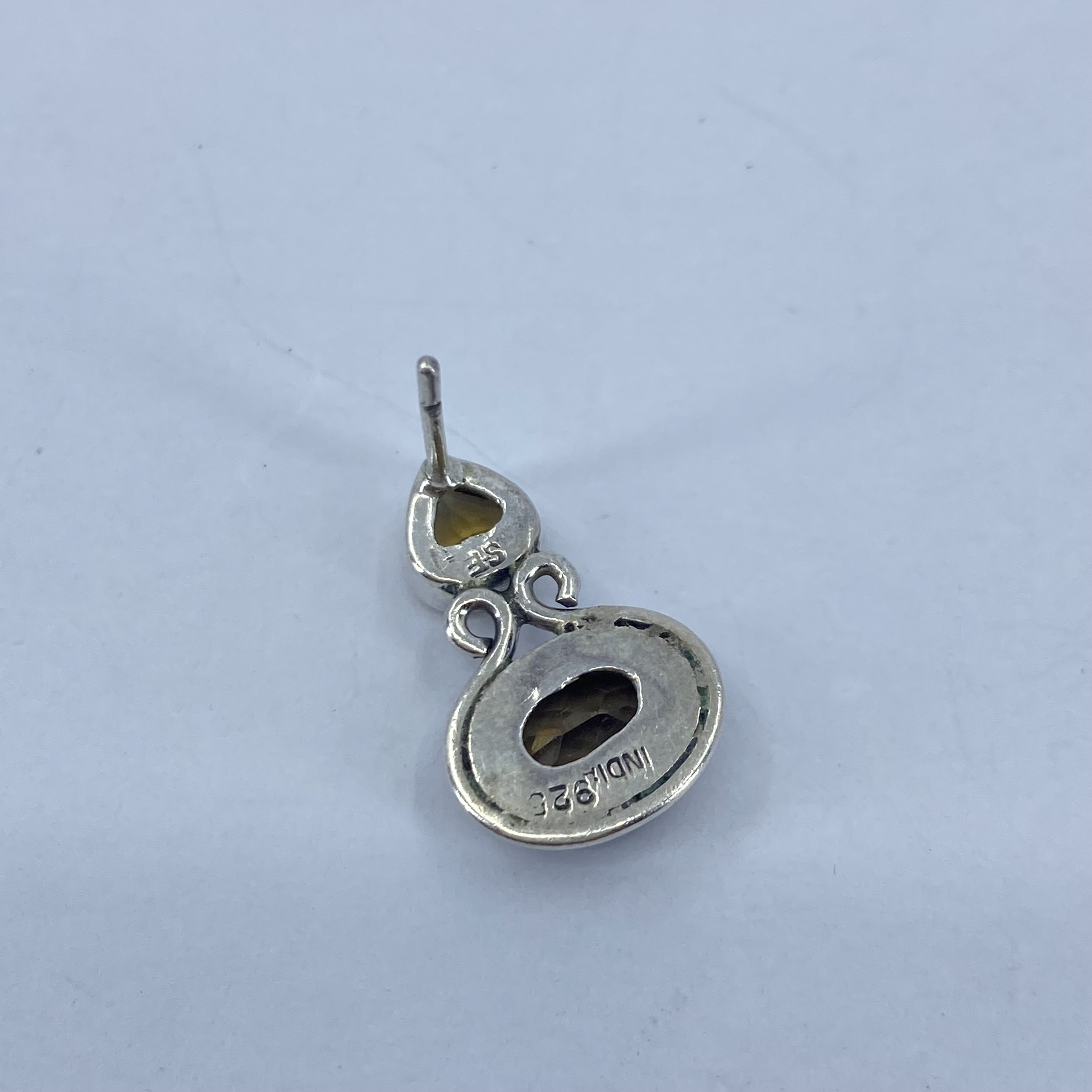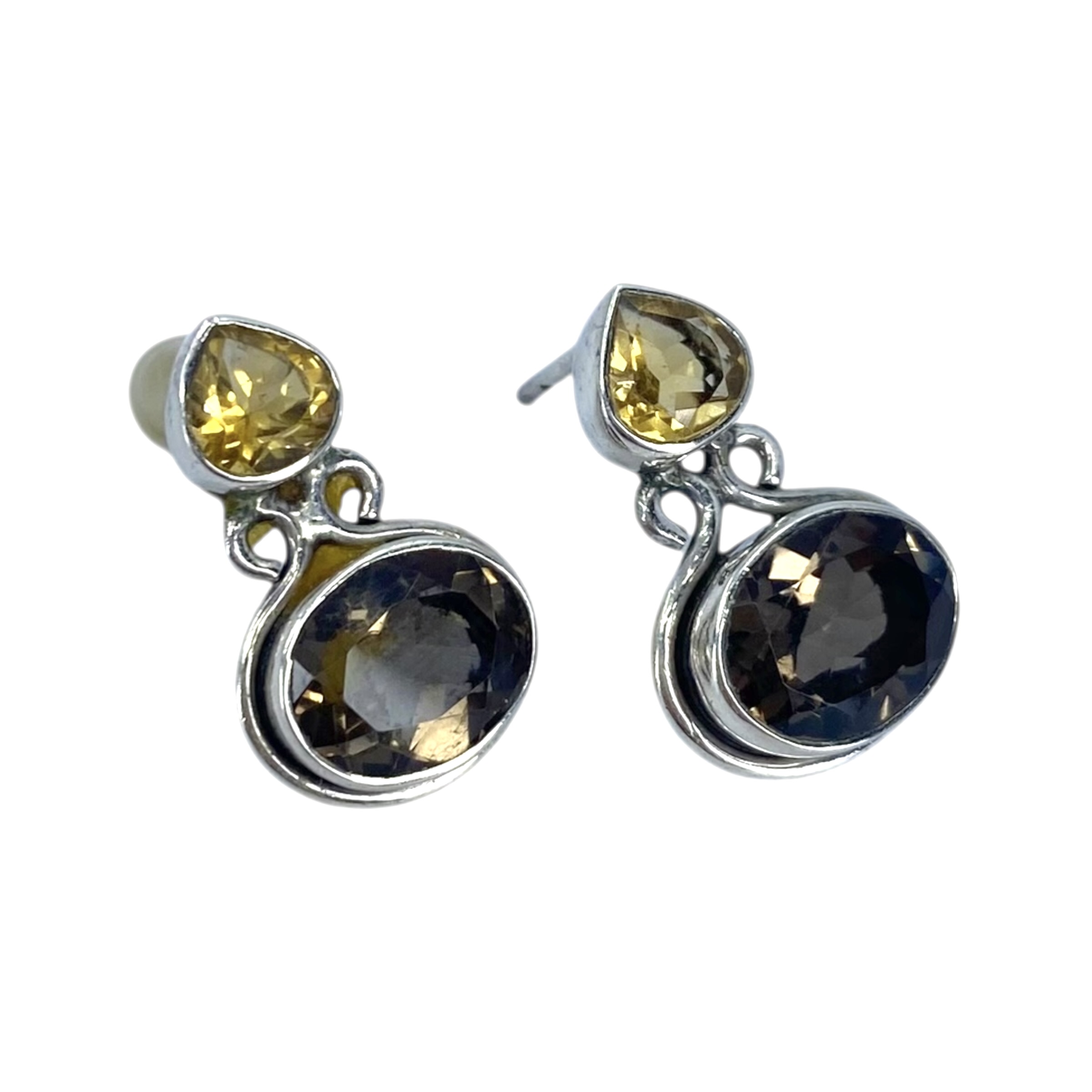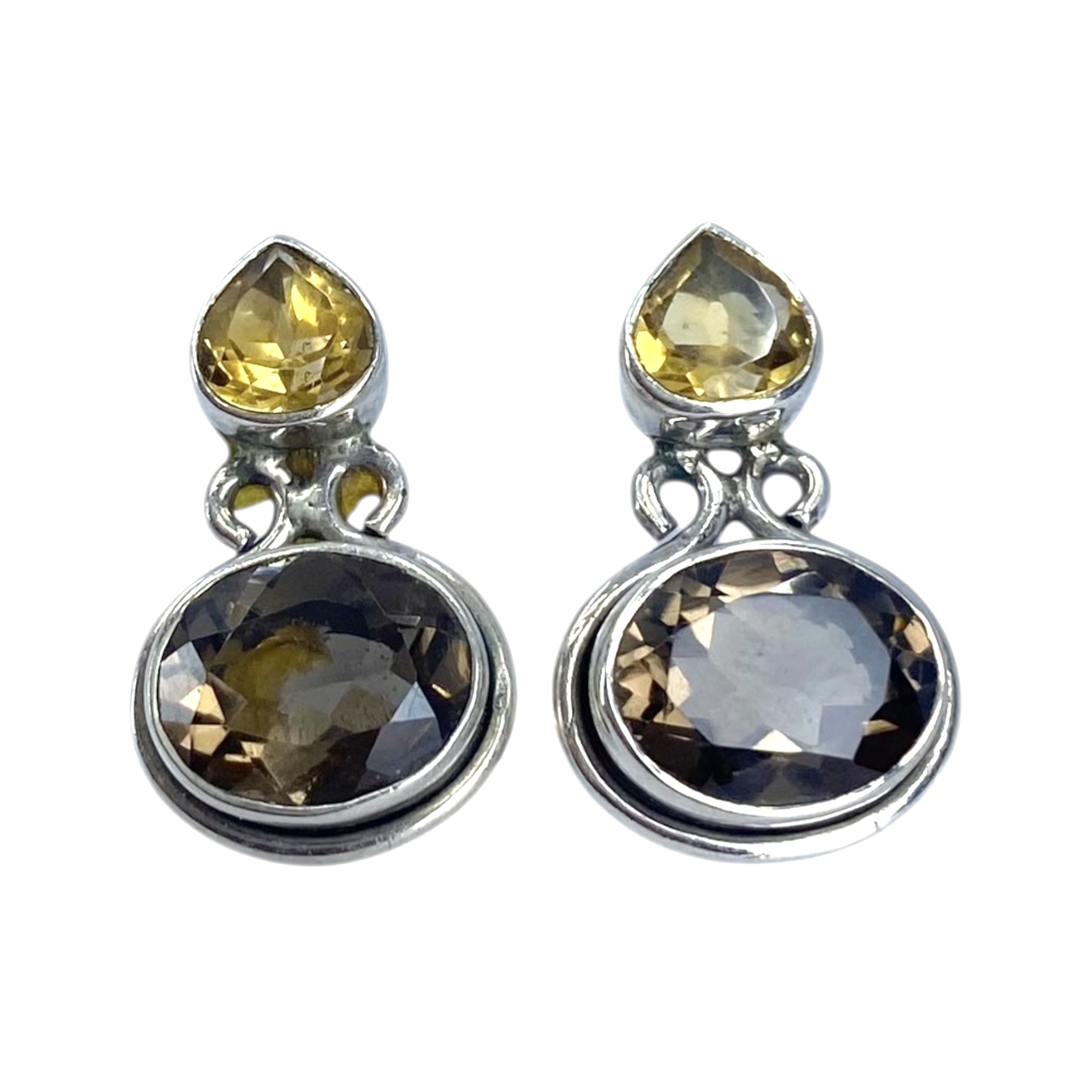 Signed Sterling Smoky Quartz and Citrine Faceted Earrings 5g Engraved India 925 SE