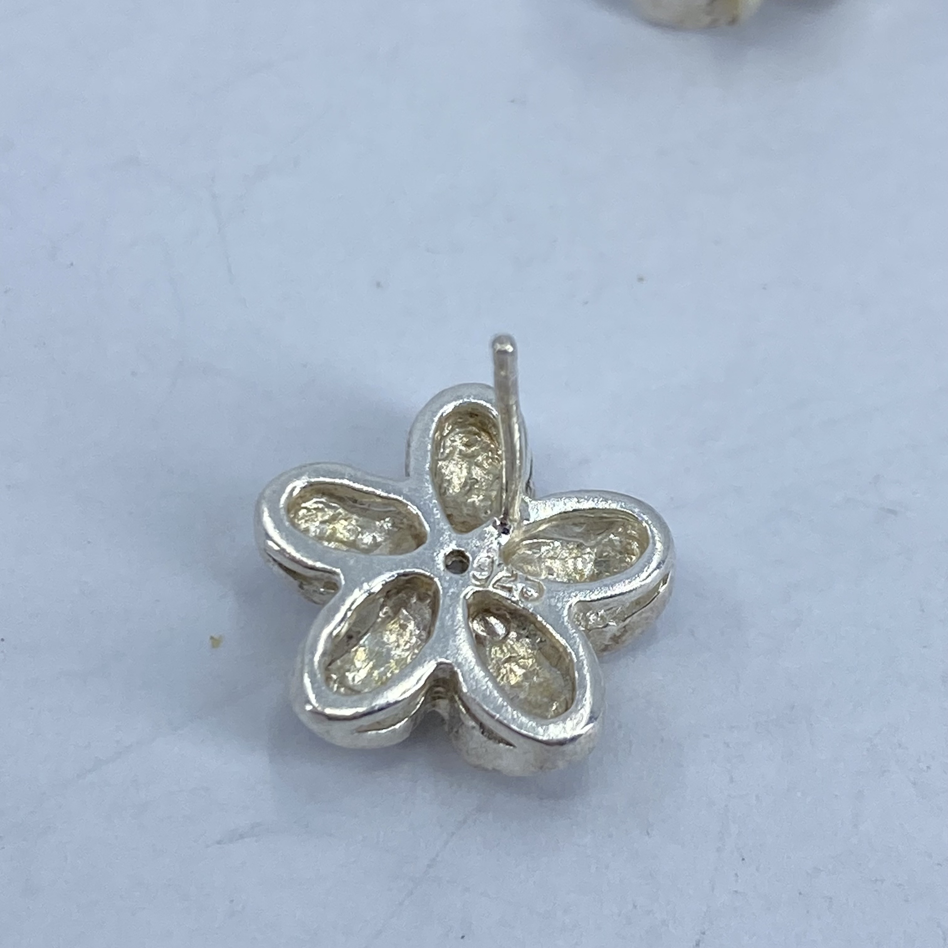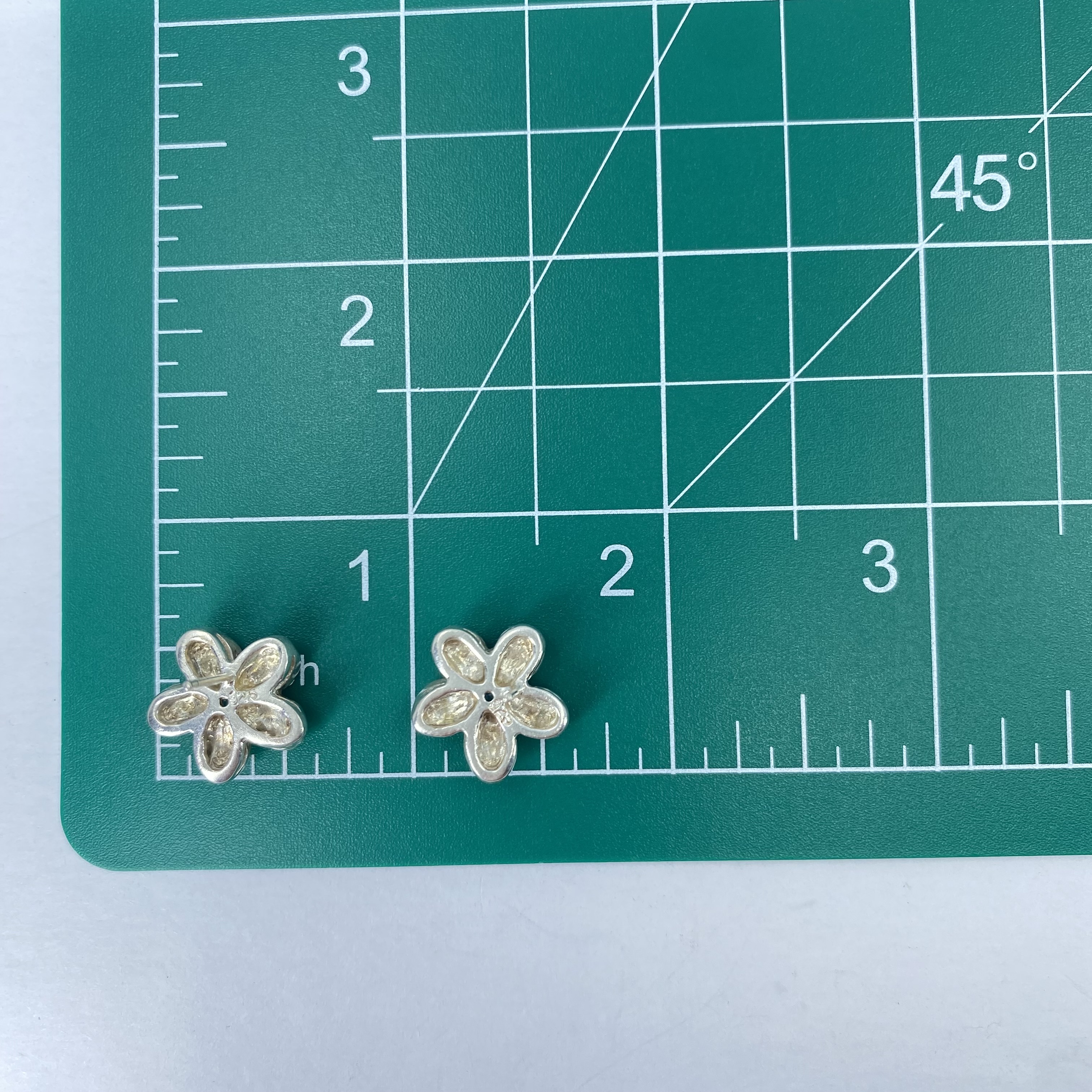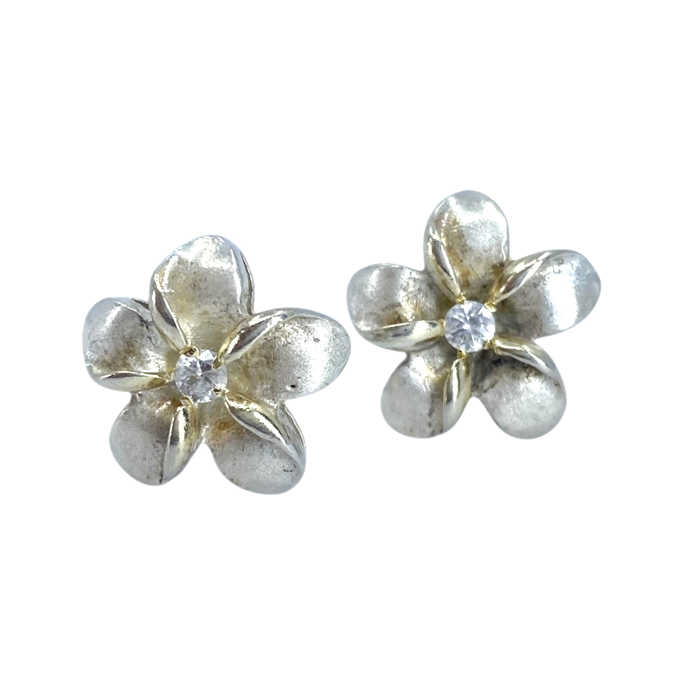 Sterling Rhinestone Plumeria Flower Stud Earrings 6g