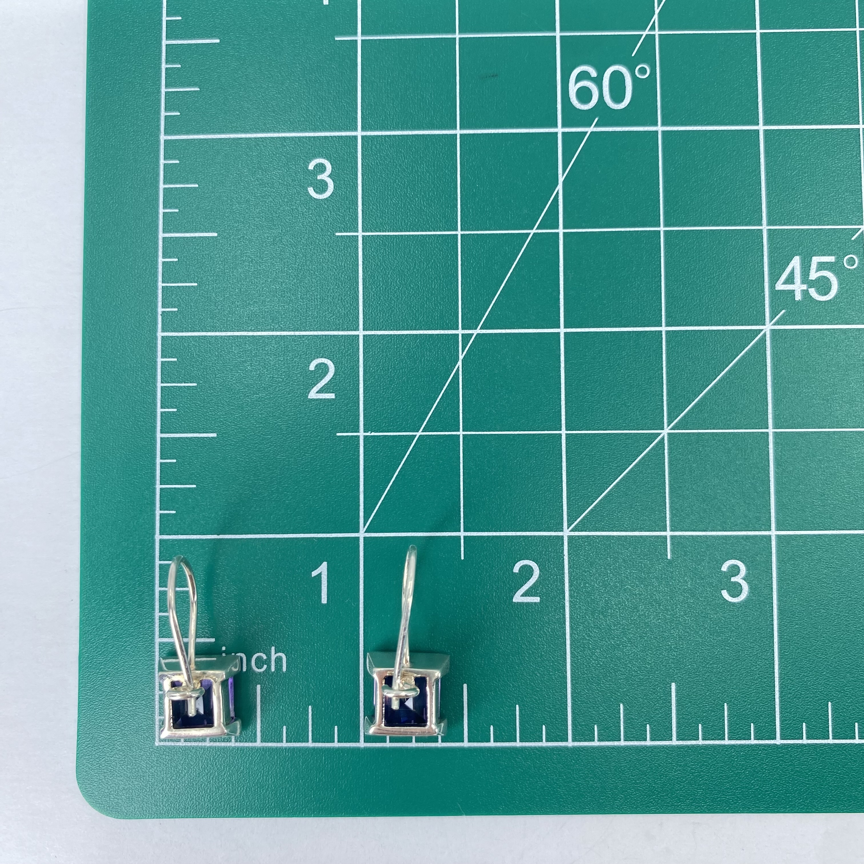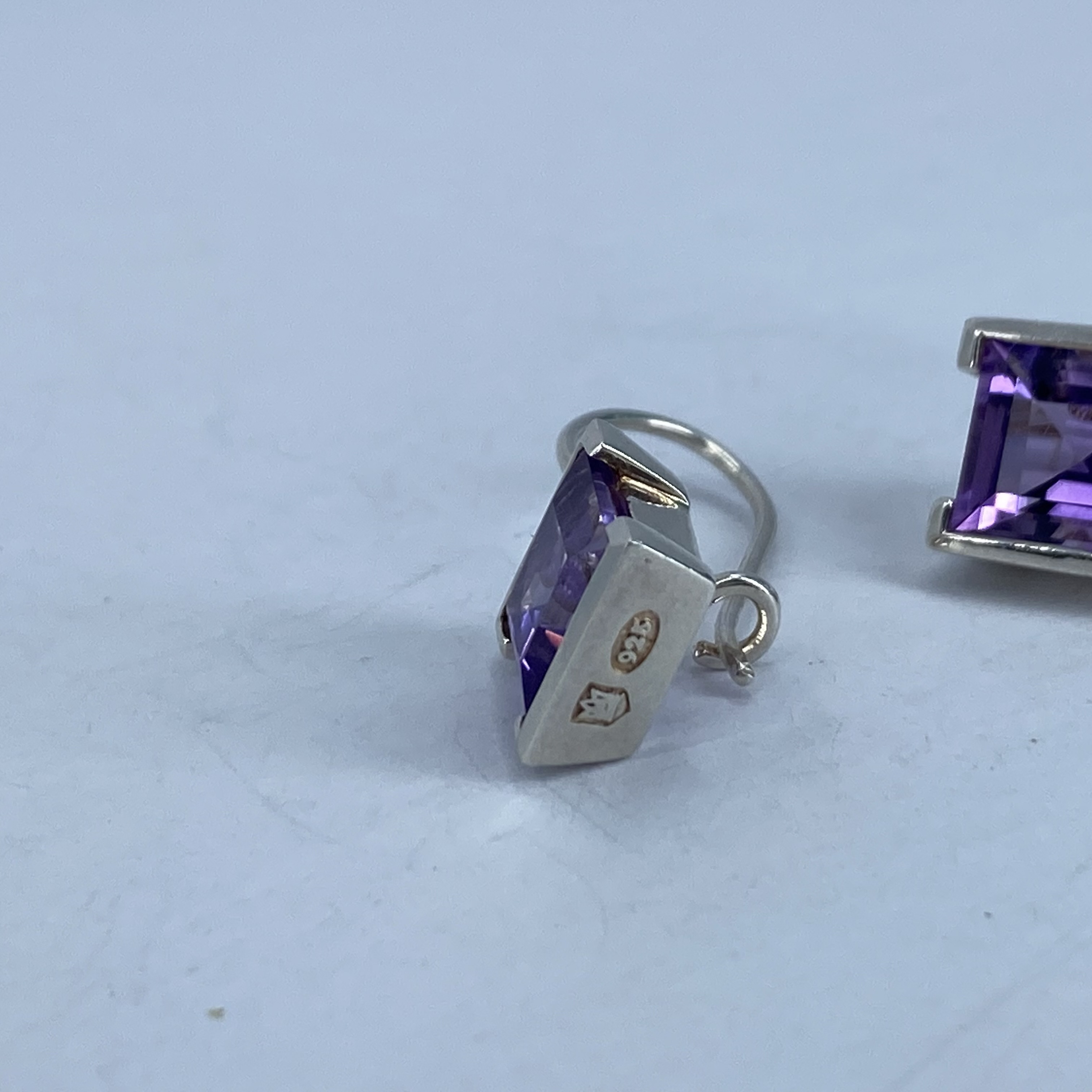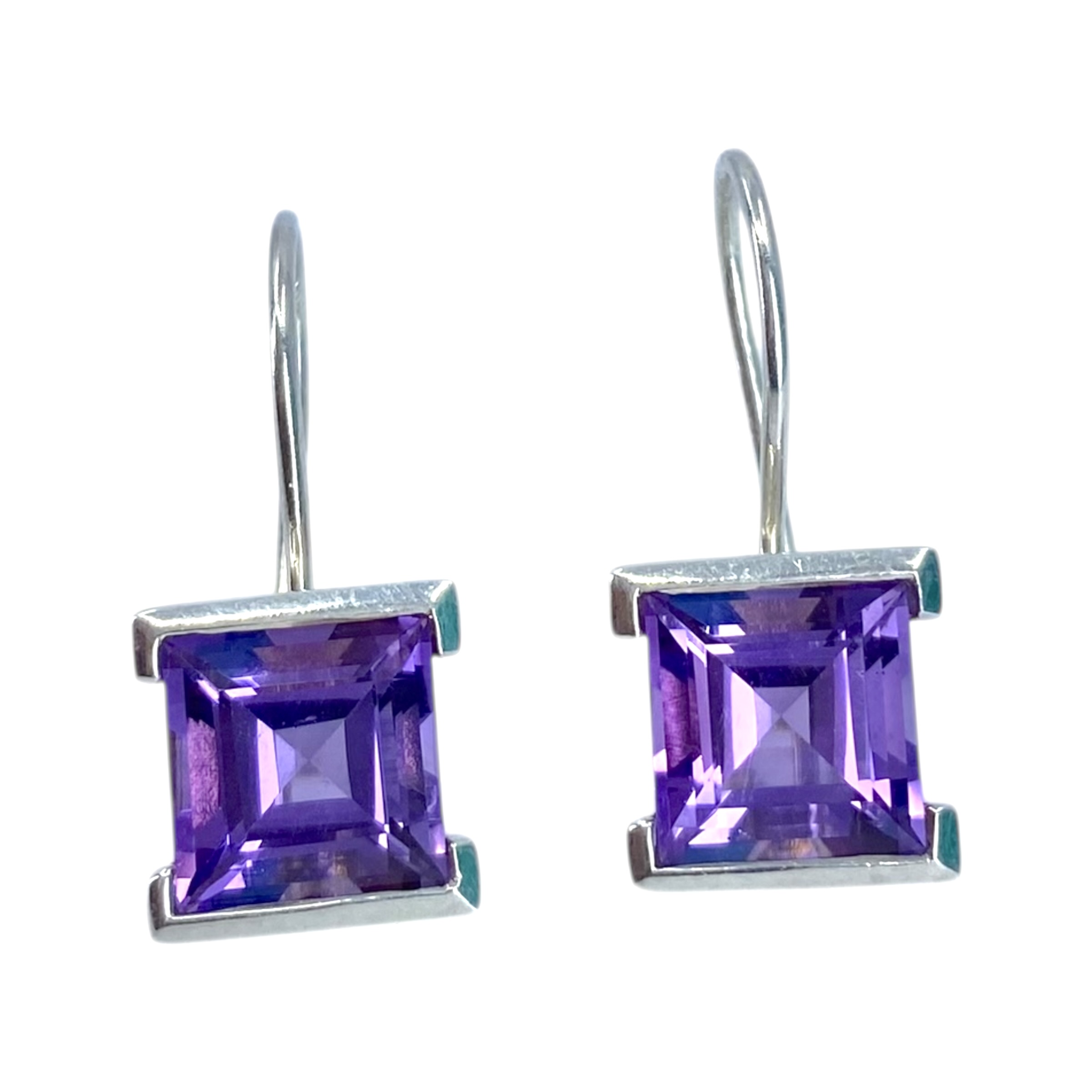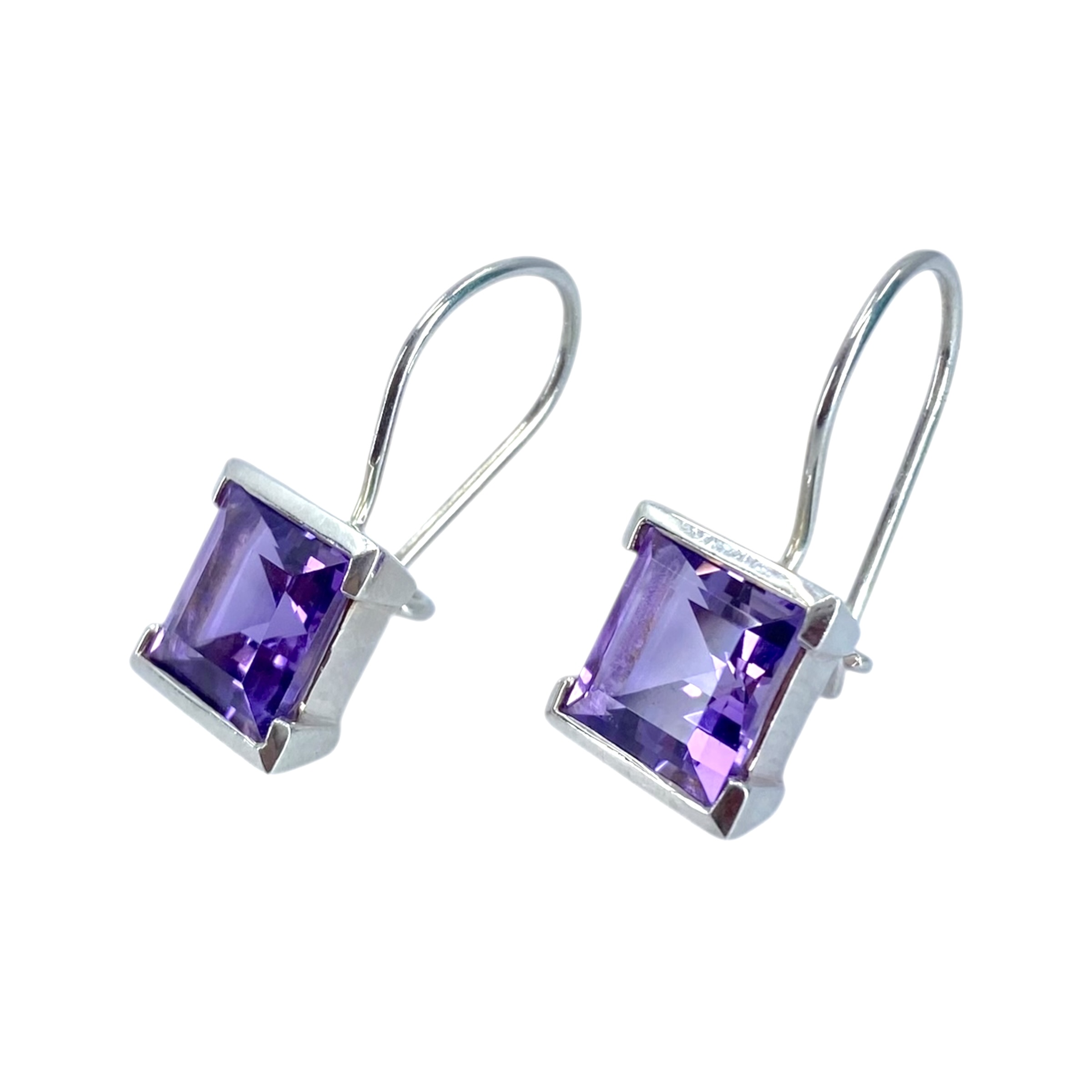 Signed Sterling Square Amethyst Hook Earrings 4.3g Engraved with Crown Hallmark 925
