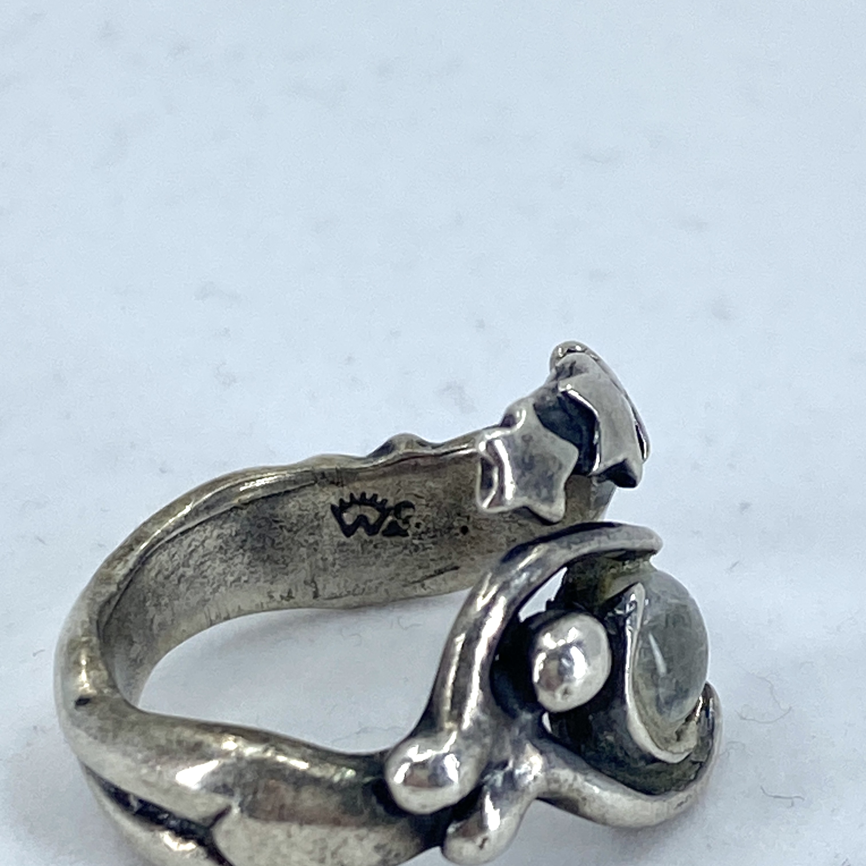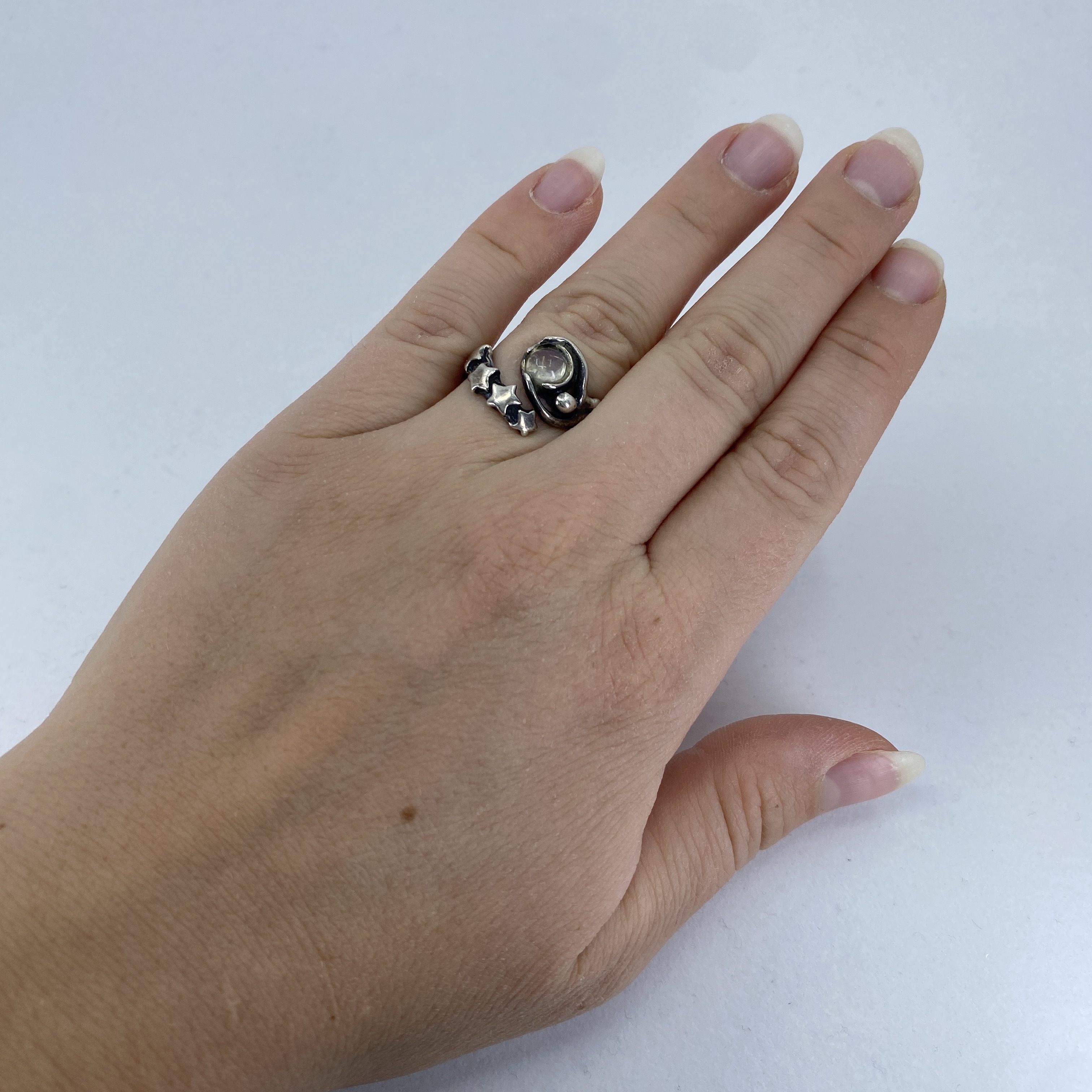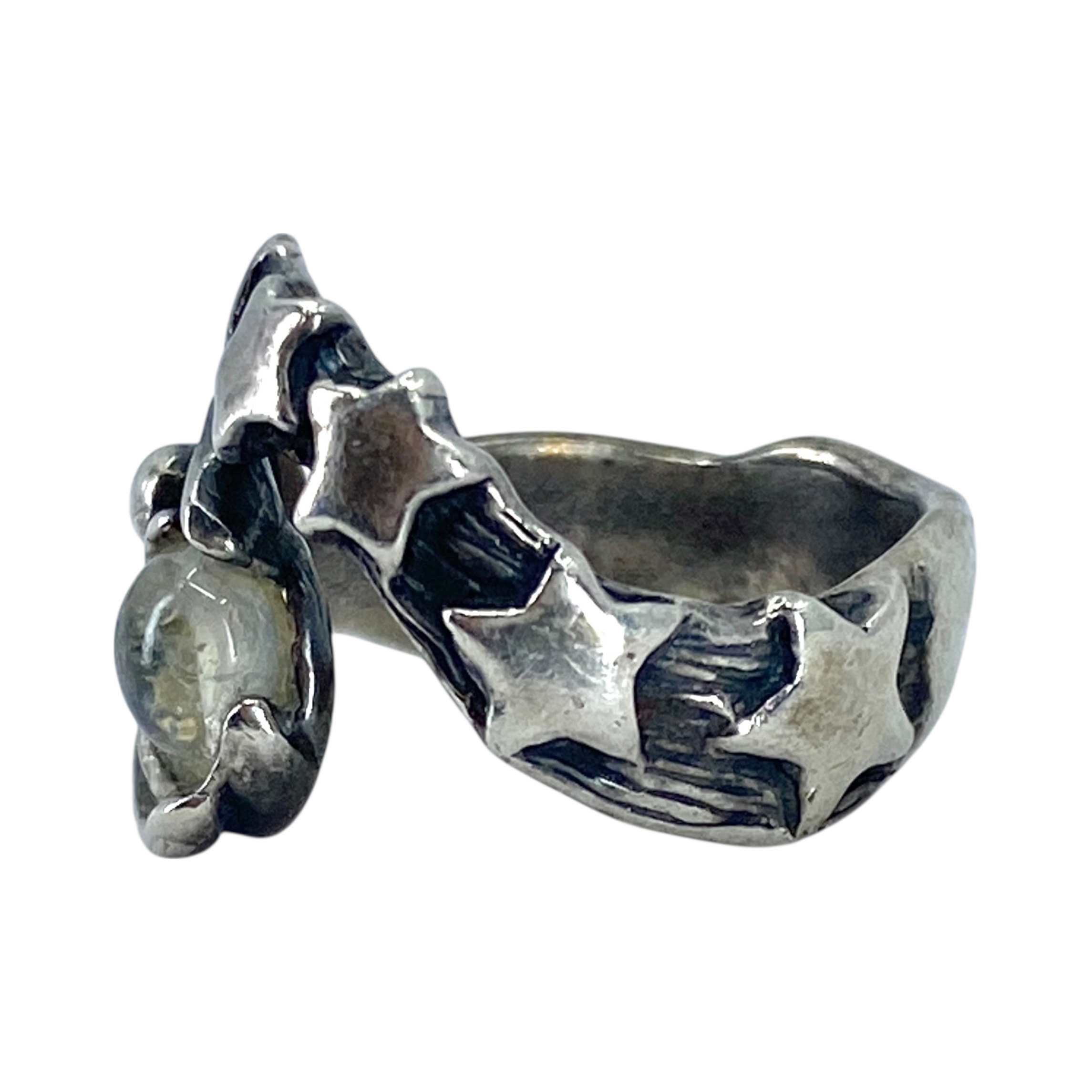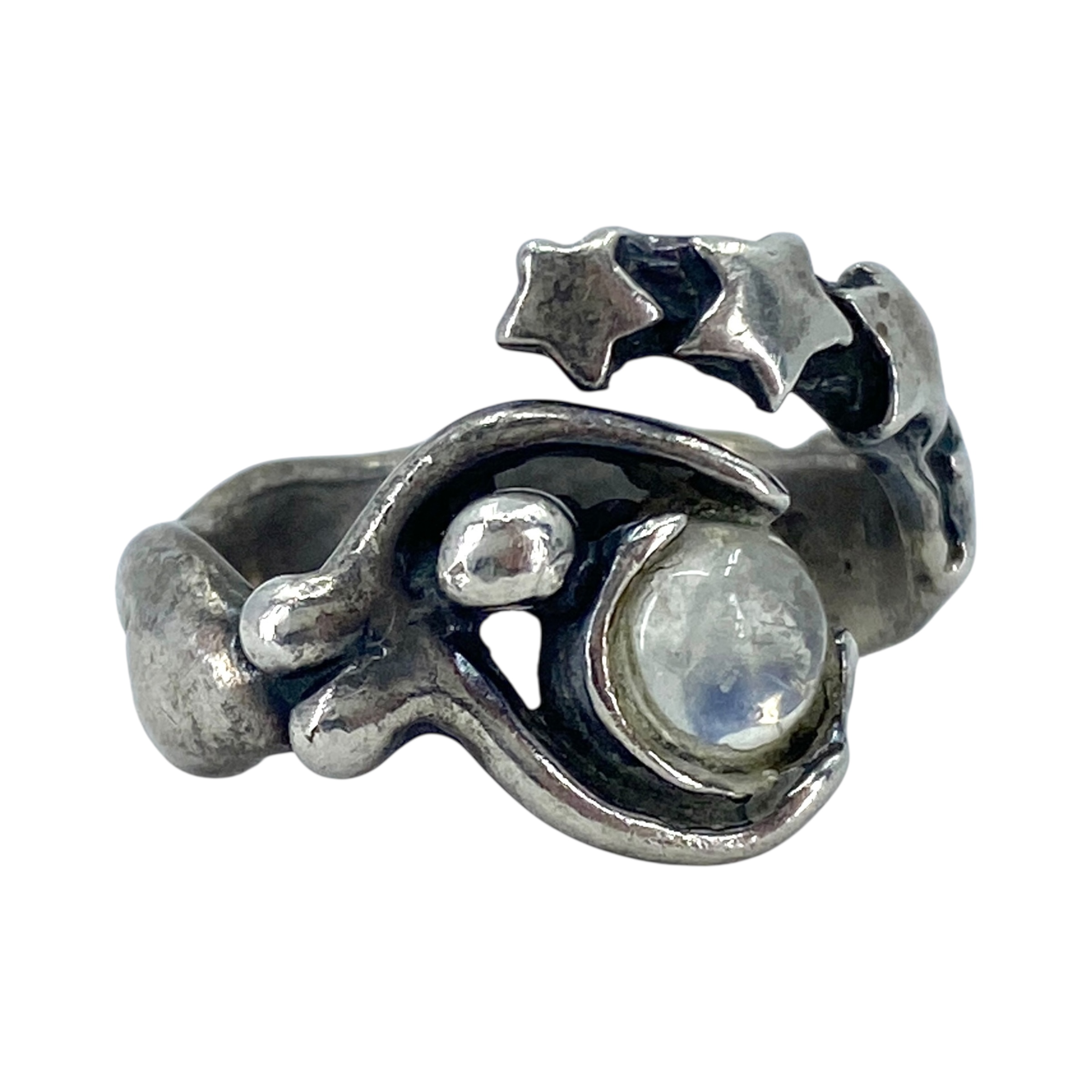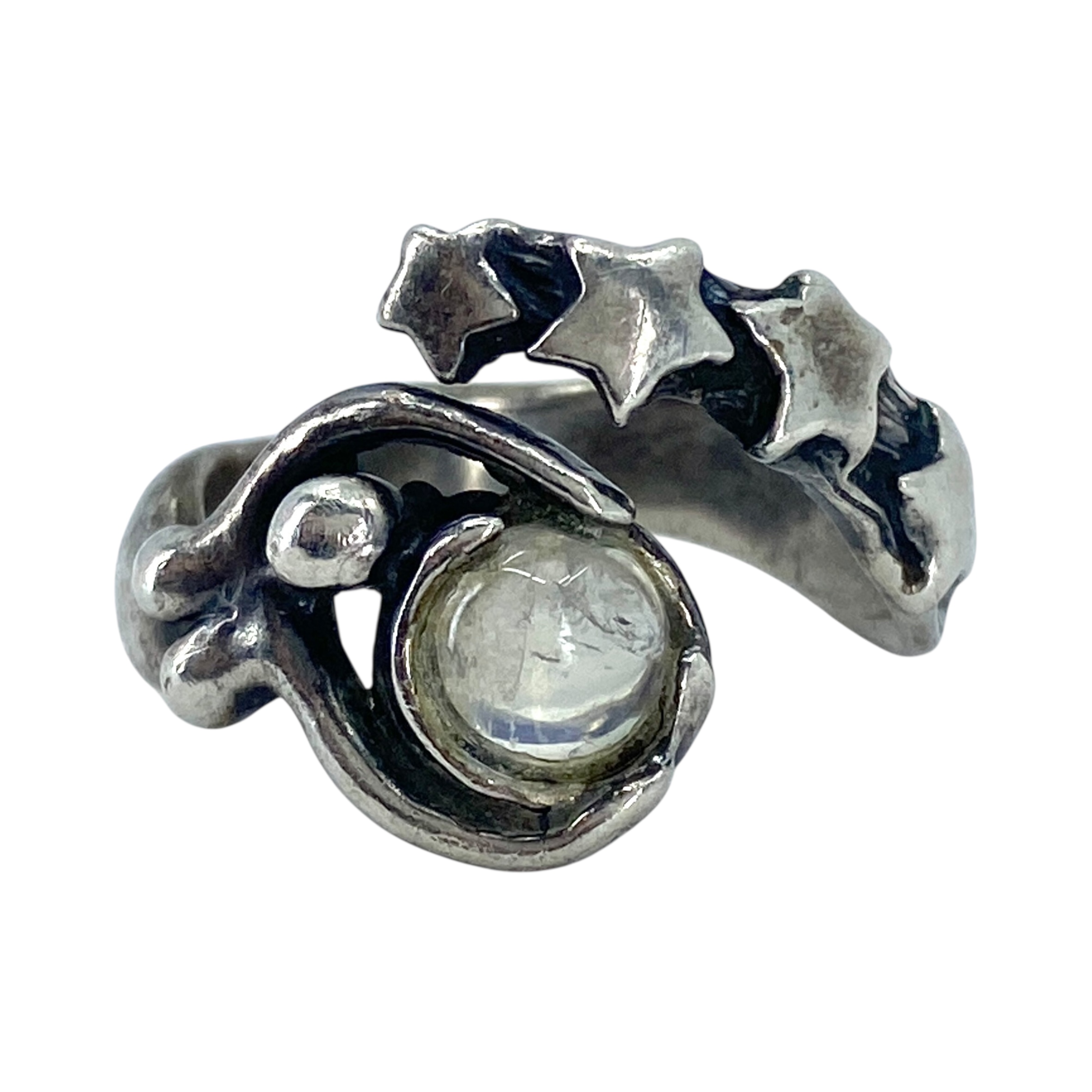 Signed Sterling Moonstone Star Birth Ring 7.33g sz 7 Engraved with Hallmark