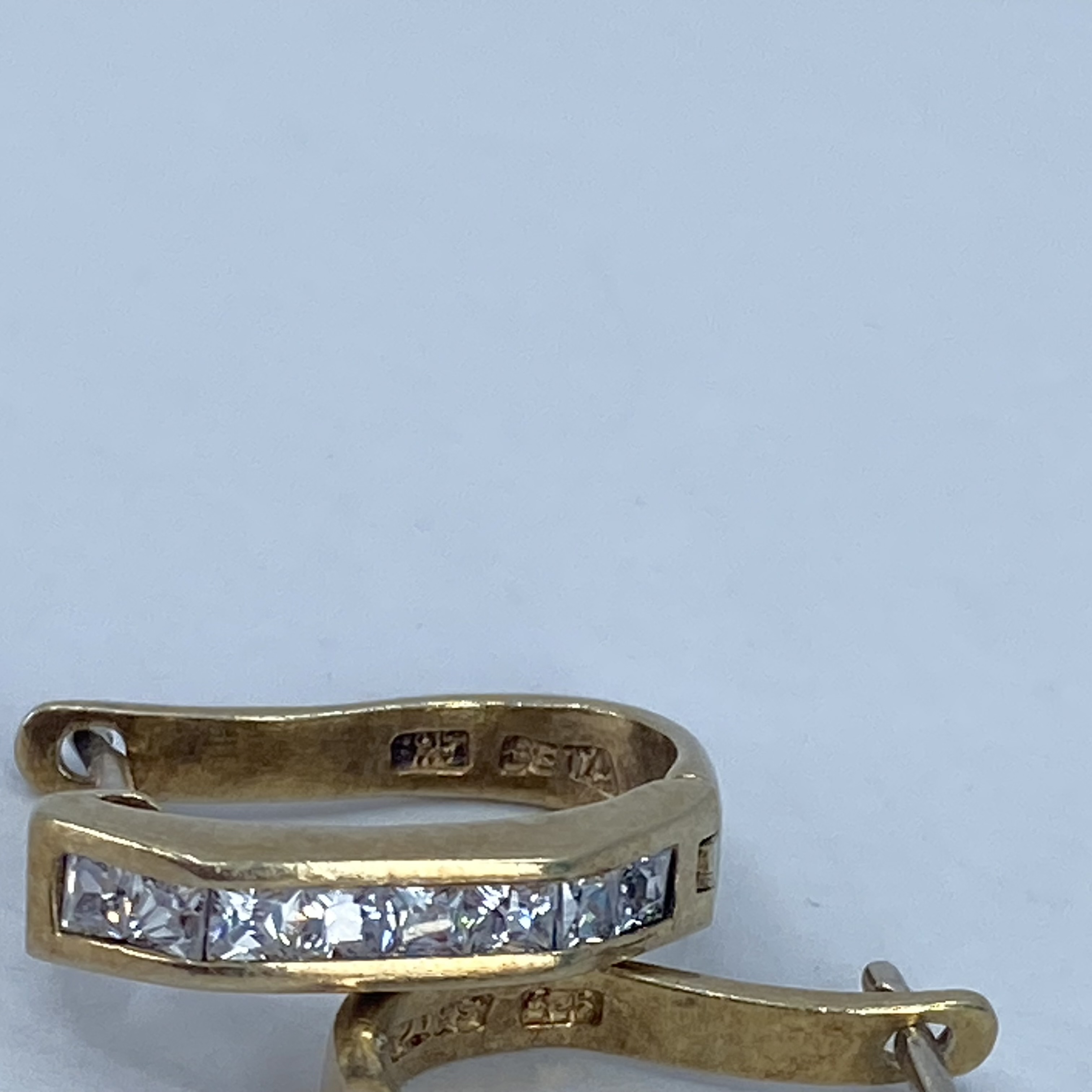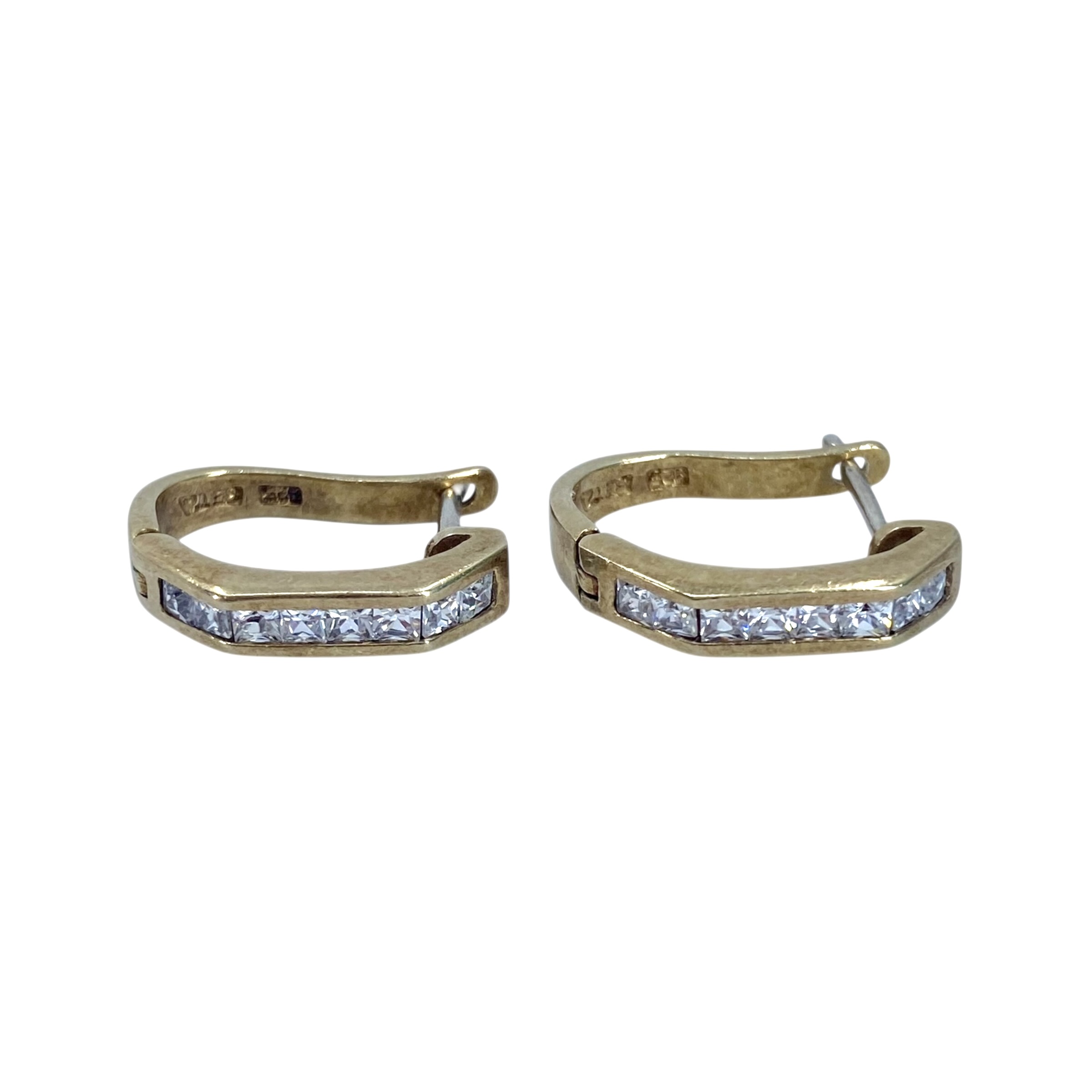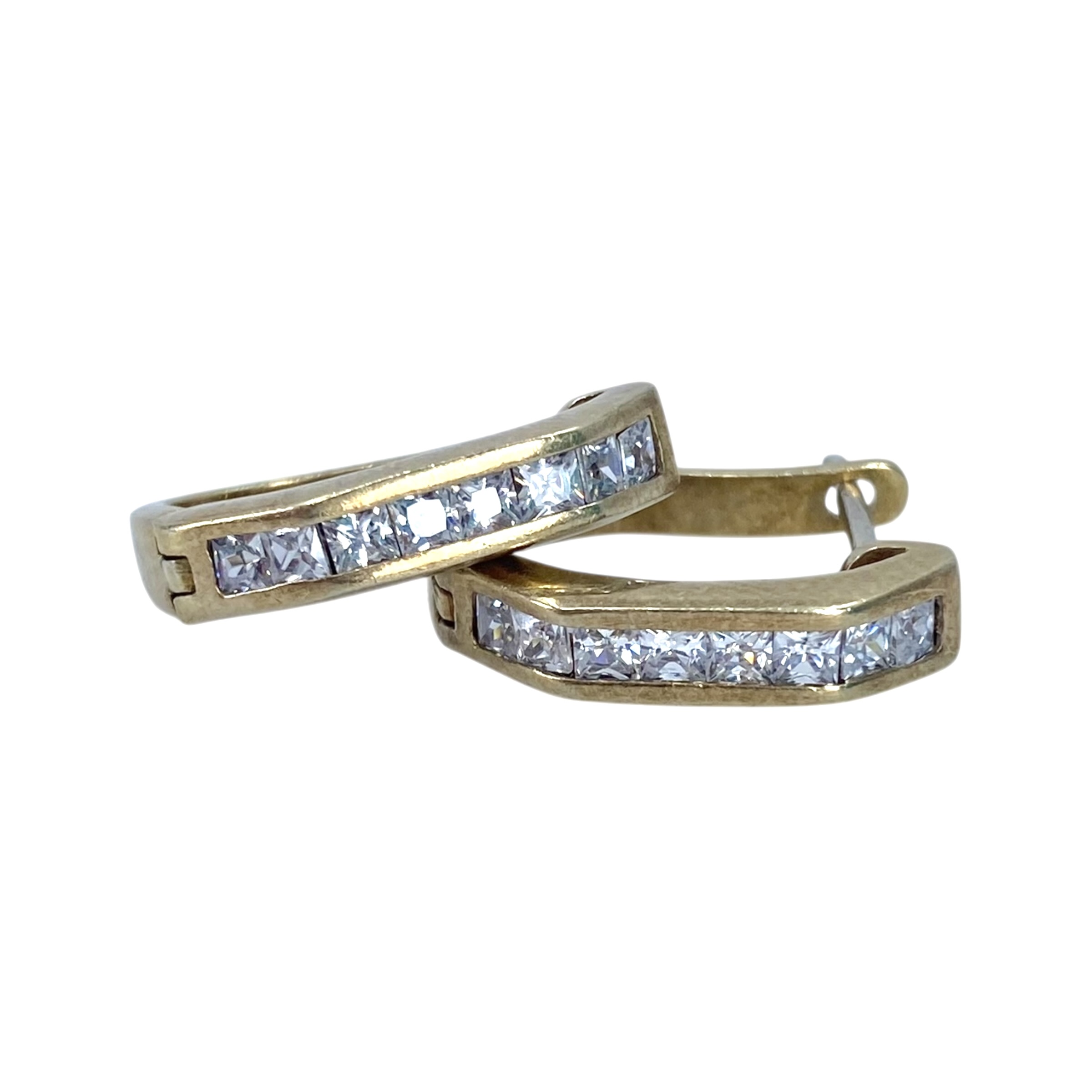 Signed Gold Over Sterling Square Rhinestone Huggie Earrings 4g Engraved 925 SE TA