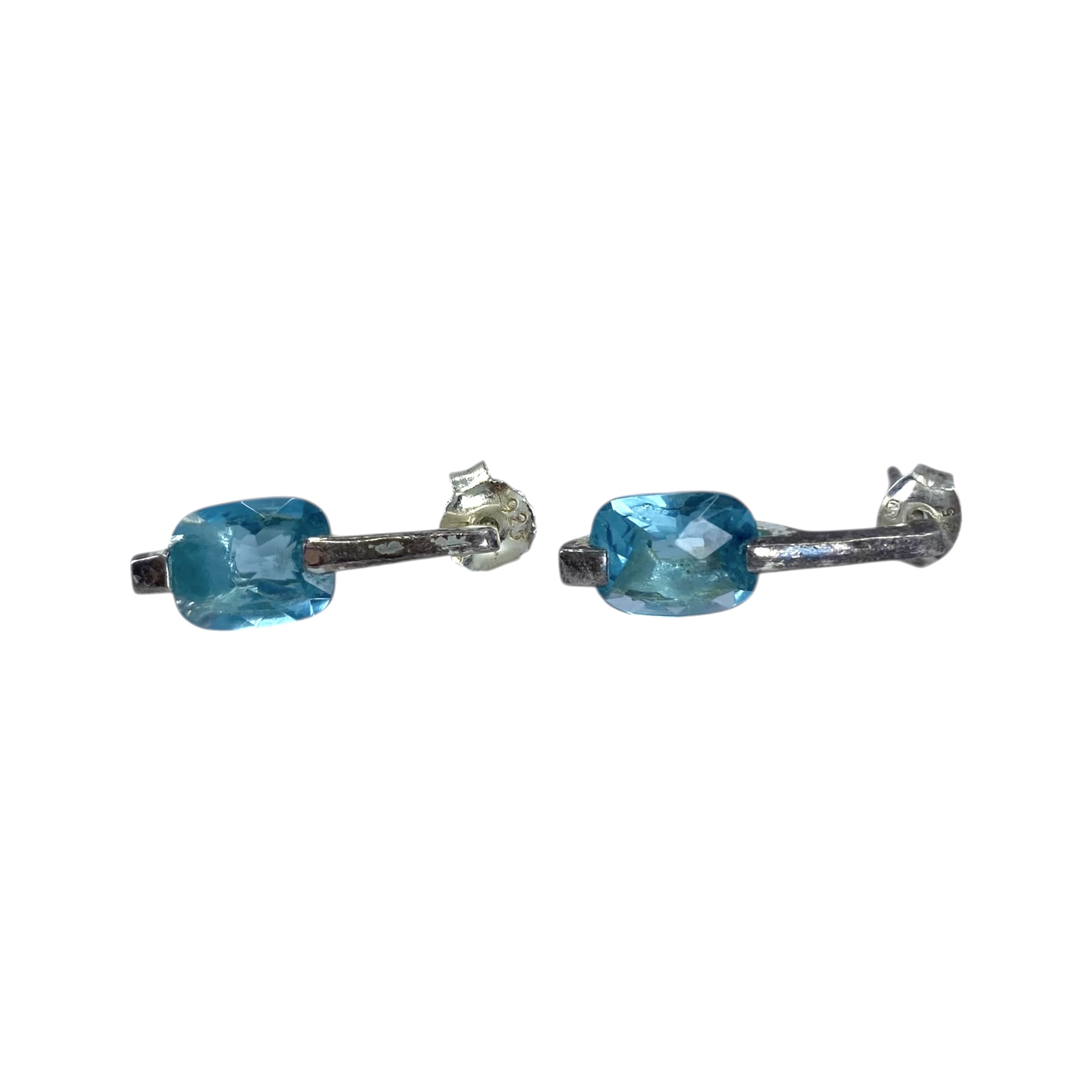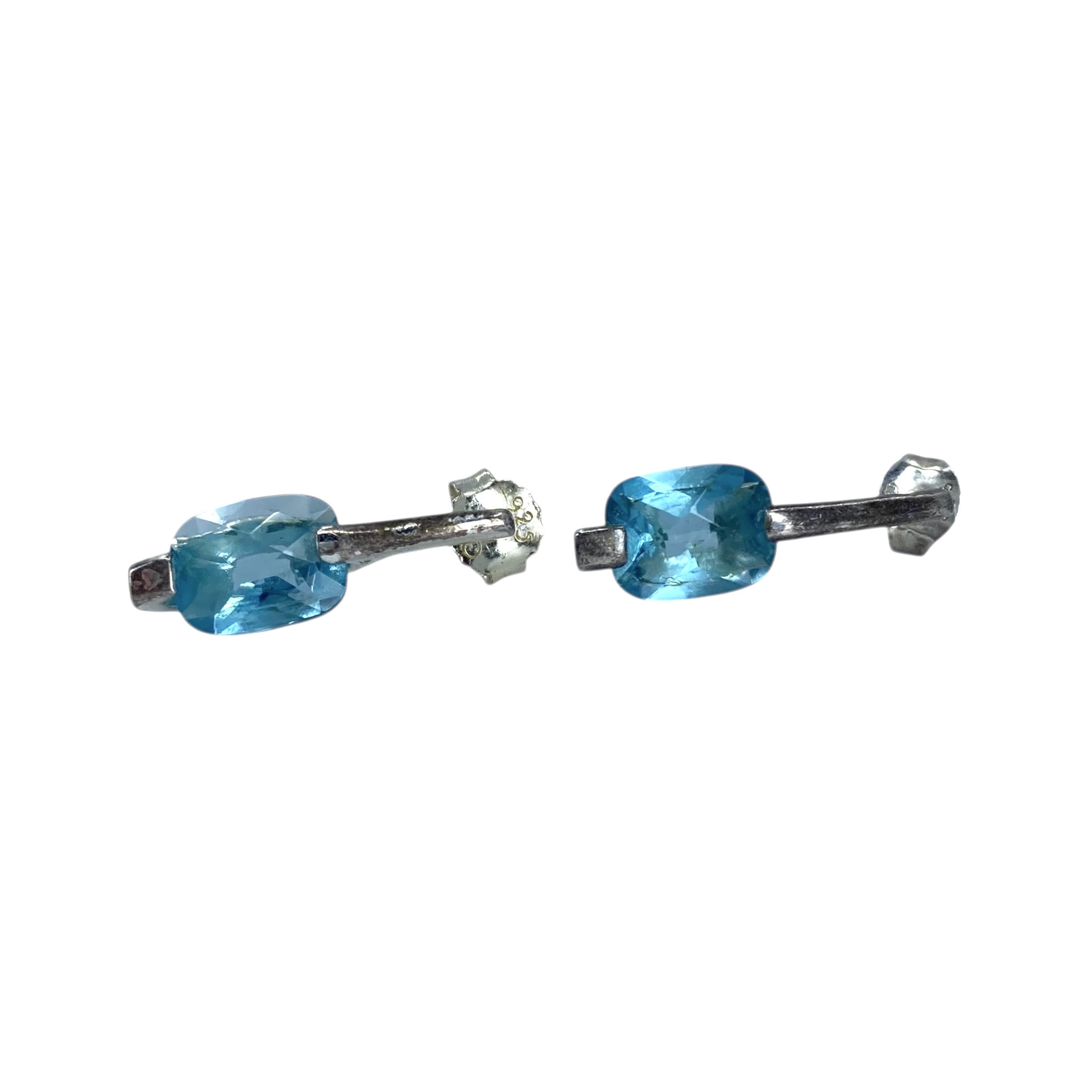 Signed Sterling Cushion Cut Blue CZ Earrings 2.5g