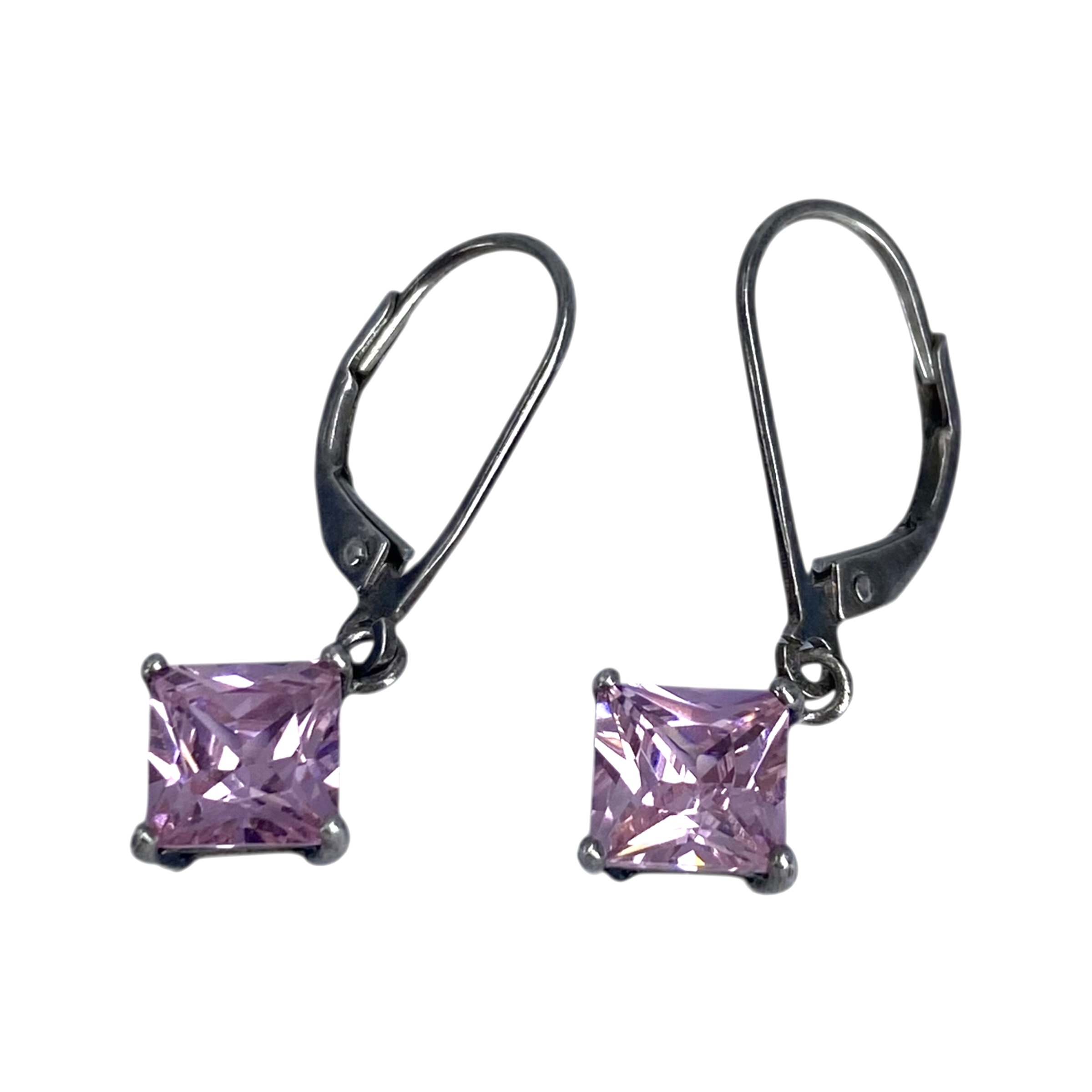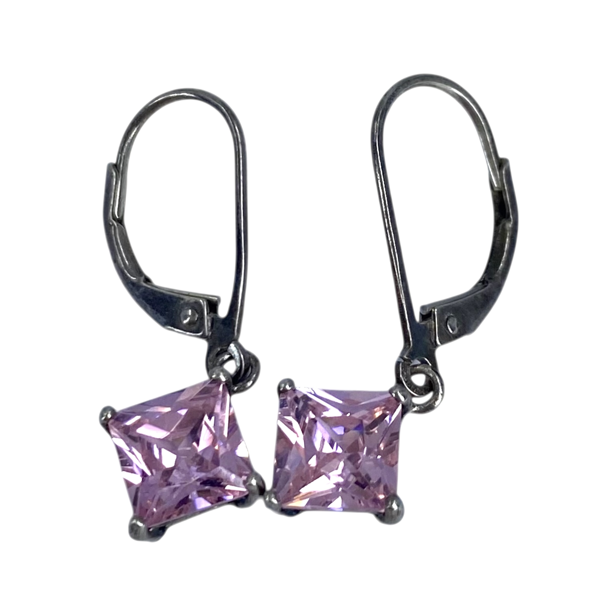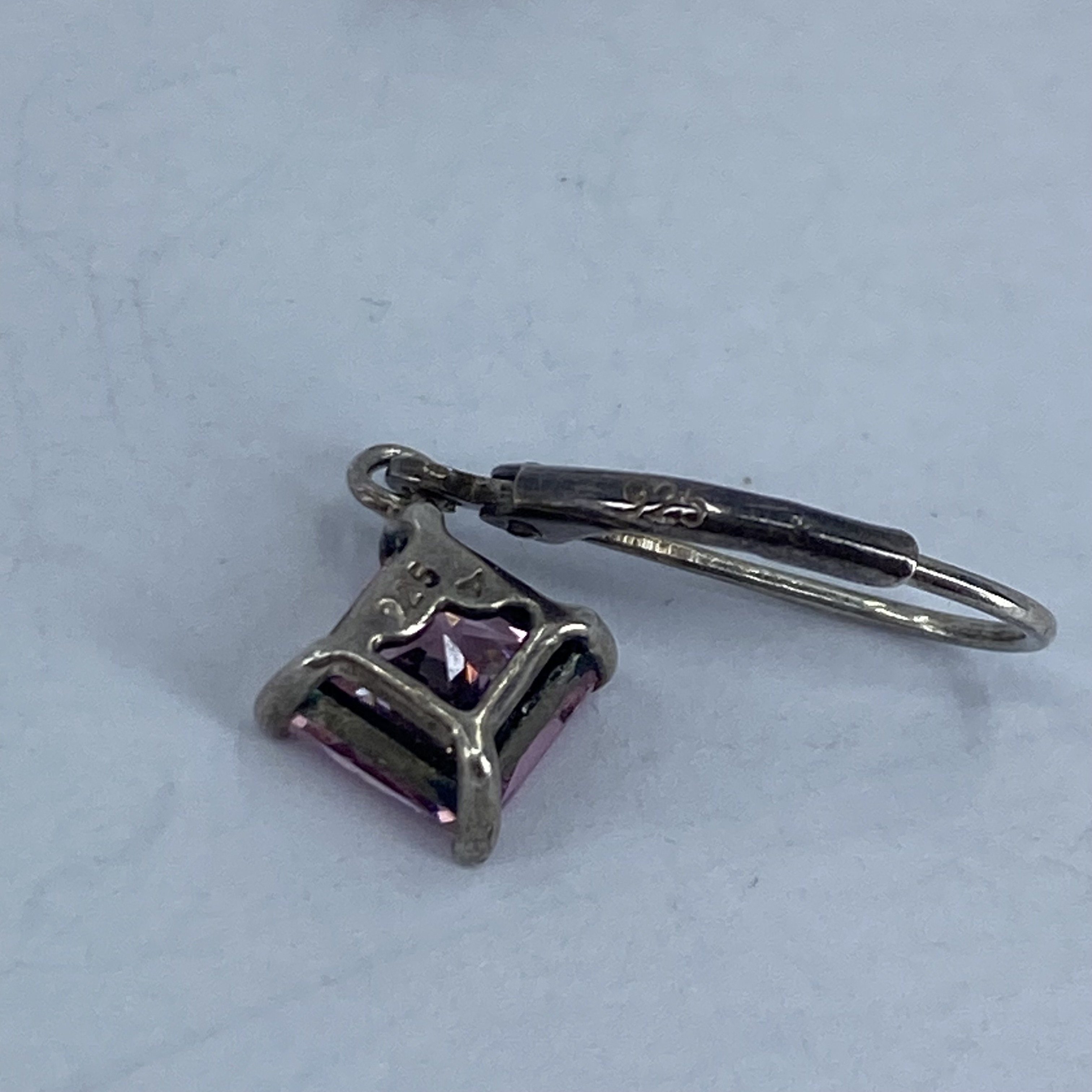 Sterling Princess Cut Pale Pink Gemstone Dangle Earrings 2g