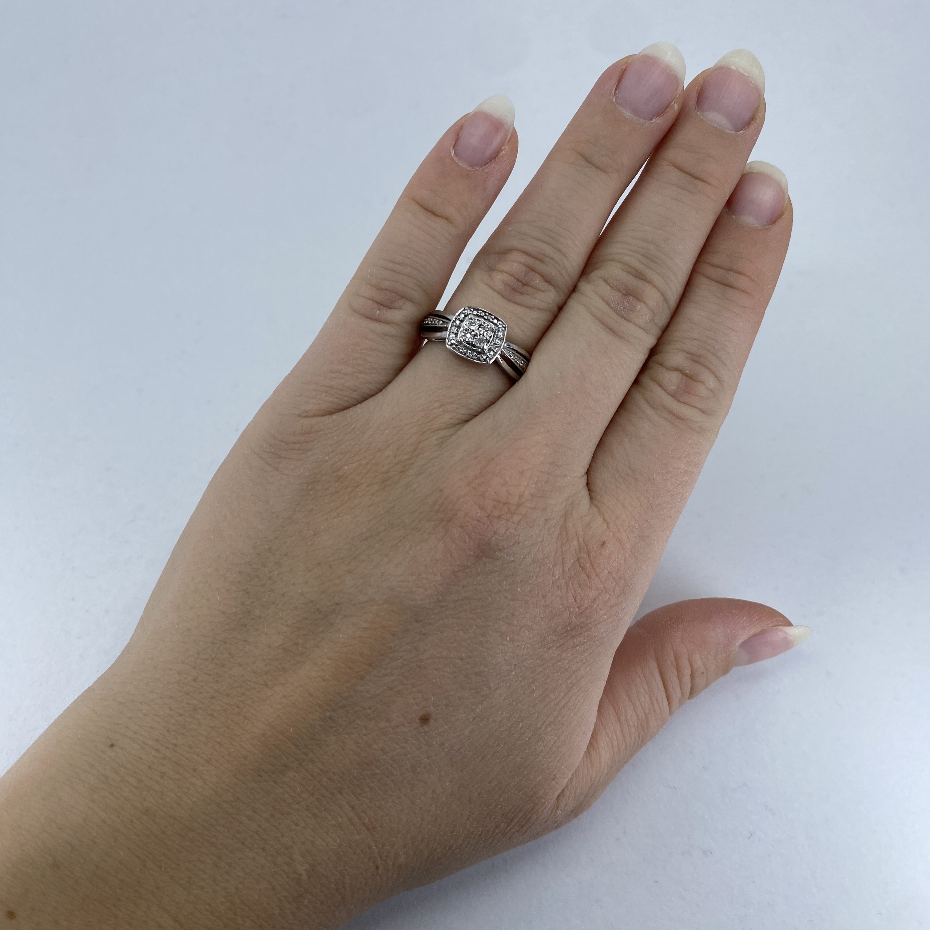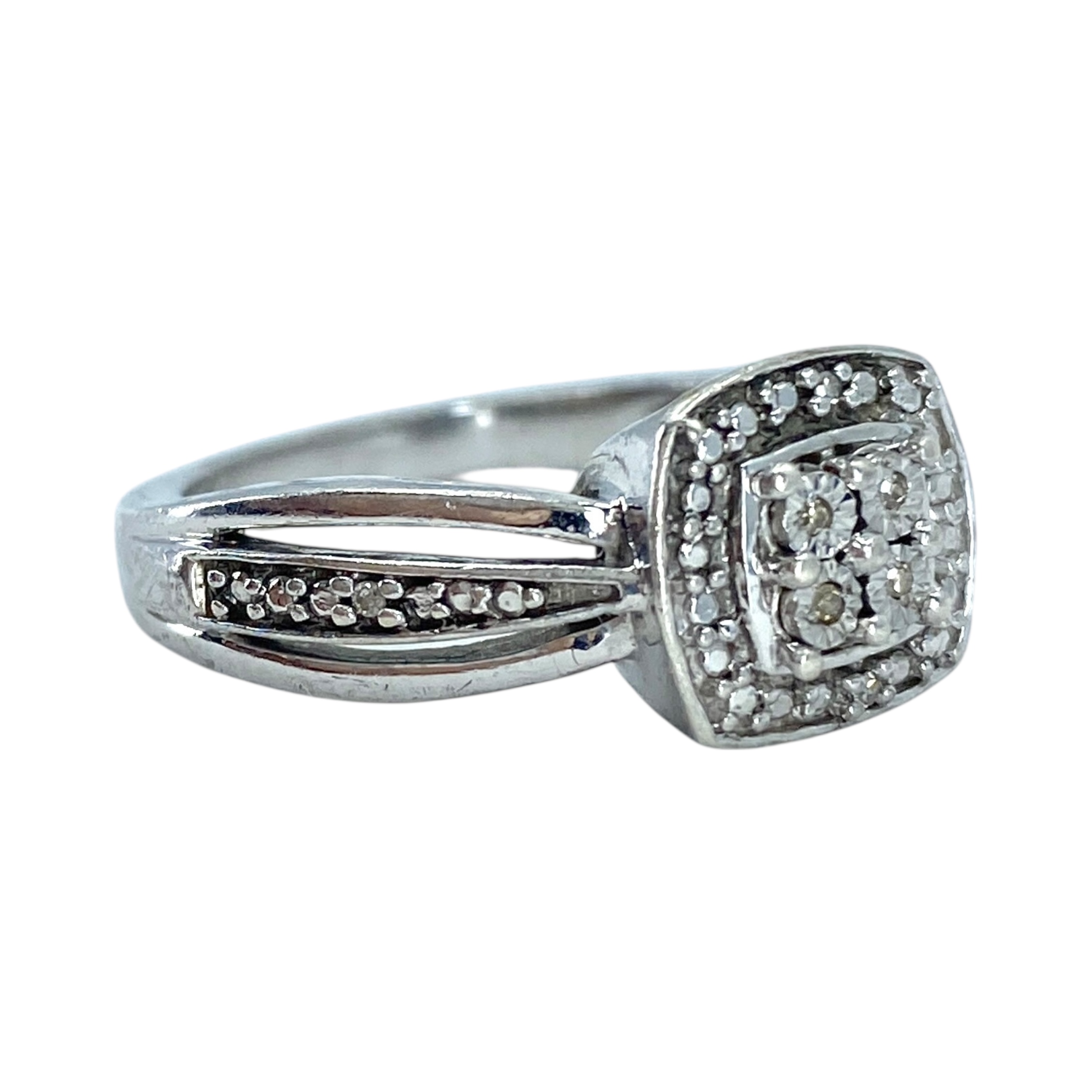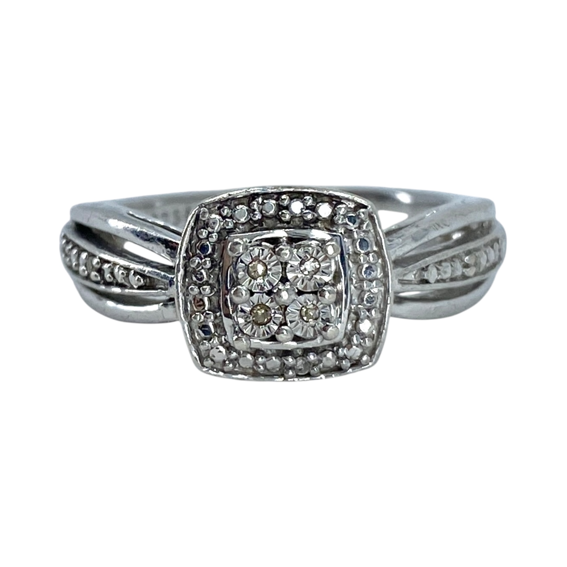 Signed Sterling Diamond Cluster Halo Ring 4g sz 7
