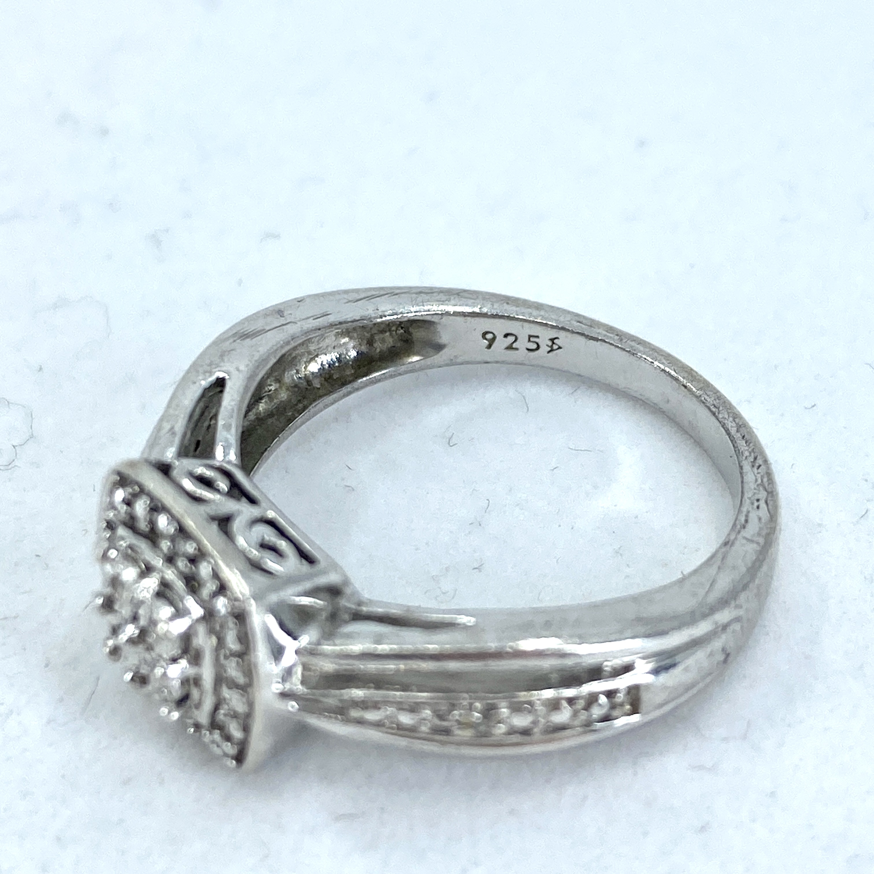 Signed Sterling Diamond Cluster Halo Ring 4g sz 7 Engraved 925 Hallmark