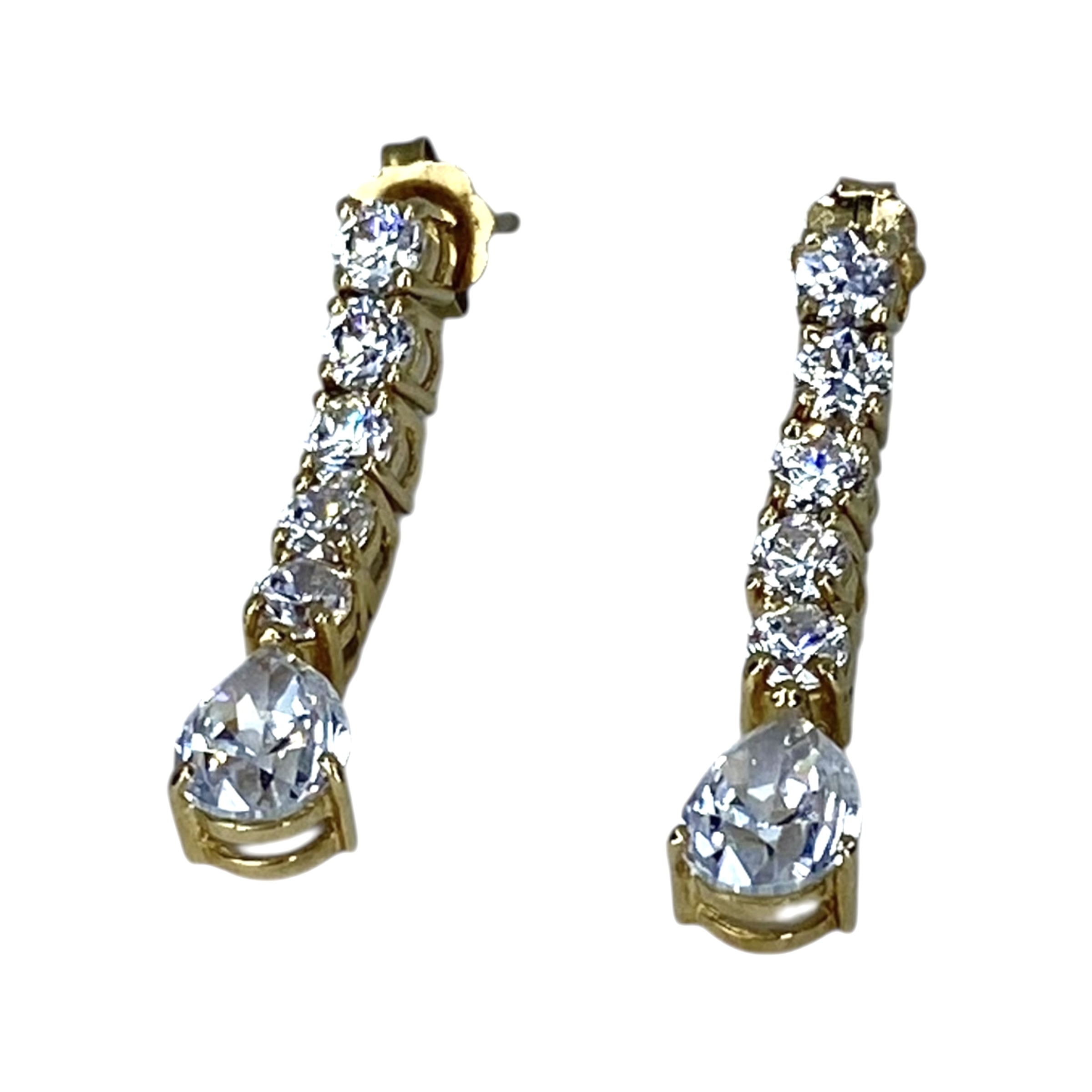 Signed 14K Gold Over Sterling CZ Teardrop Earrings 2.5g