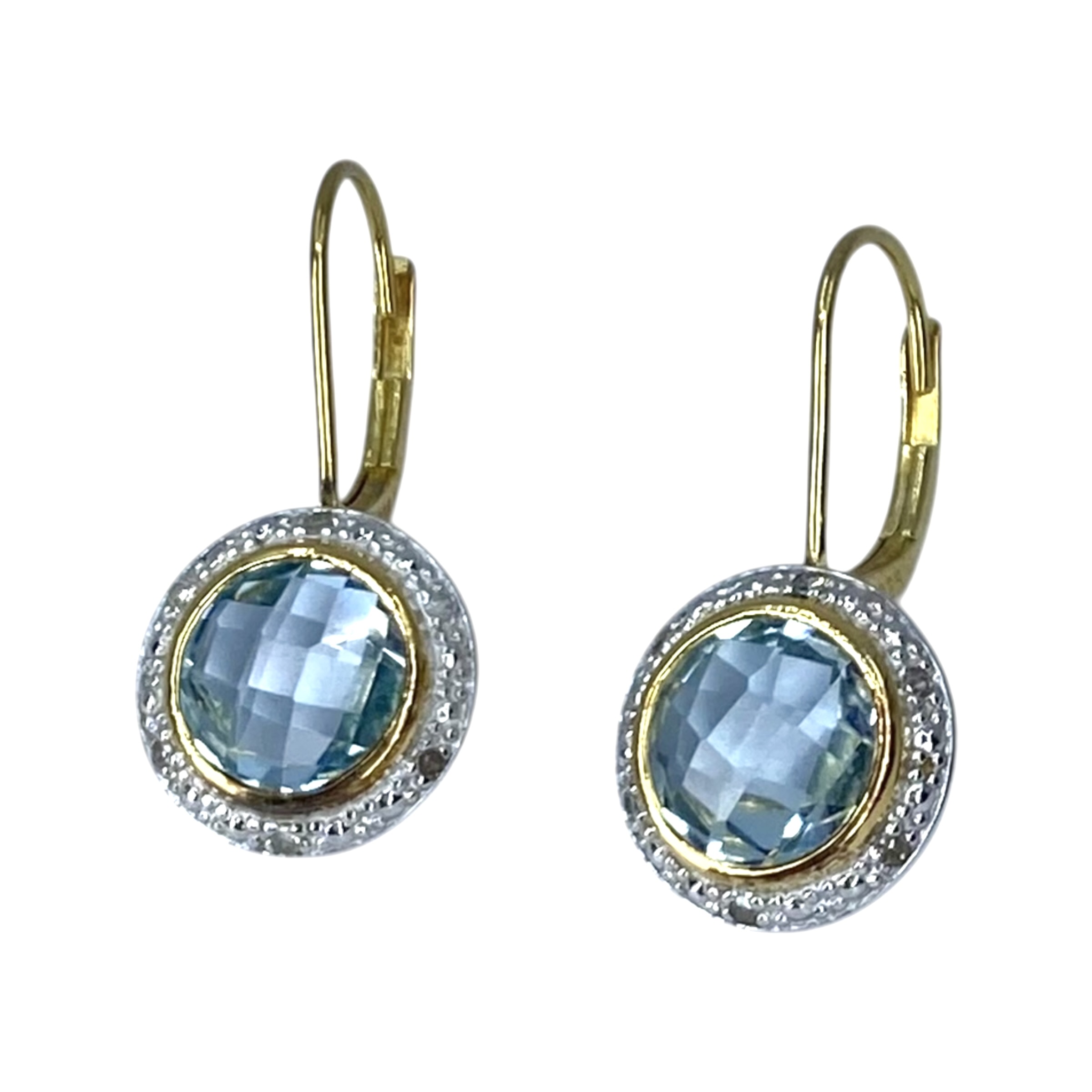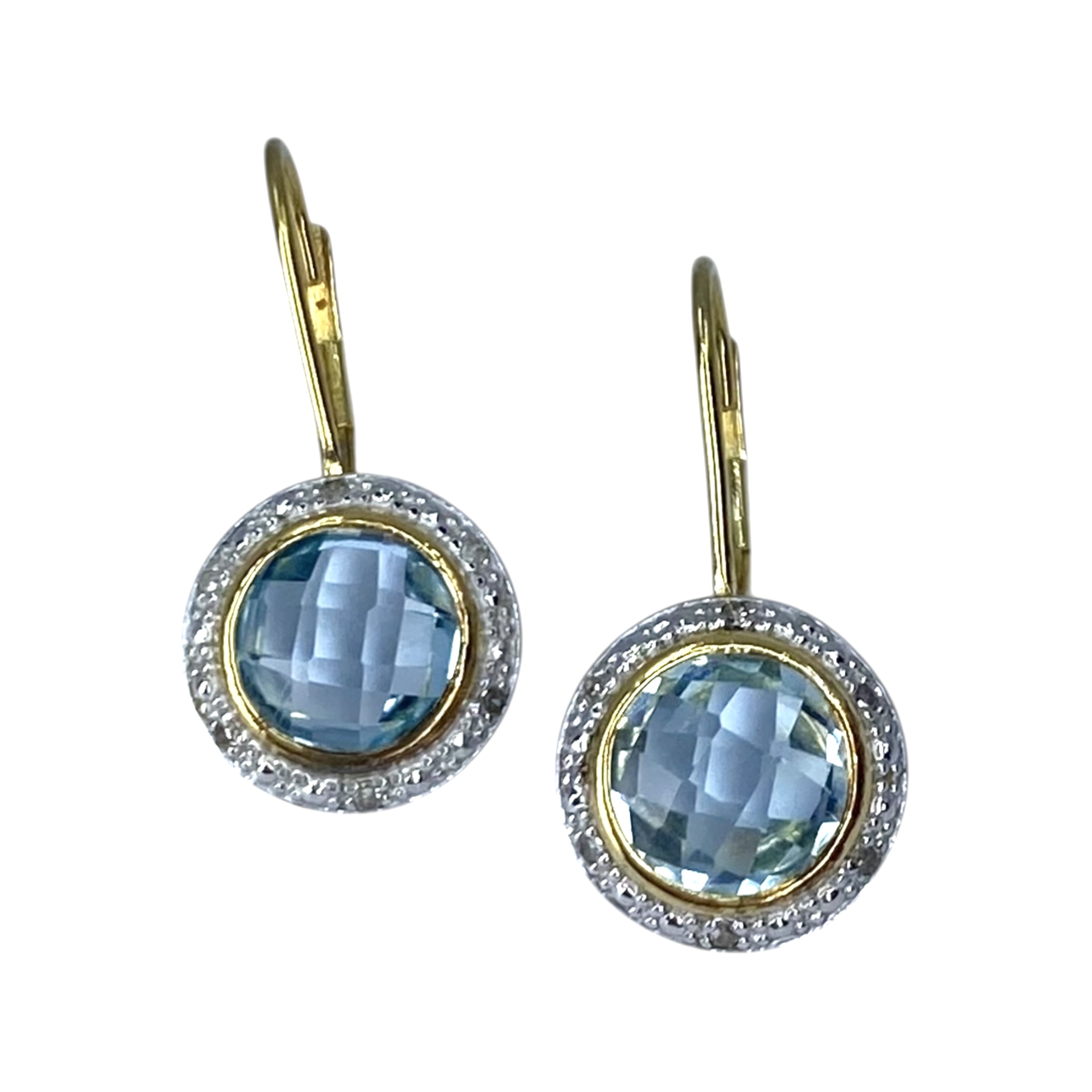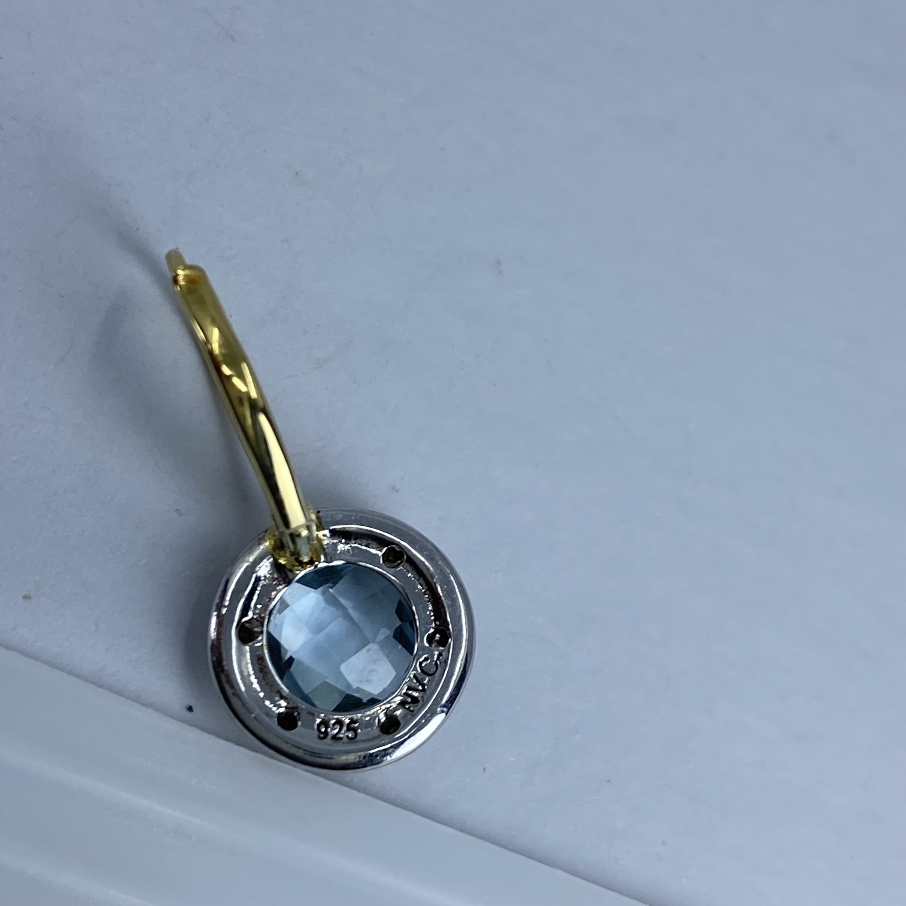 Signed Gold Over Sterling Blue Topaz and Diamond Earrings 3.1g Engraved 925 NVC