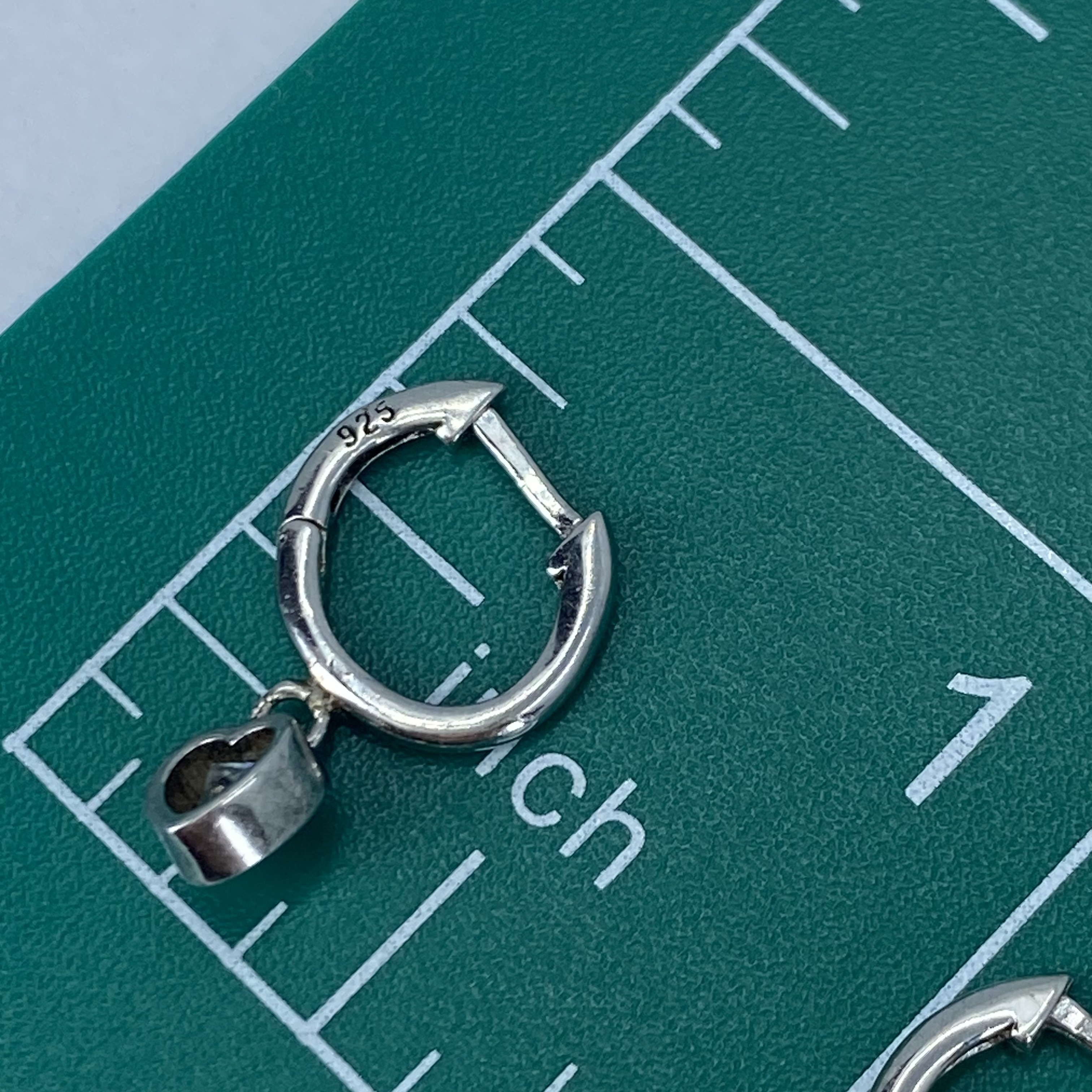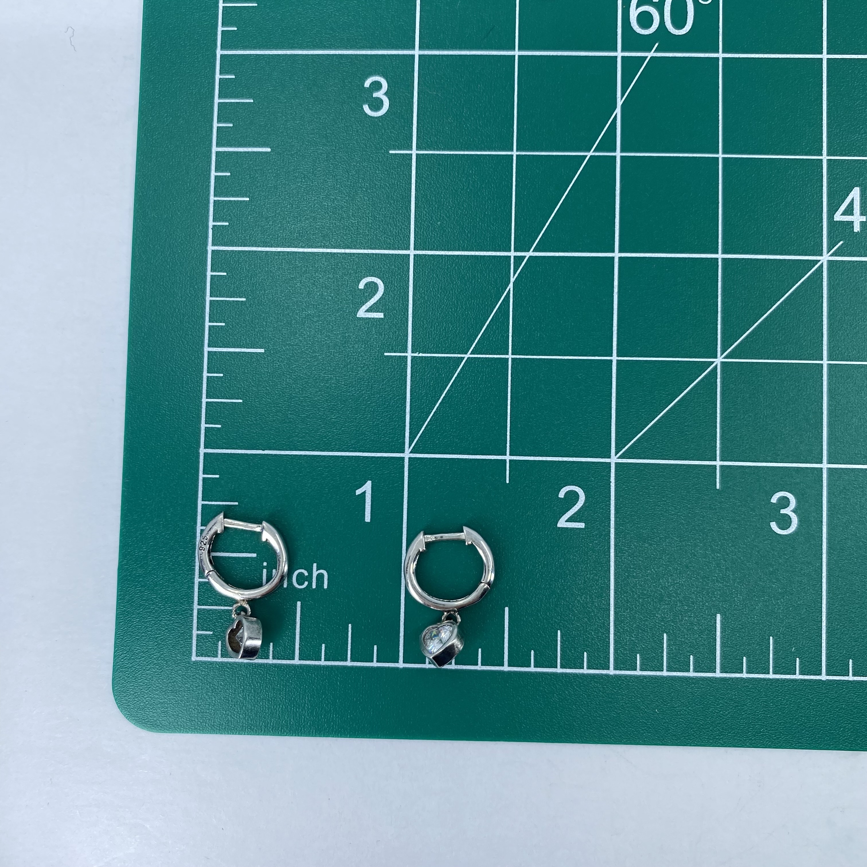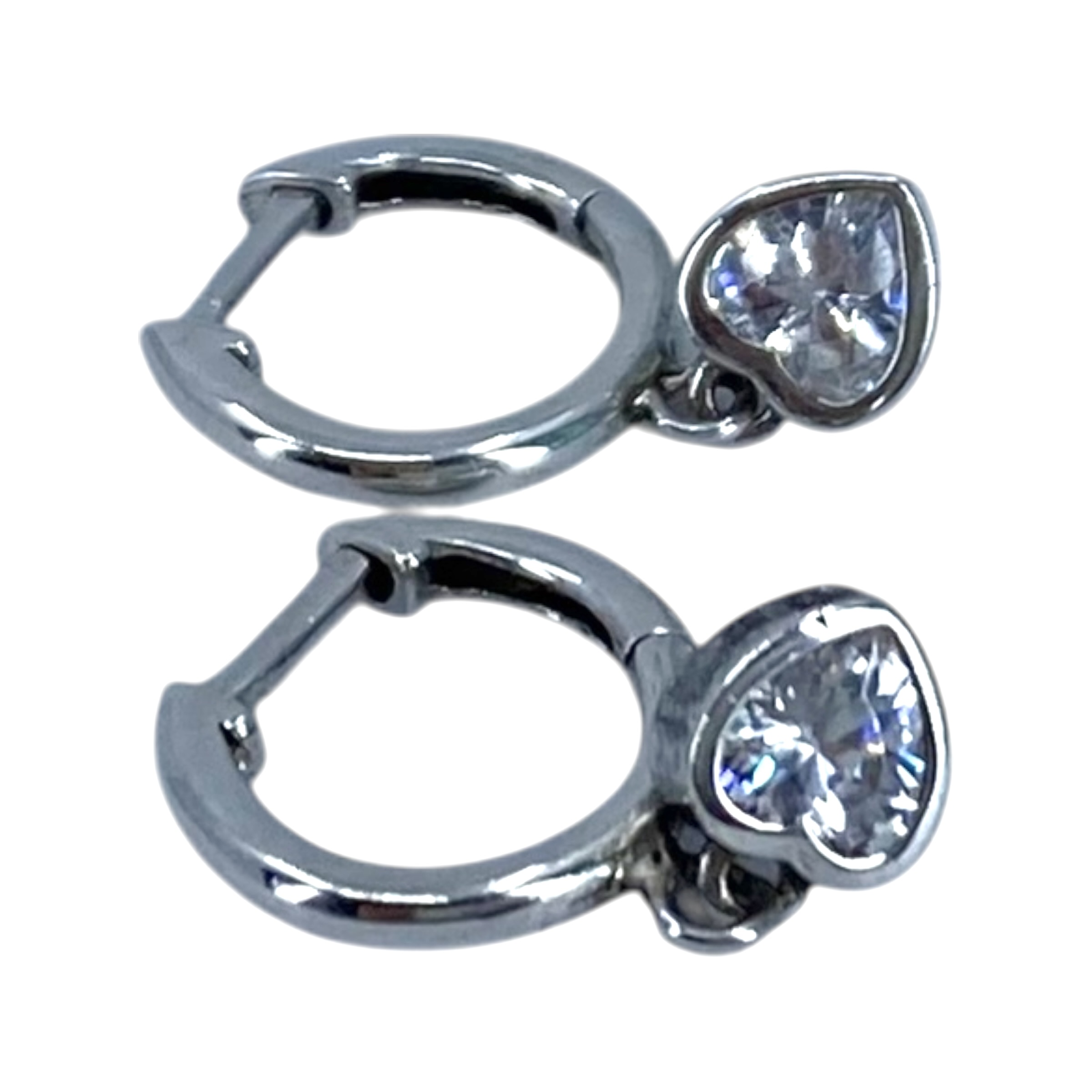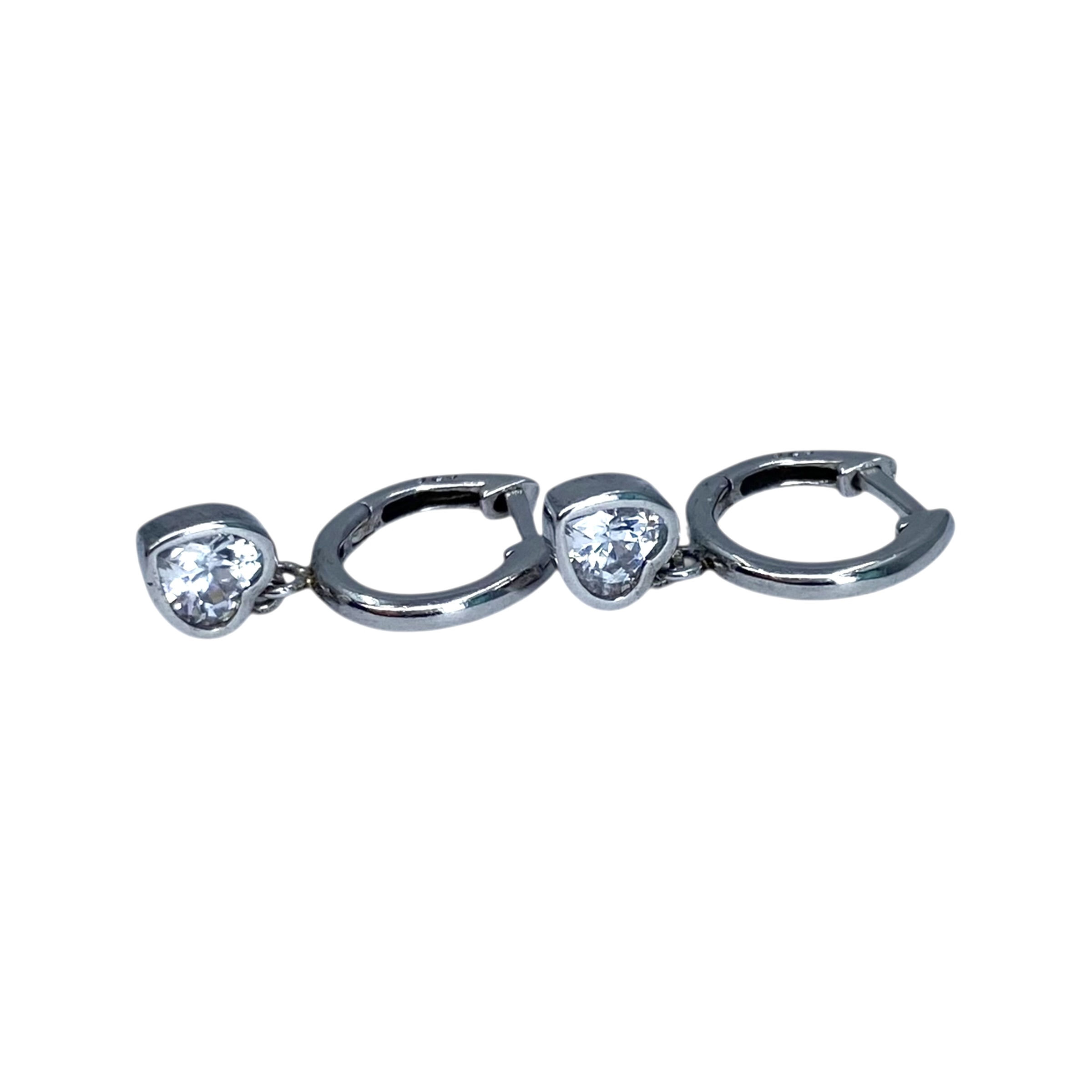 Sterling Heart Rhinestone Dangle Huggie Earrings 1.5g