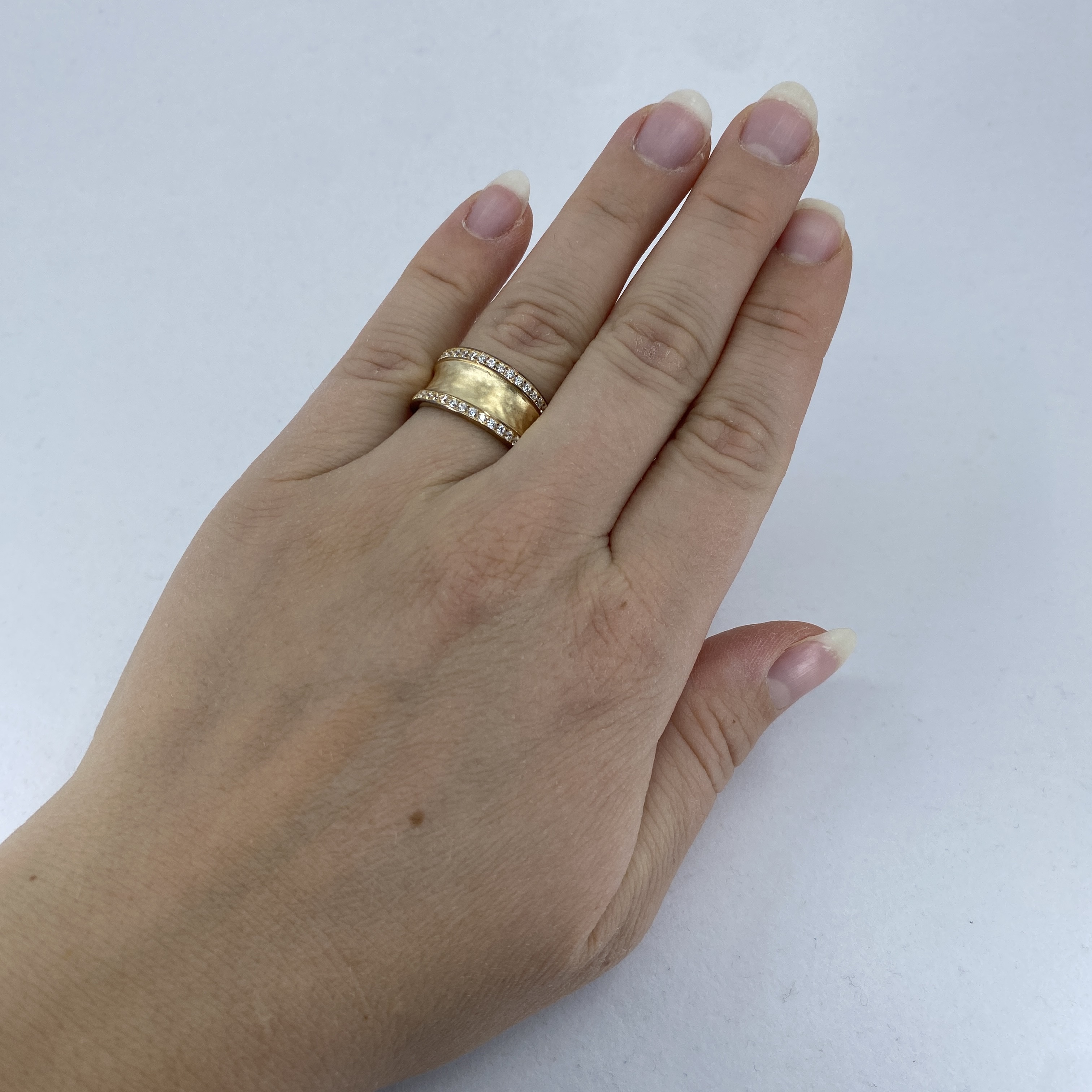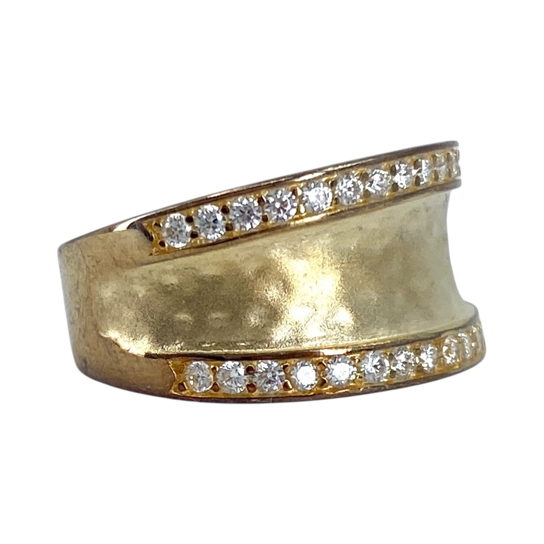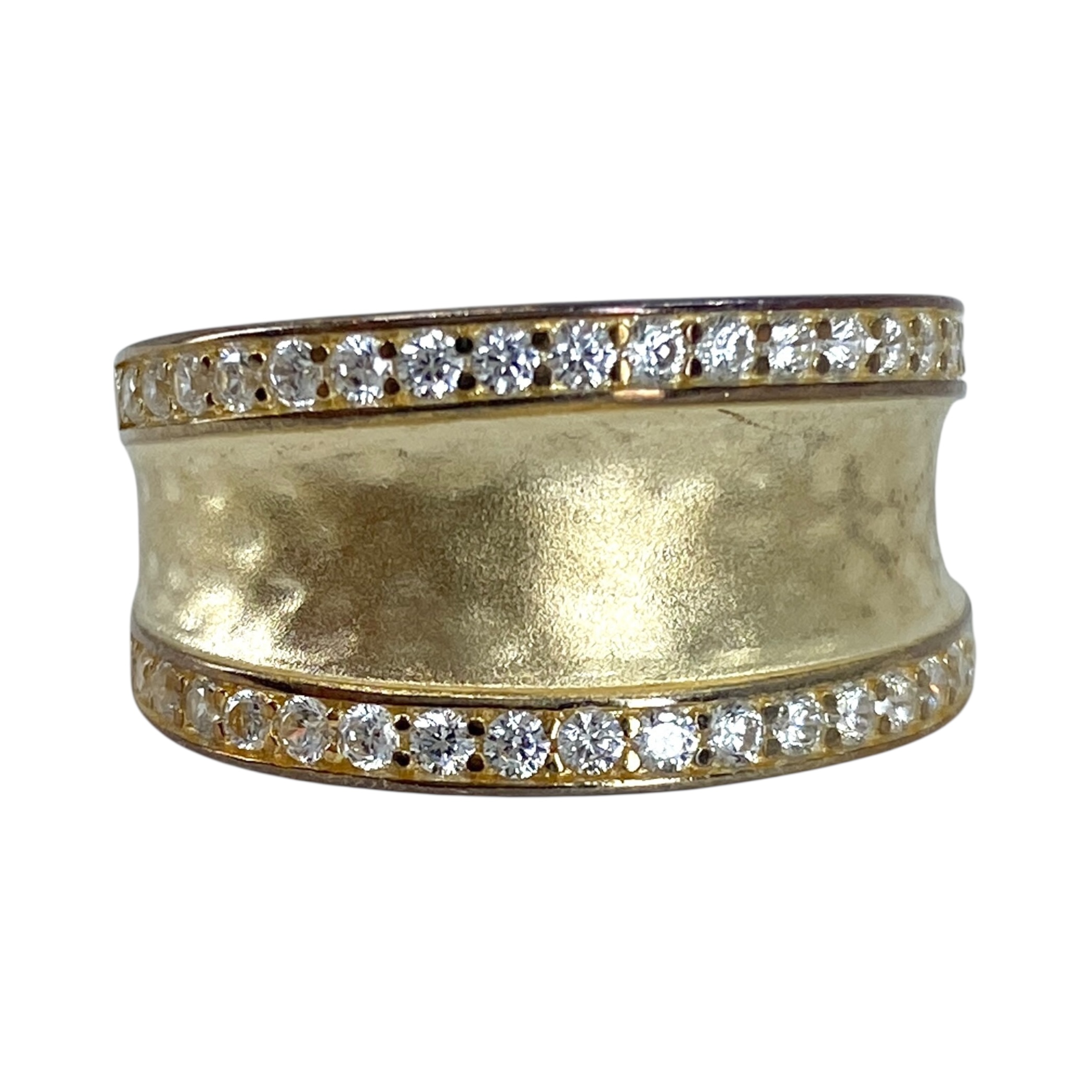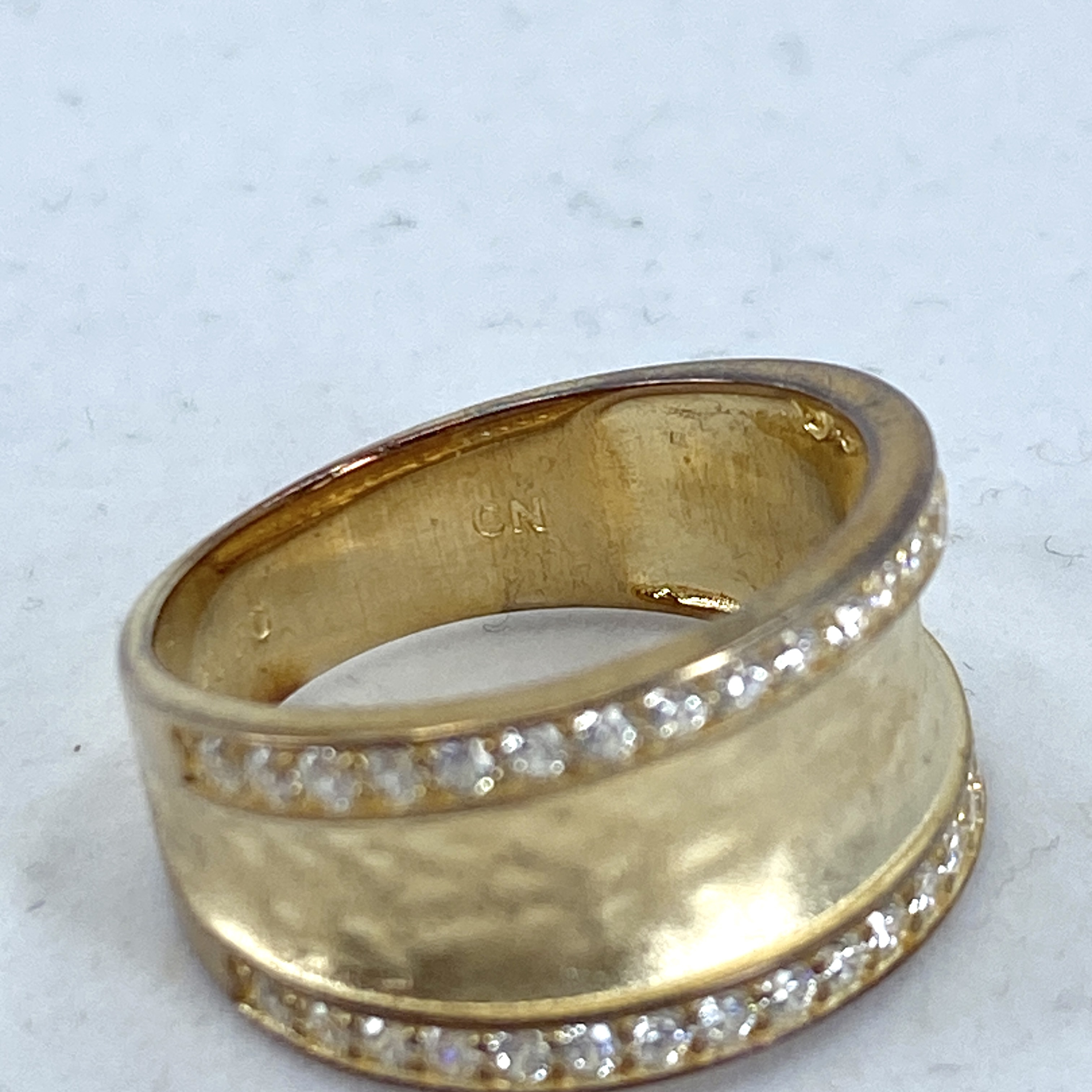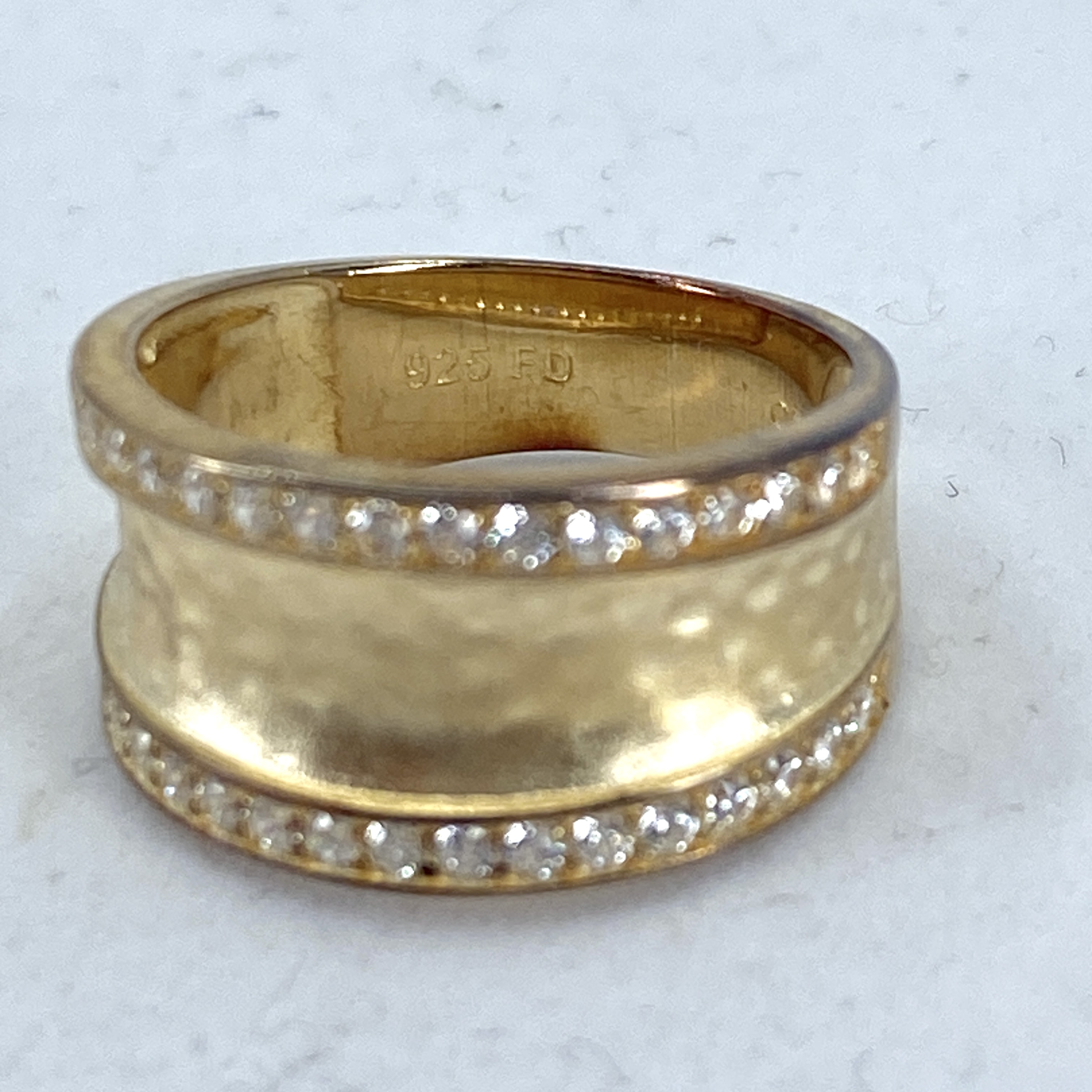 Signed Gold Over Sterling Rhinestone Hammered Band 5g sz 7.5 Engraved 925 FD CN