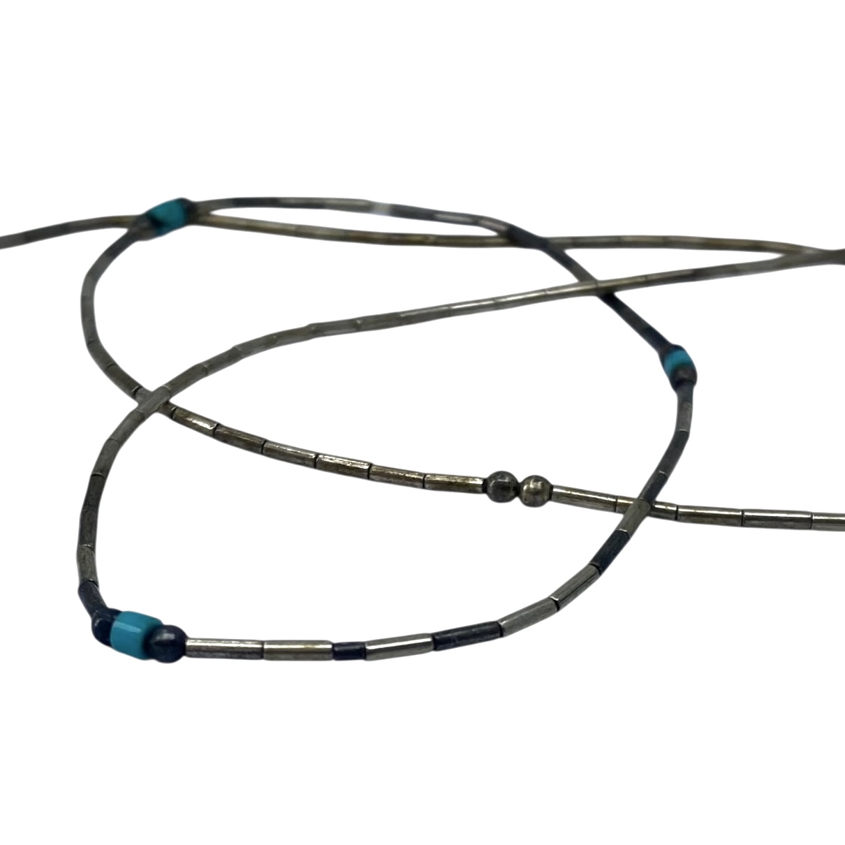 Sterling 17in Tube and Turquoise Bead Necklace 3.2g Screw clasp
