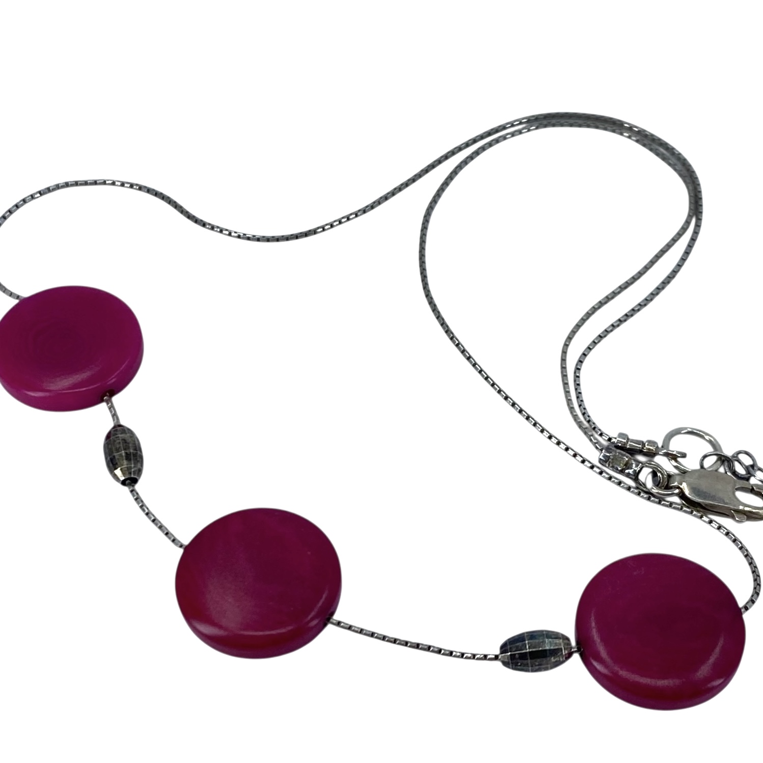 Sterling Pink Circle Bead 18.5in Necklace 6g Engraved 925