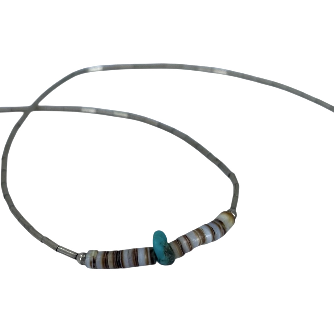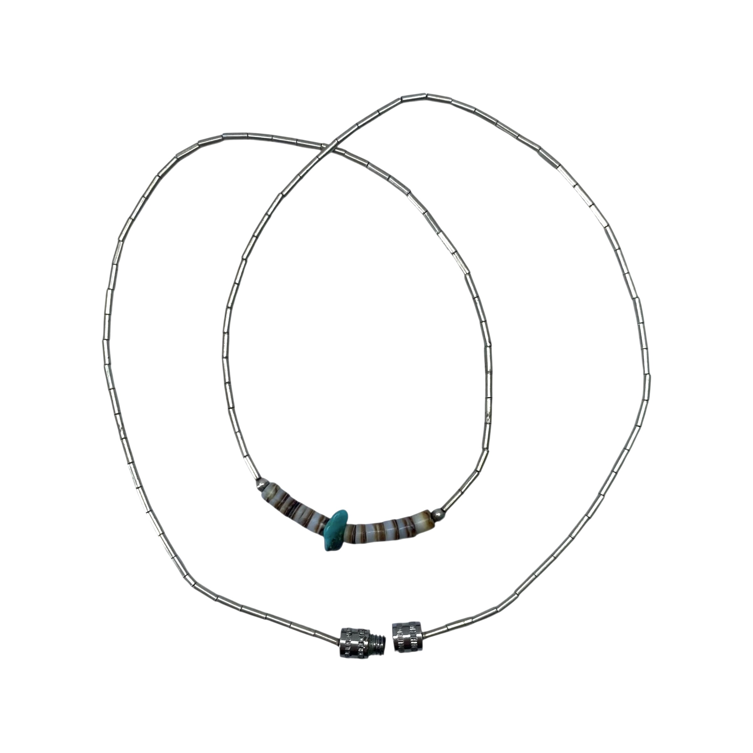 Sterling Tube with Heishi Shell and Turquoise Bead 15in Necklace 3.1g