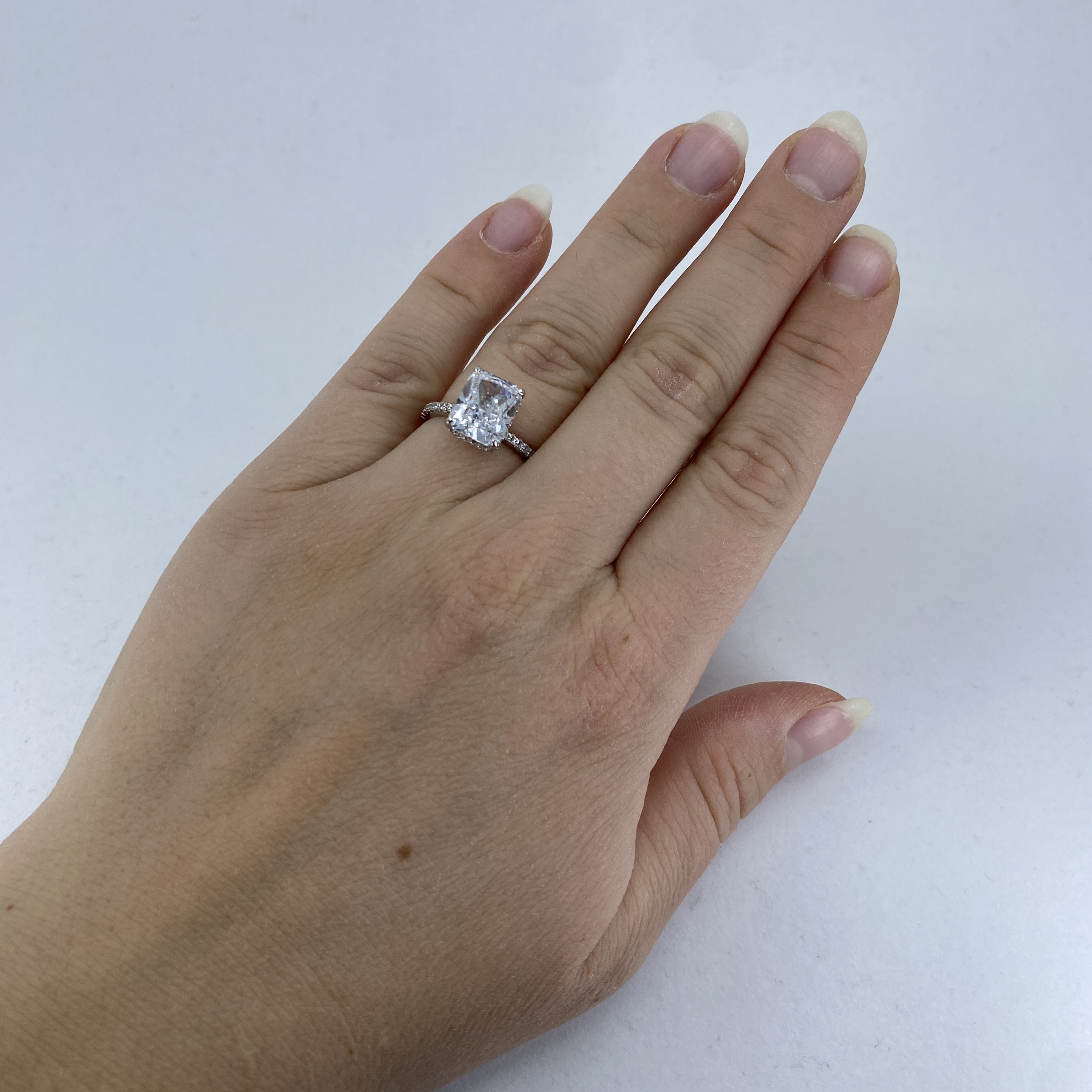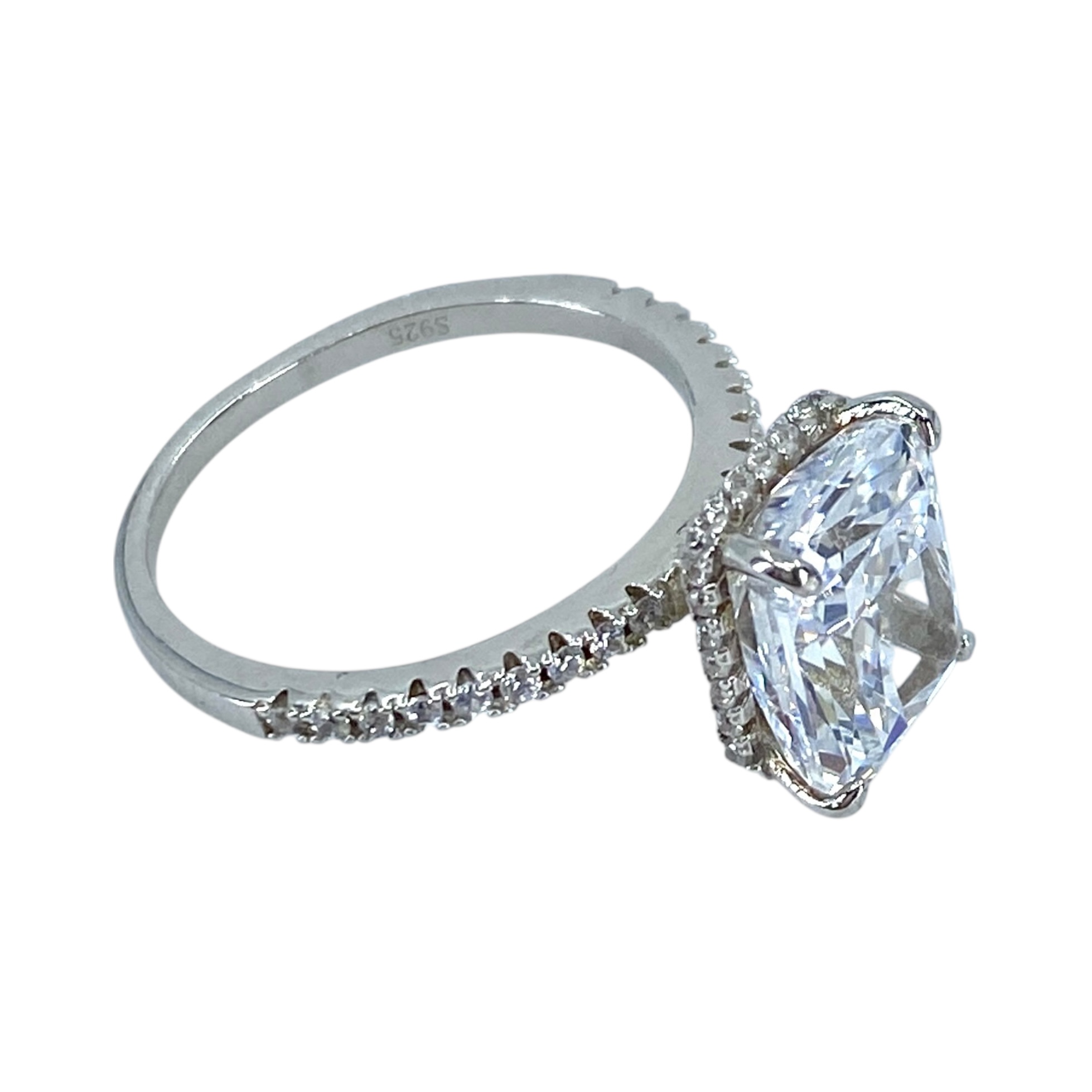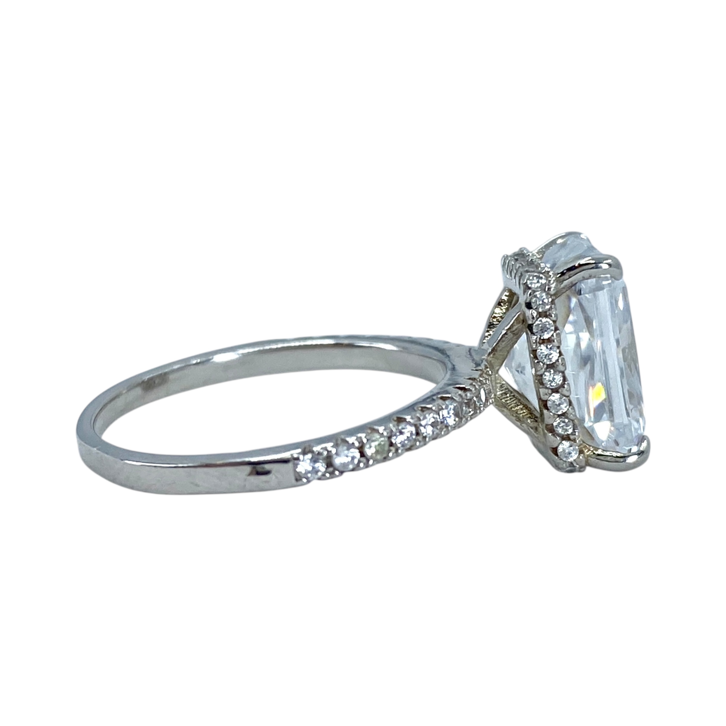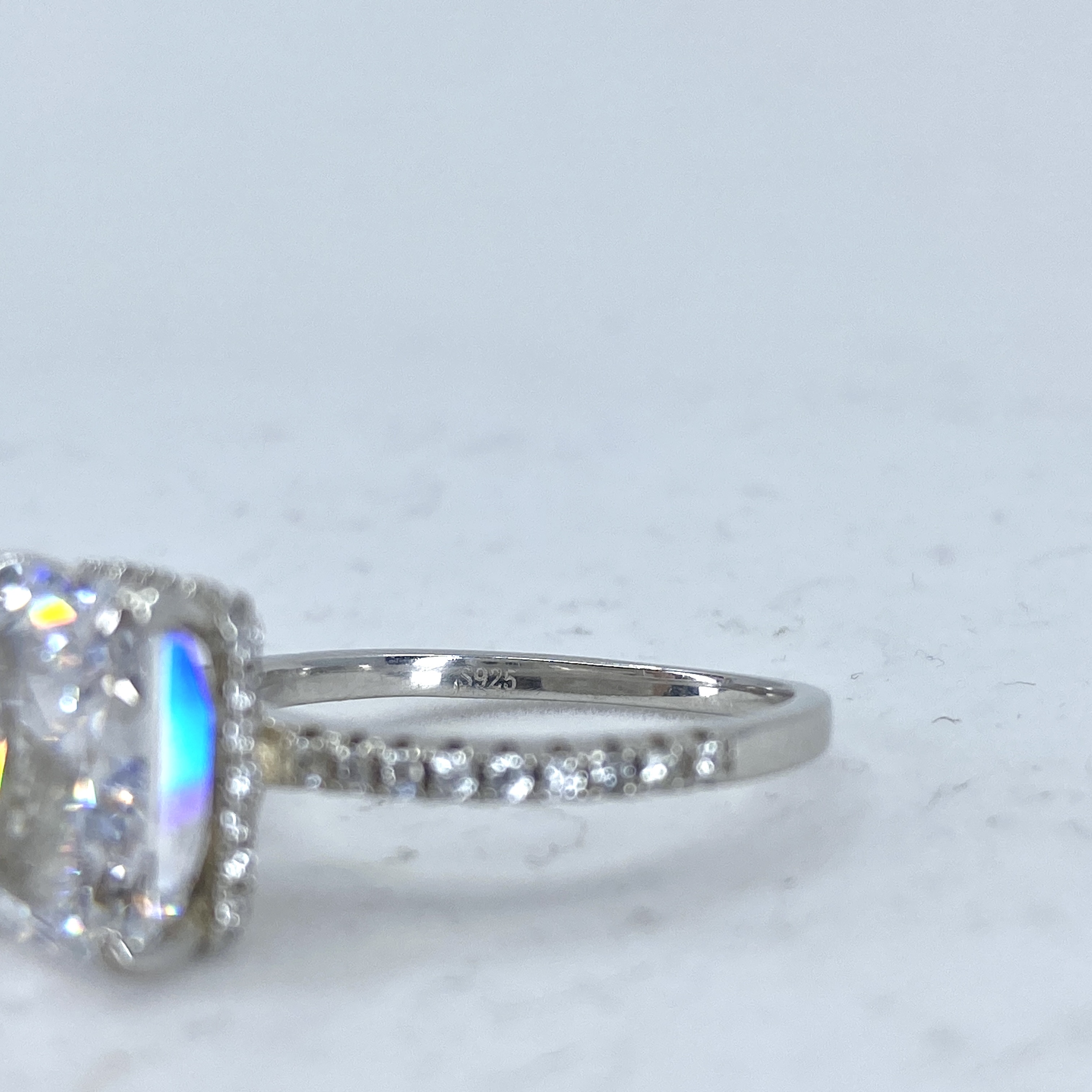 Sterling Radiant Rhinestone Hidden Halo Ring 4g sz 6 Engraved S925