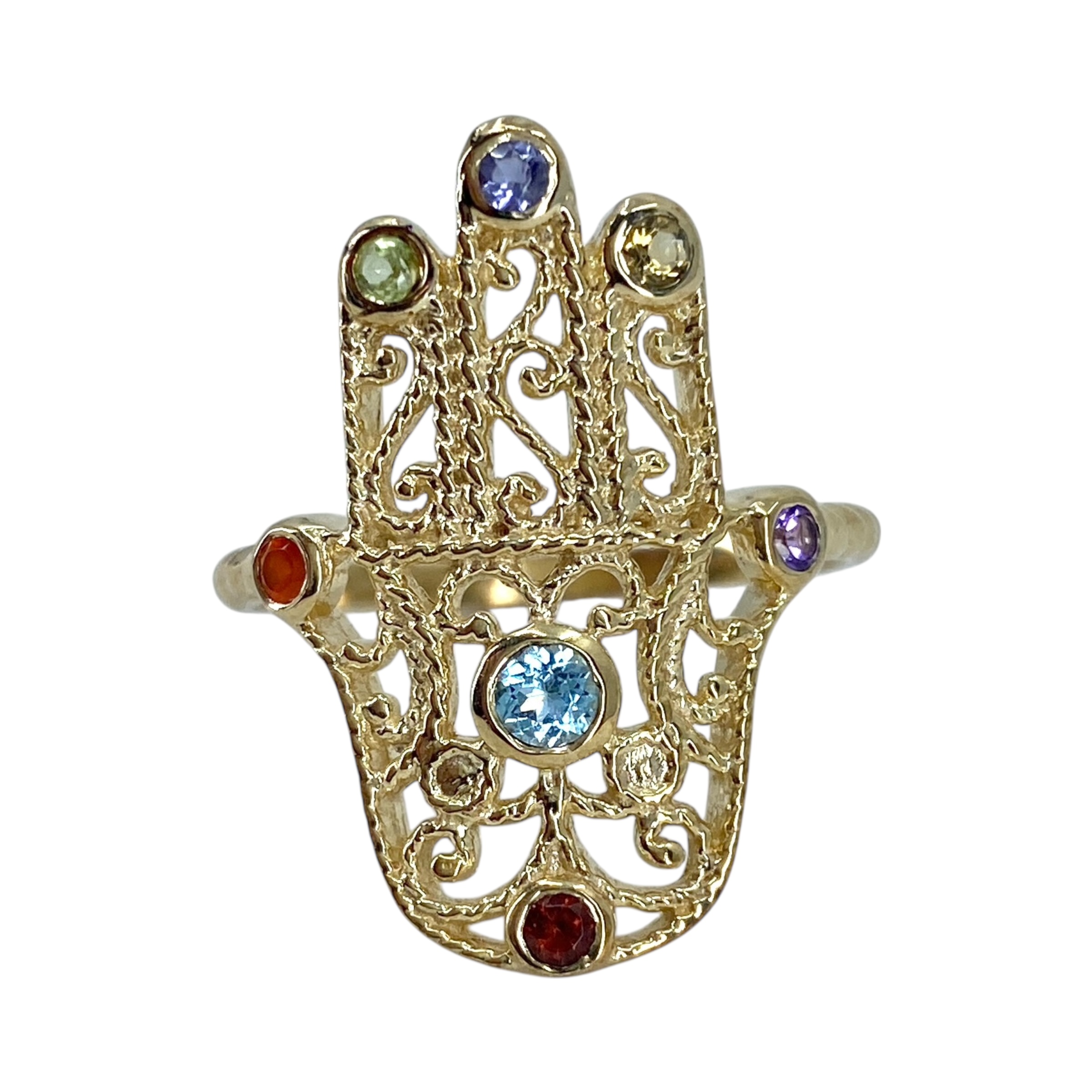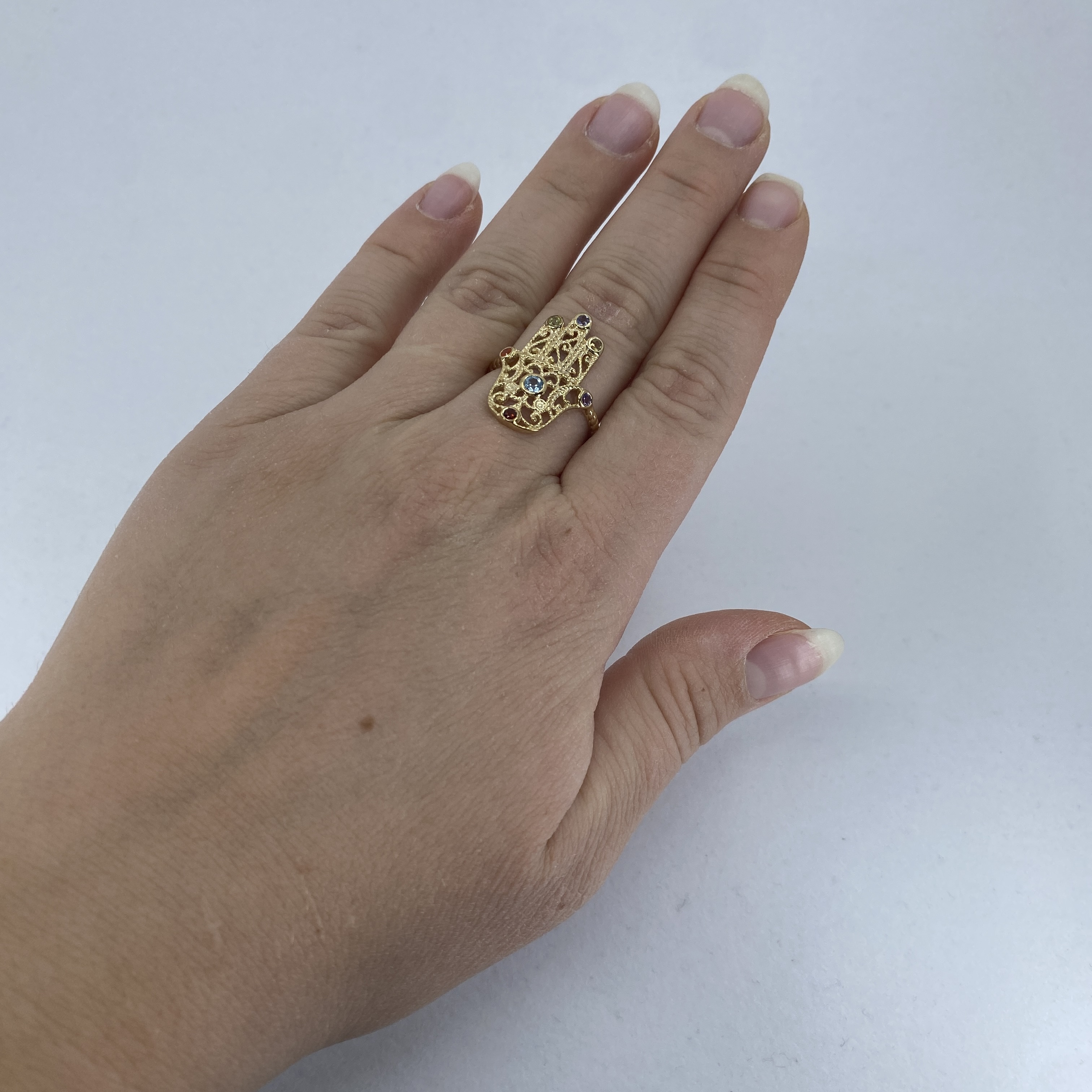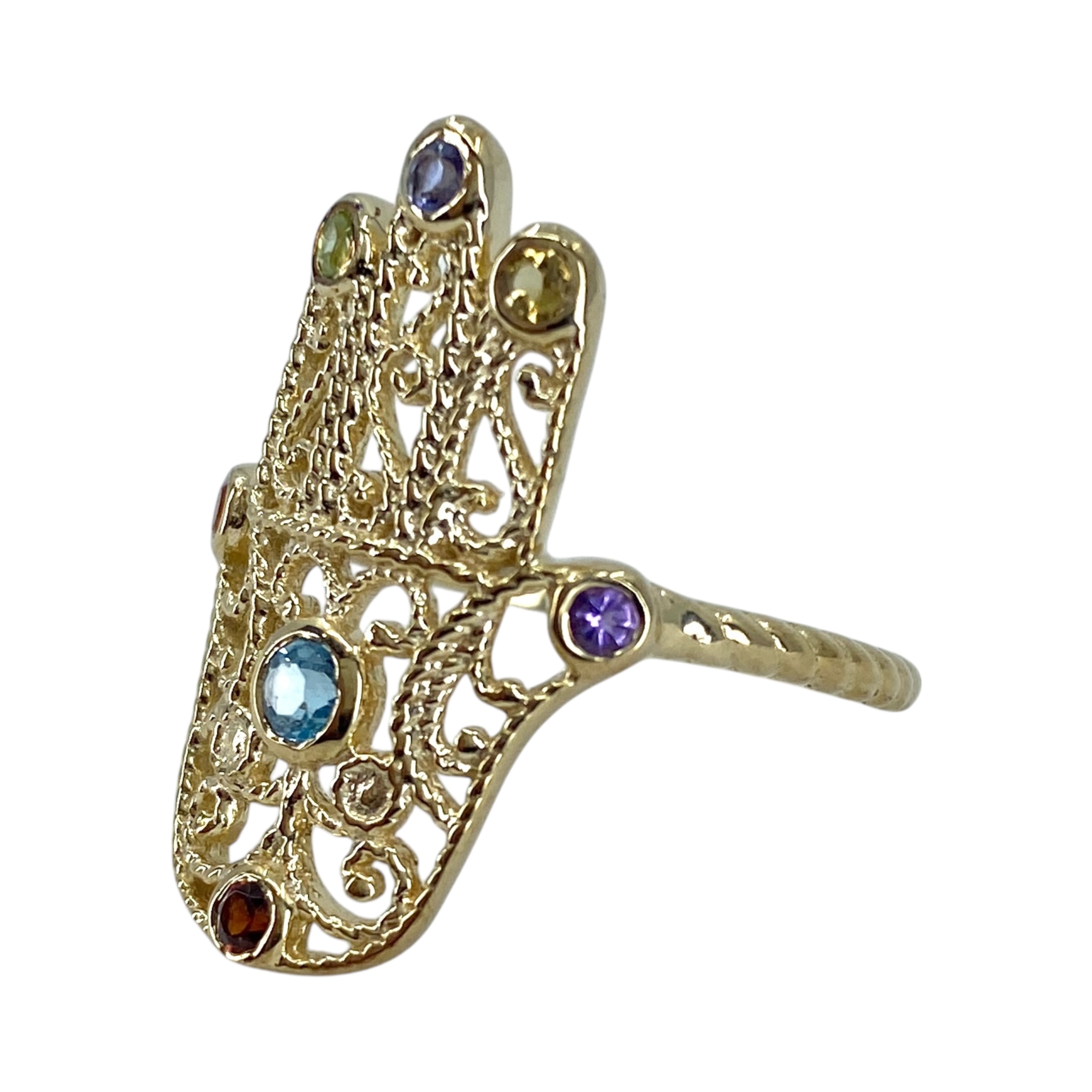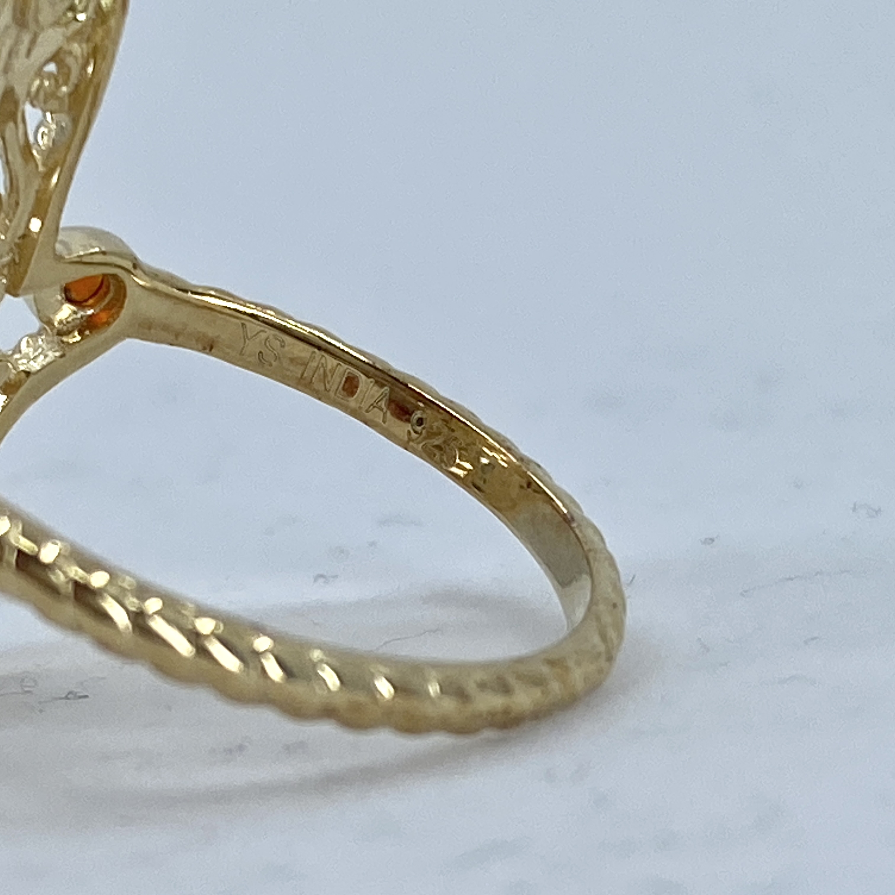 Signed Sterling Citrine Topaz Iolite Peridot Fire Opal Hand Filigree Ring 3.3g sz 8.75 Engraved YS India 925