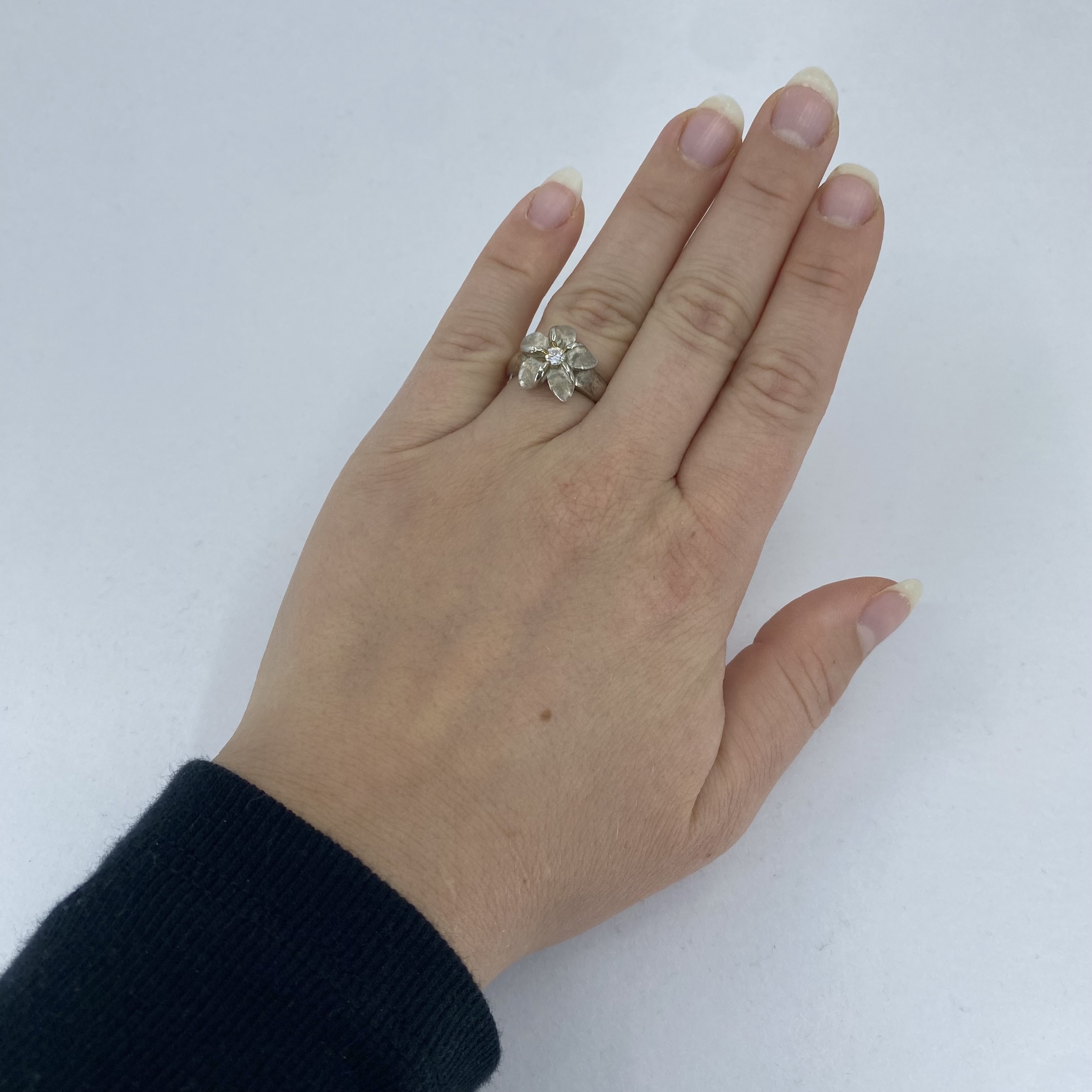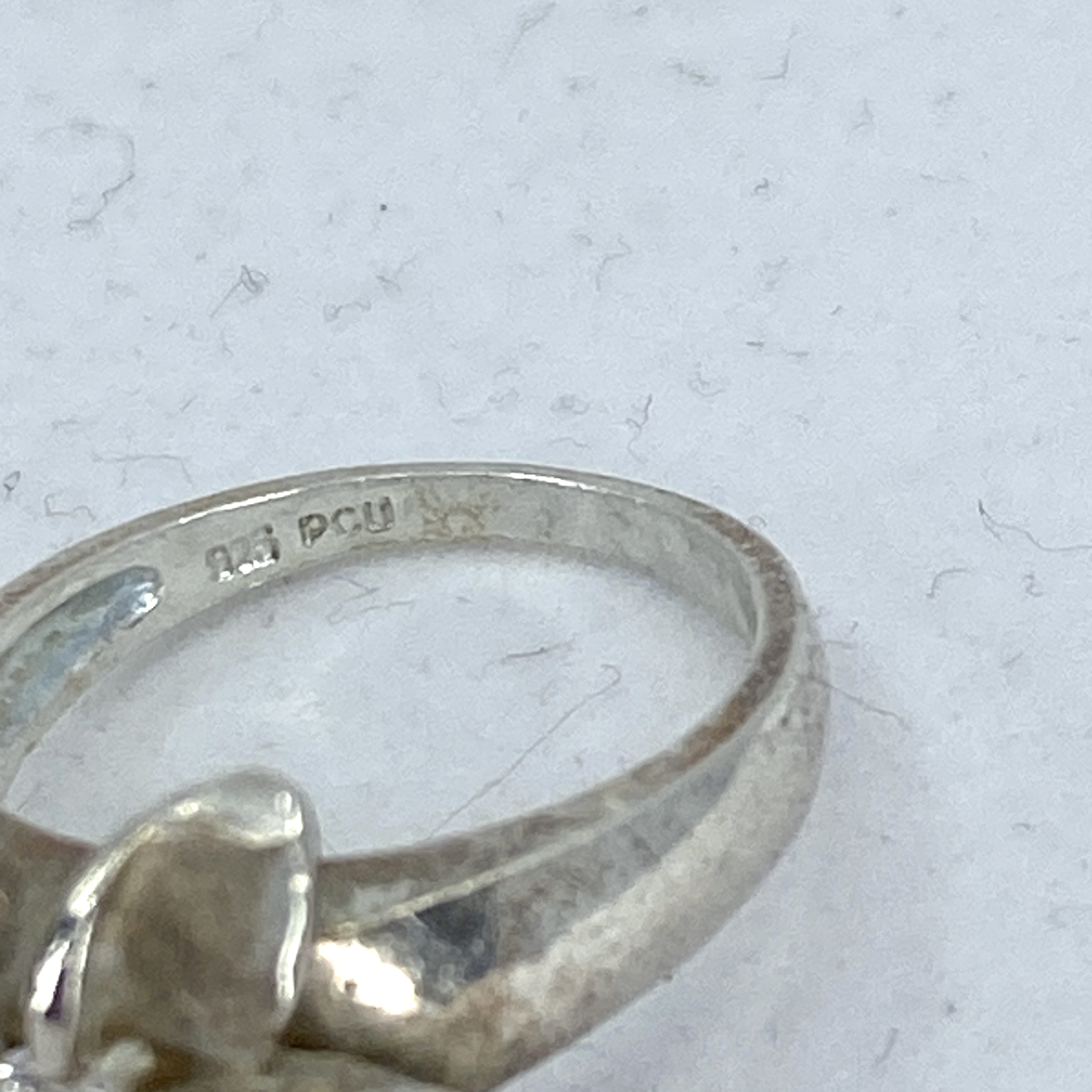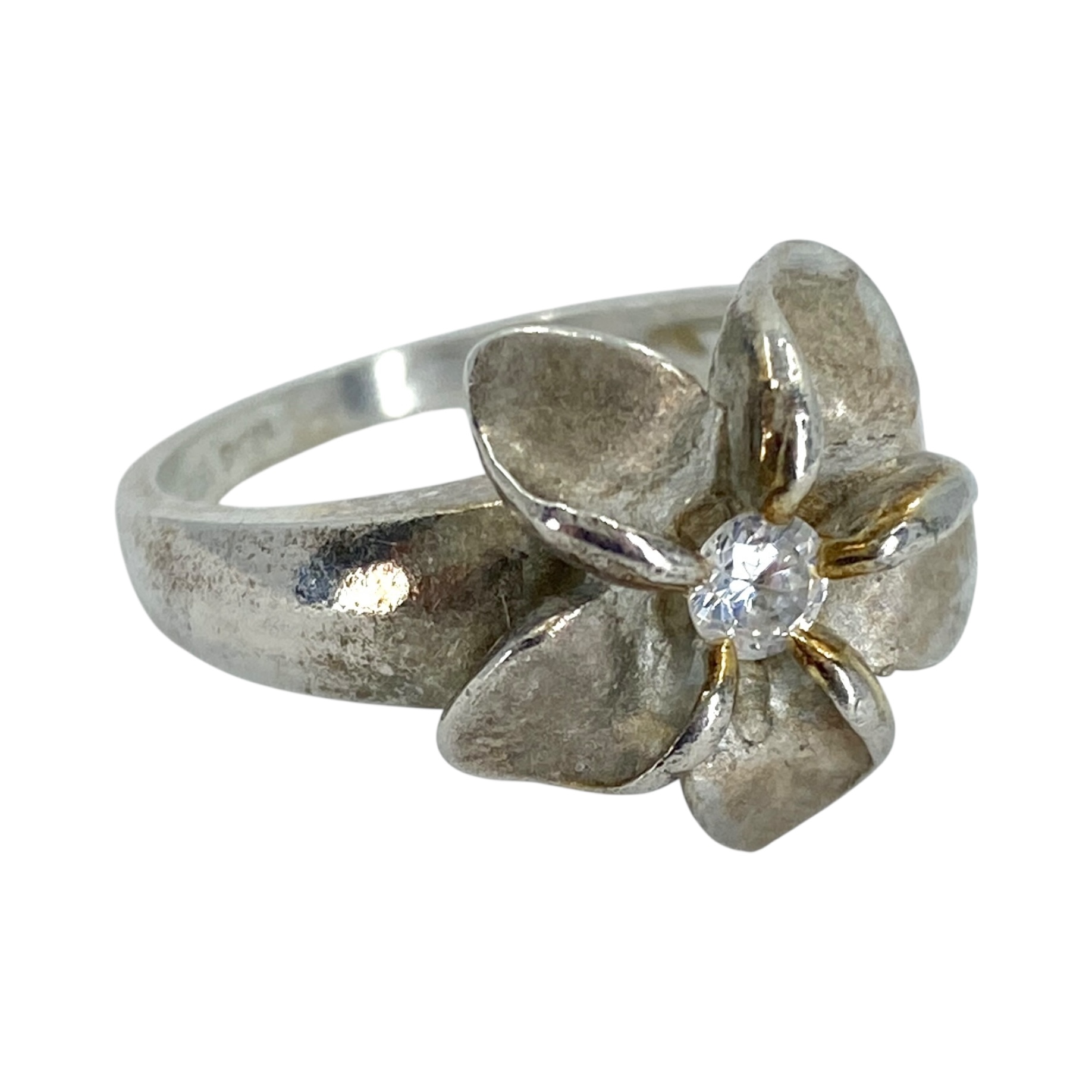 Signed Sterling Rhinestone Plumeria Flower Ring 5.1g sz 7 Engraved 925 PCU