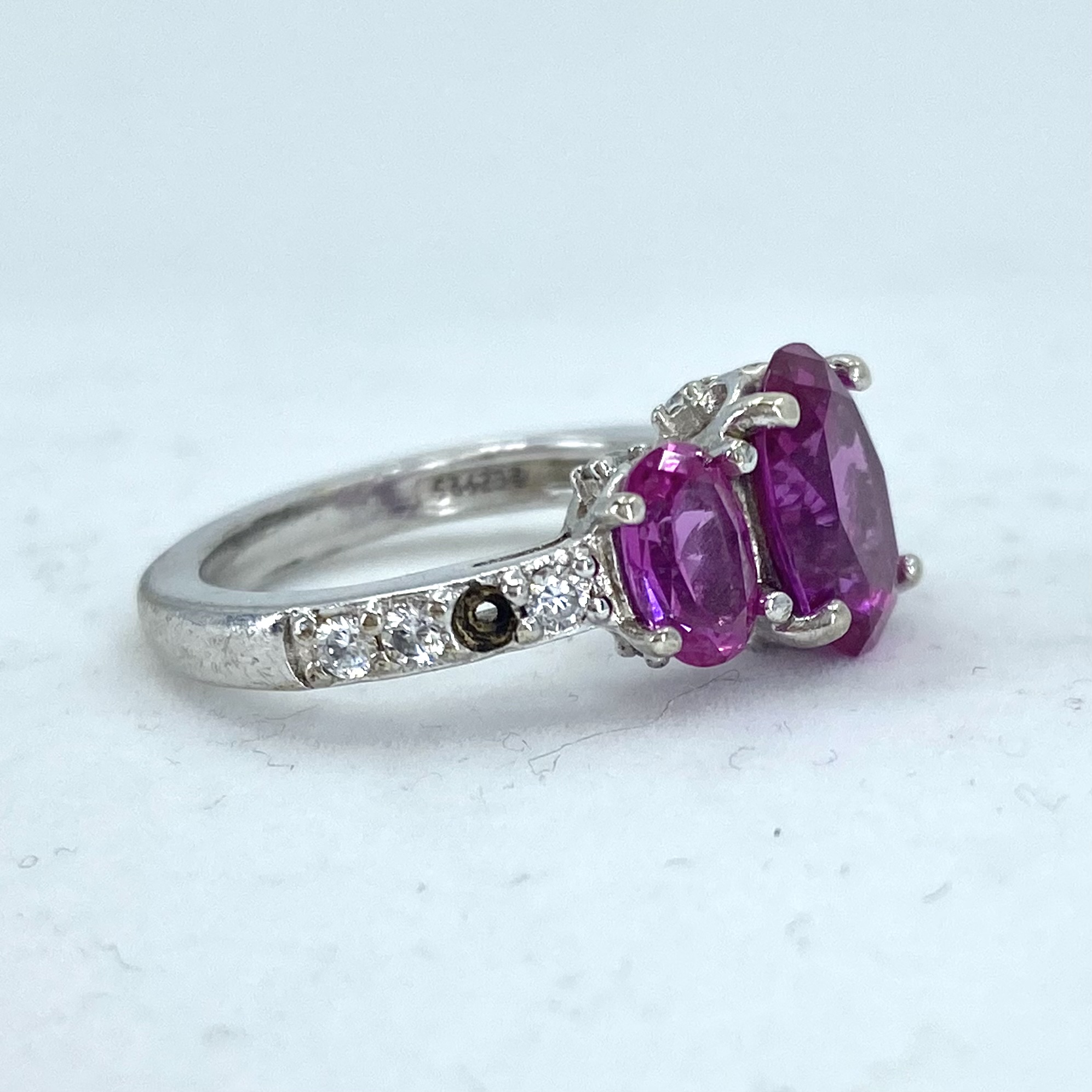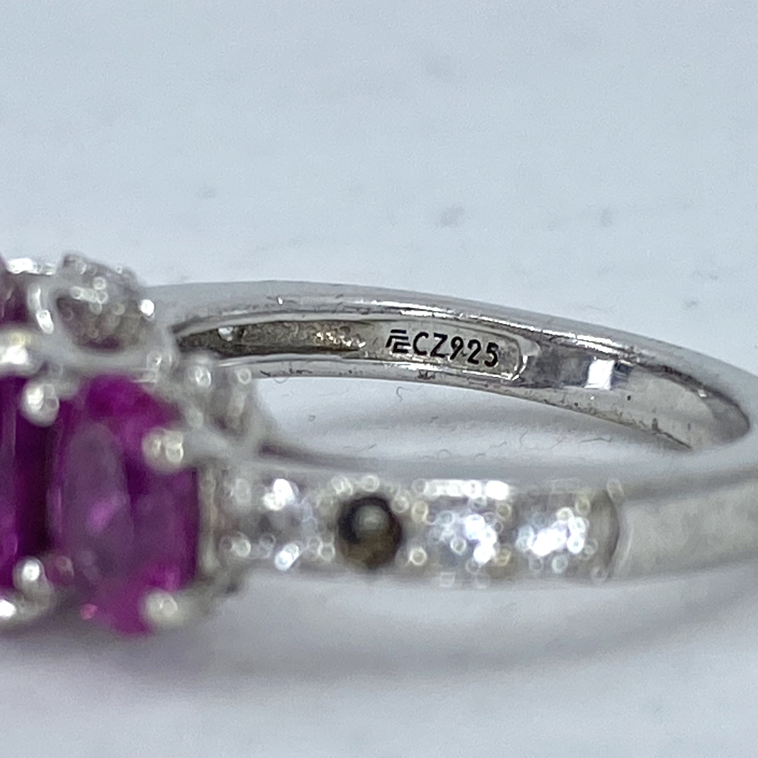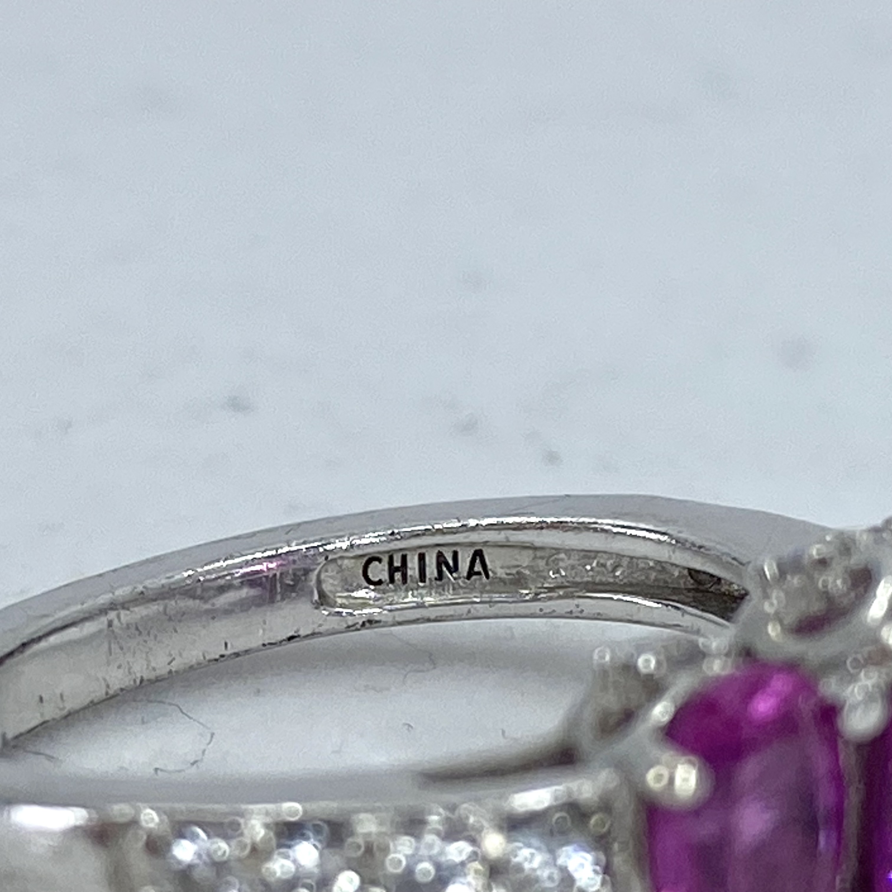 Sterling Pink Sapphire CZ Oval Cocktail Ring Missing stone 4g sz 4.5 Engraved E CZ 925 China
