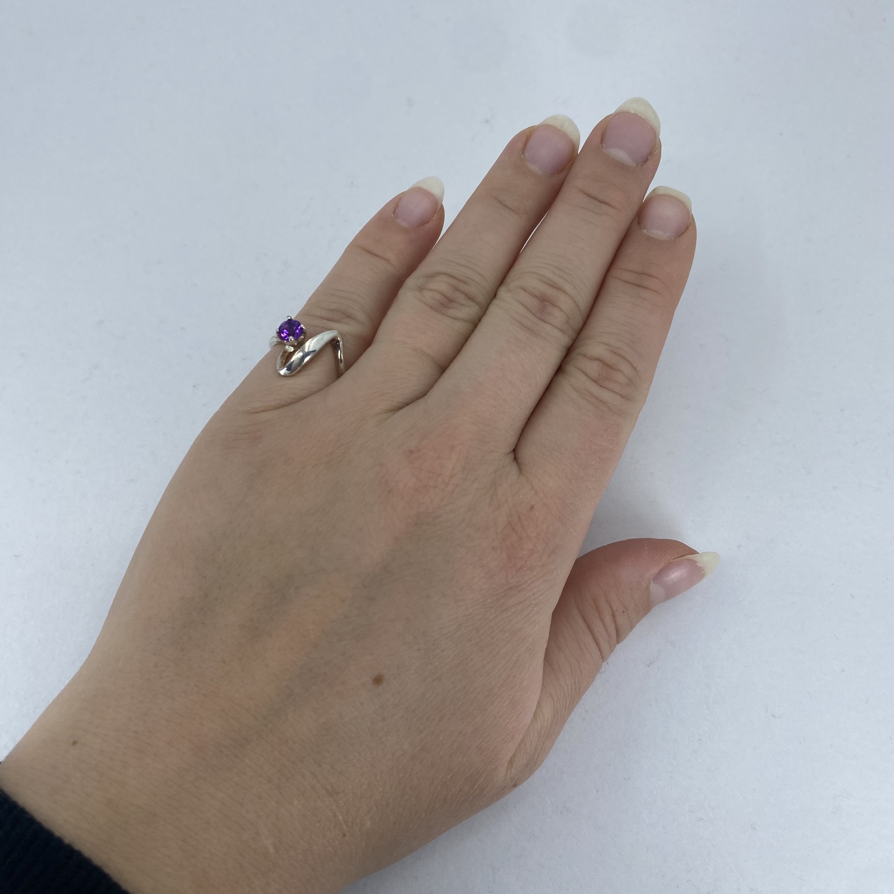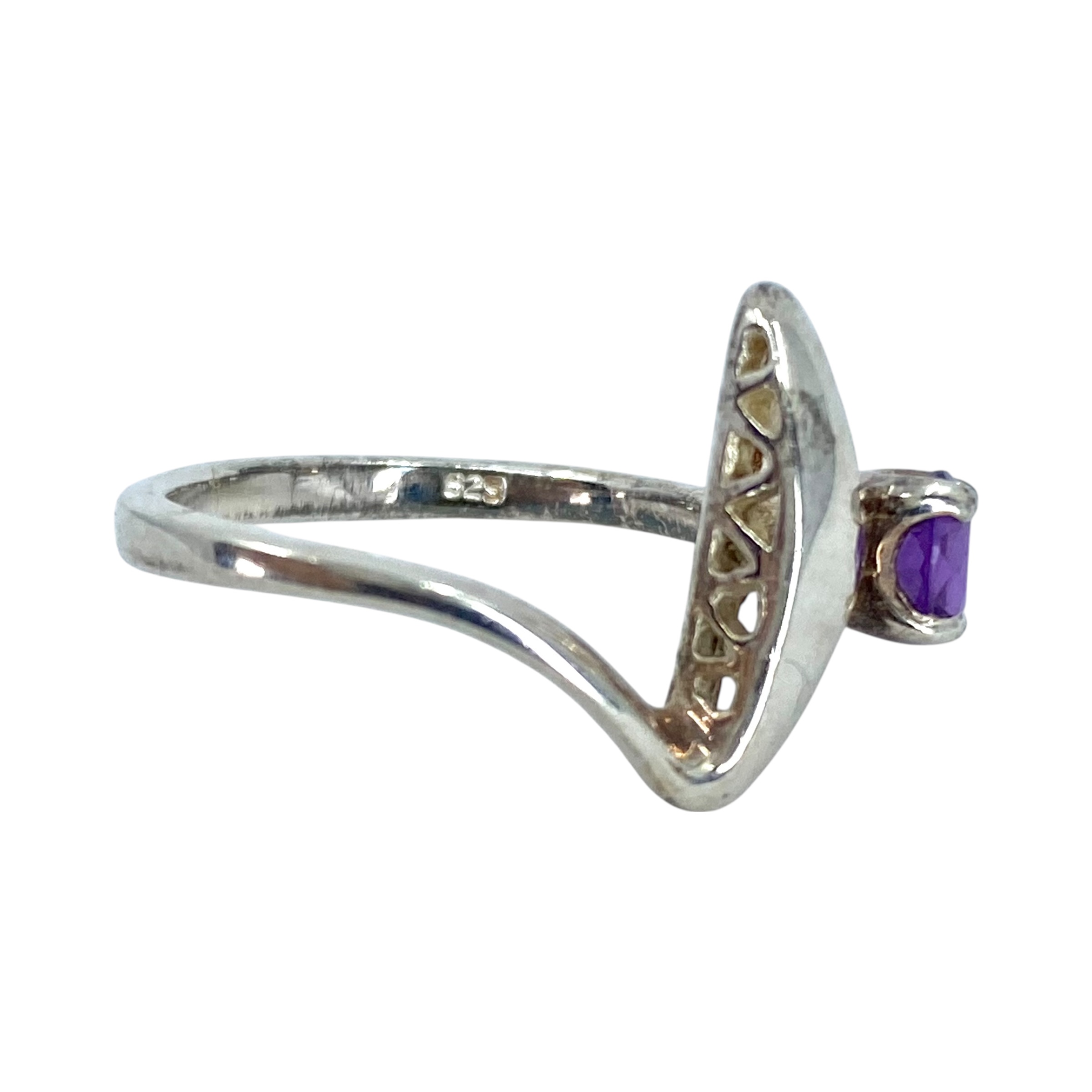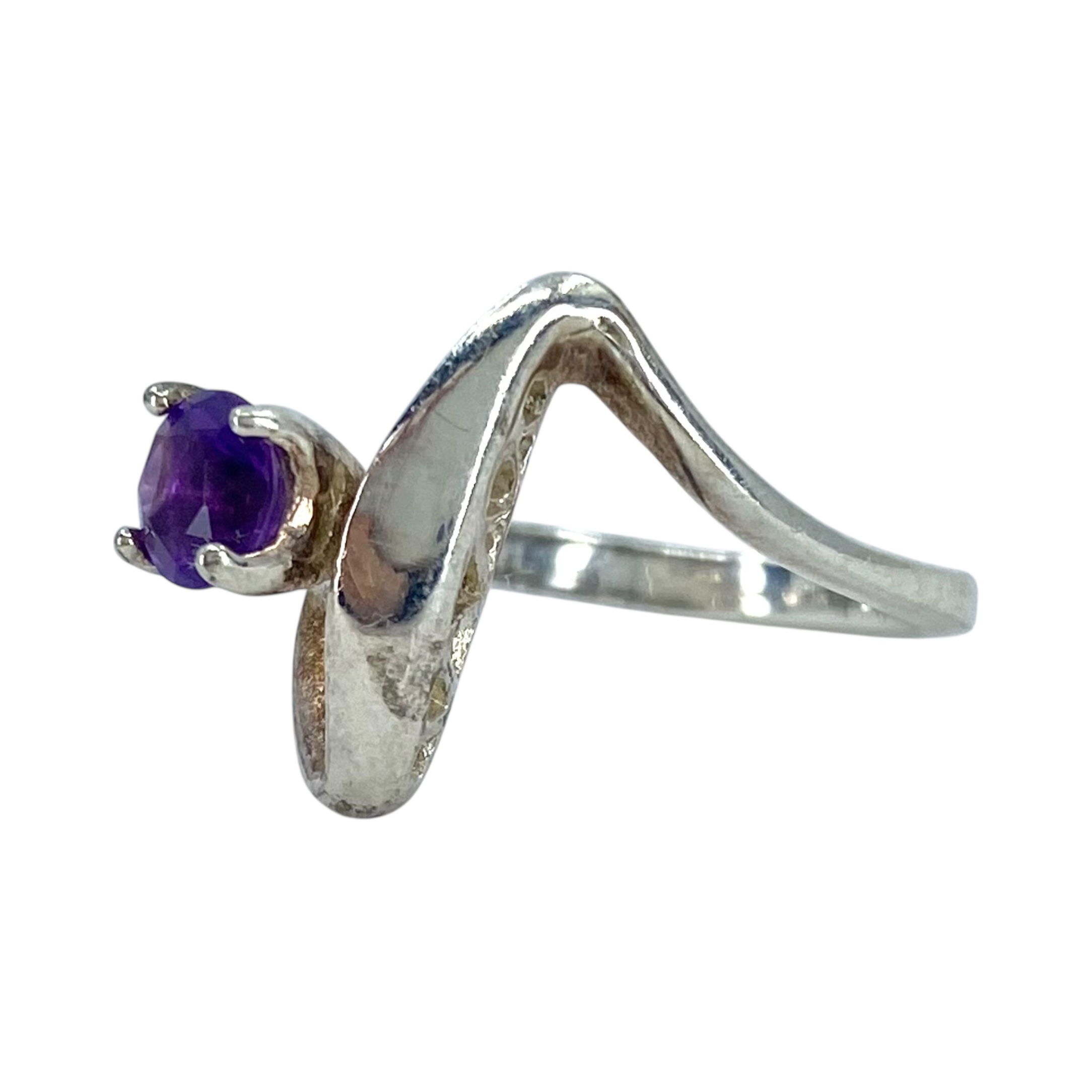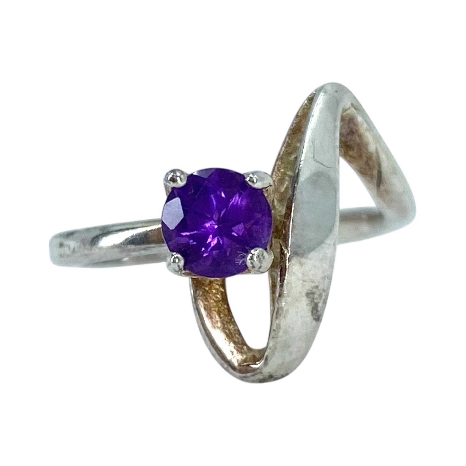 Sterling Amethyst Round Ribbon Ring 3g sz 4.75 Engraved 925