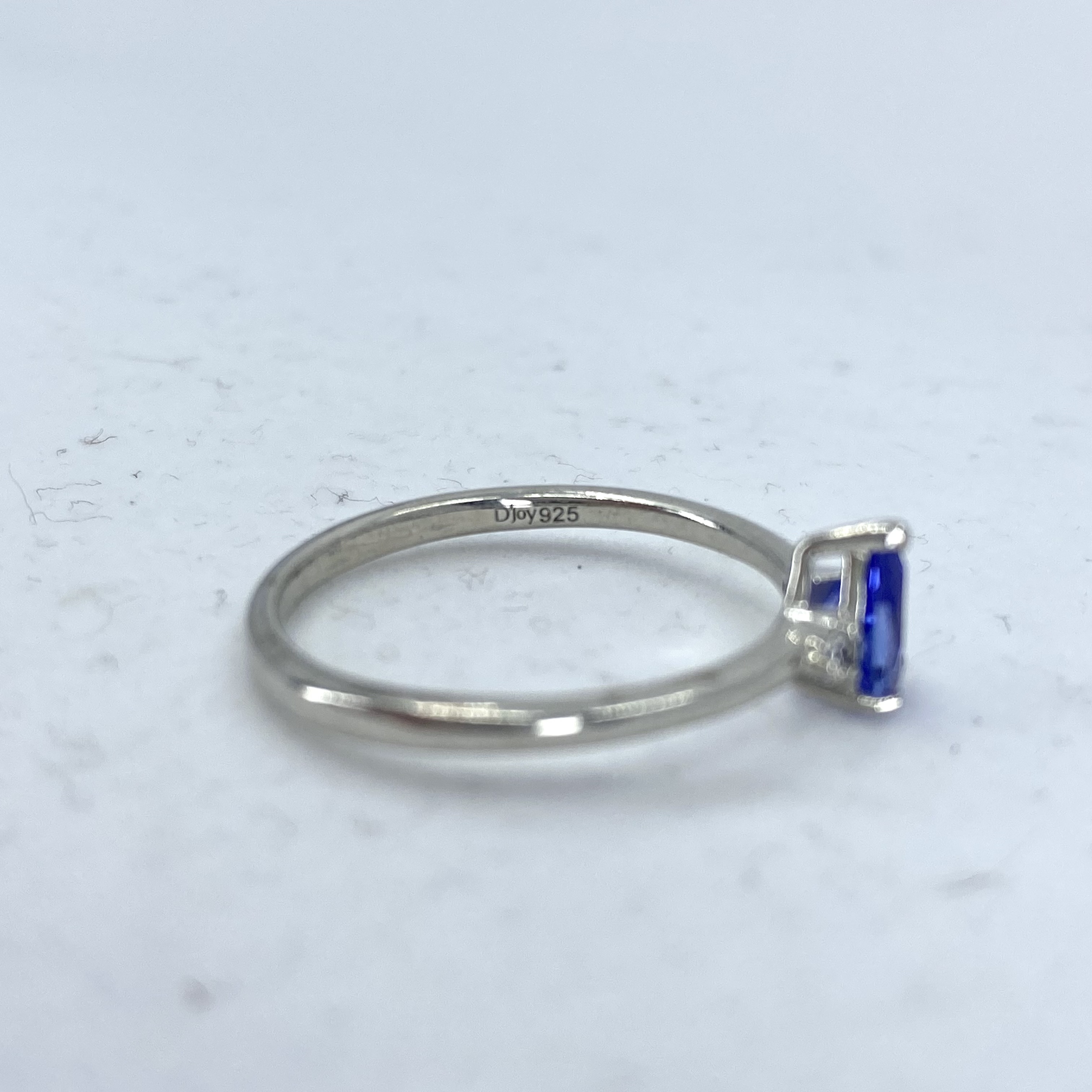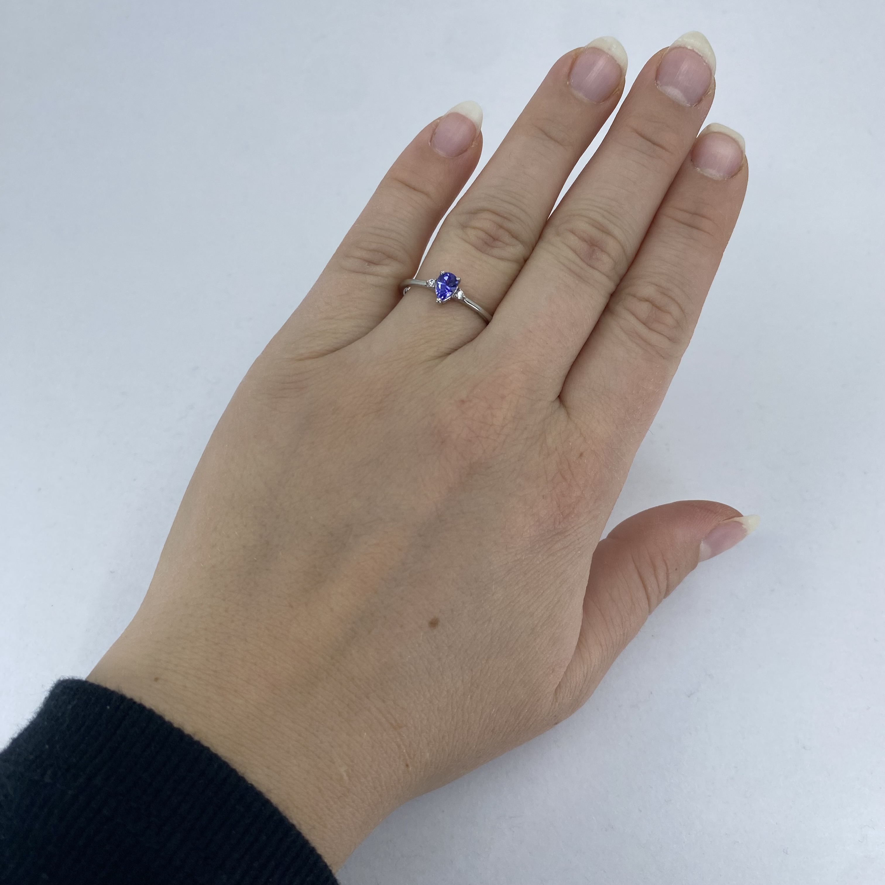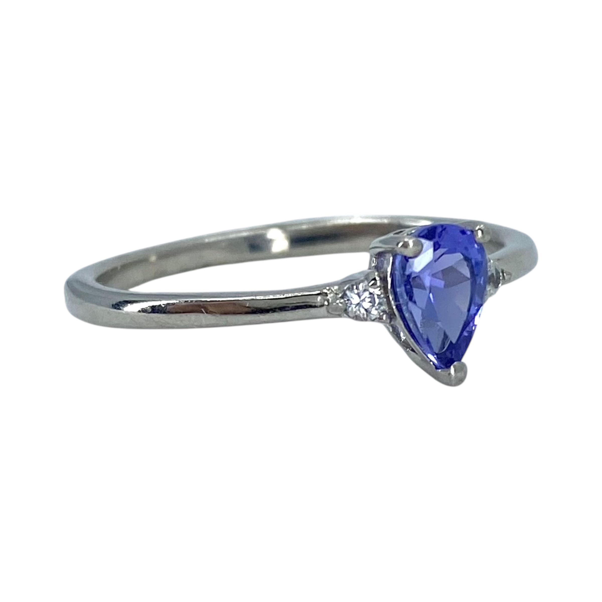 DJoy Sterling Tanzanite Pear and Colorless Topaz? Dainty Ring 2g sz 7.75 Engraved 925 DJoy