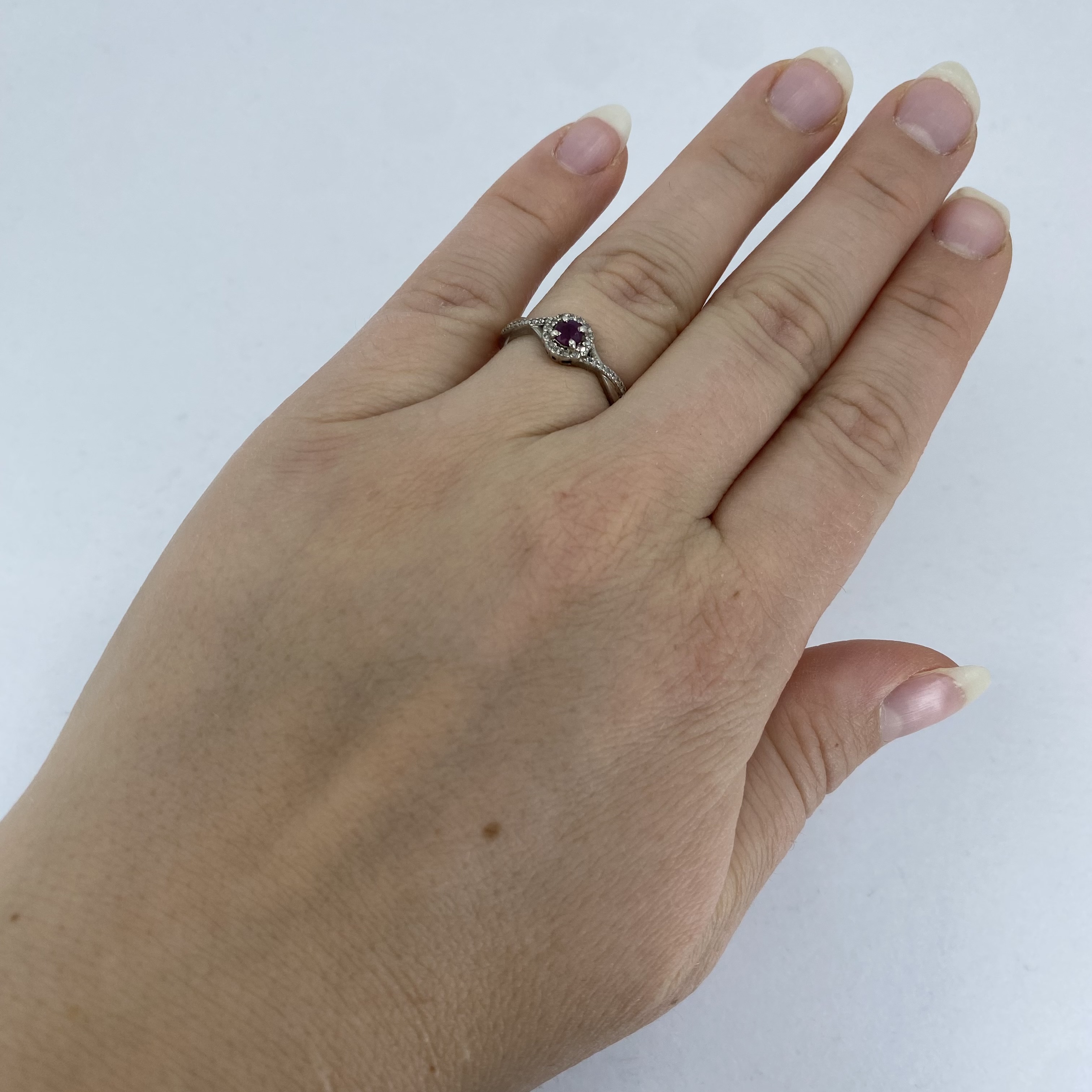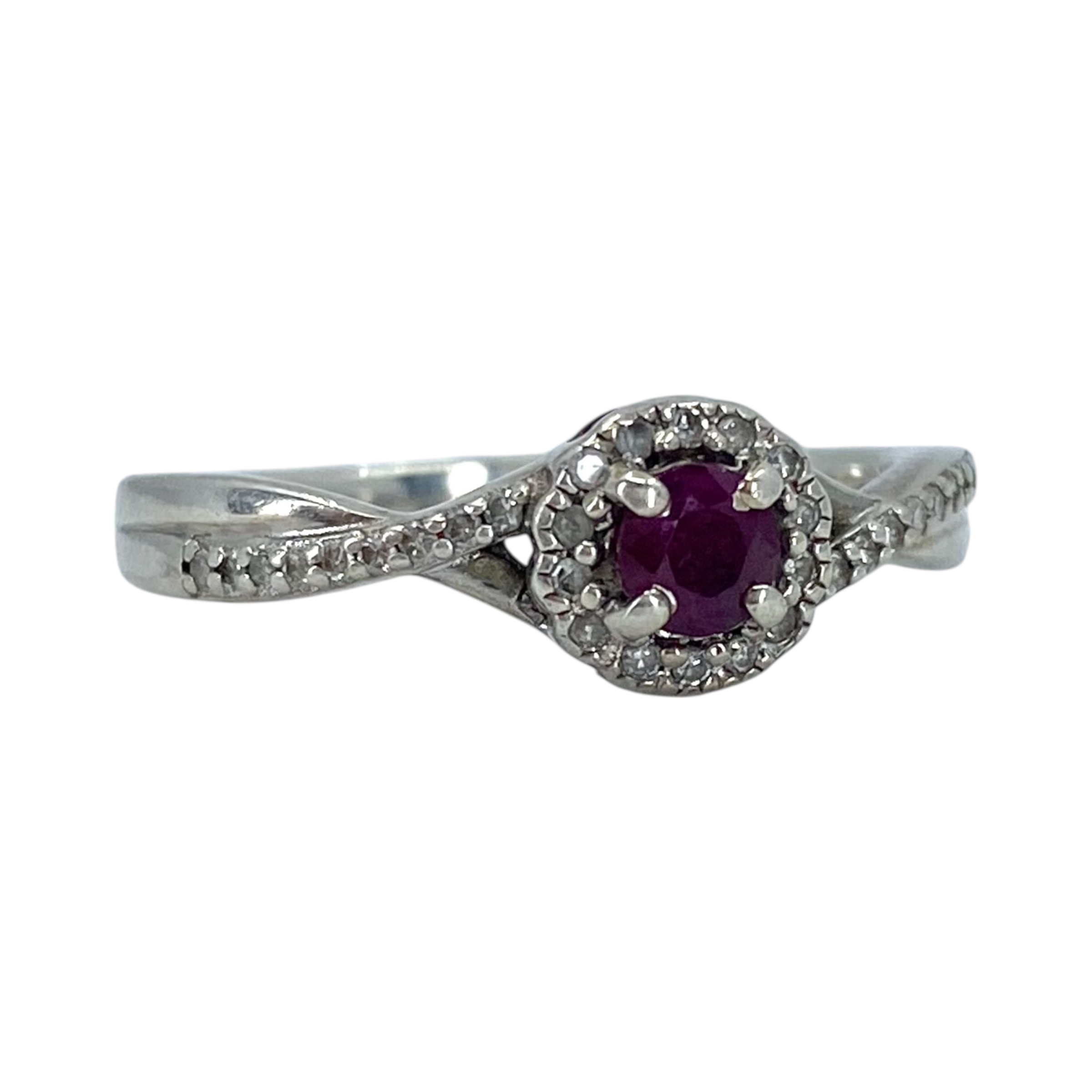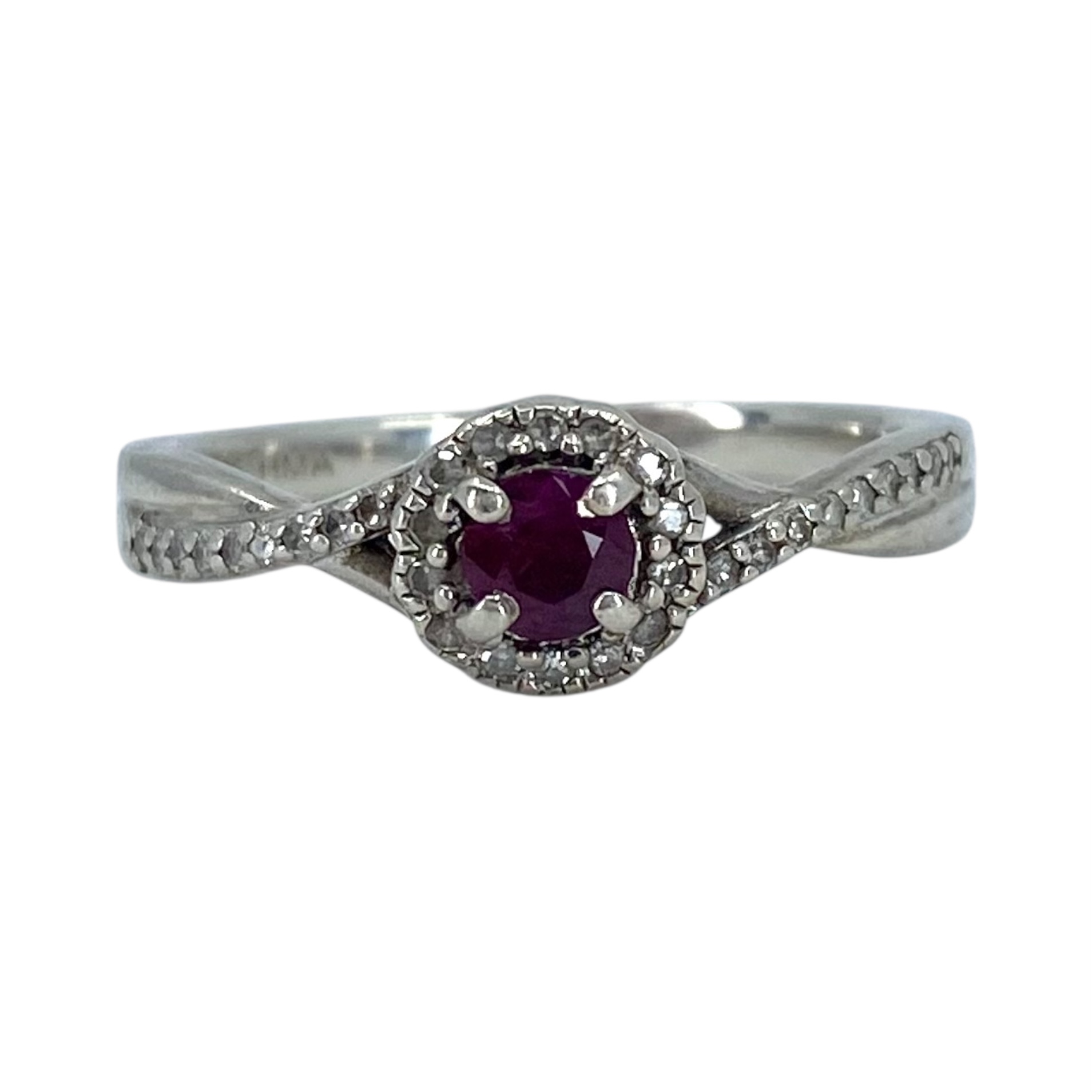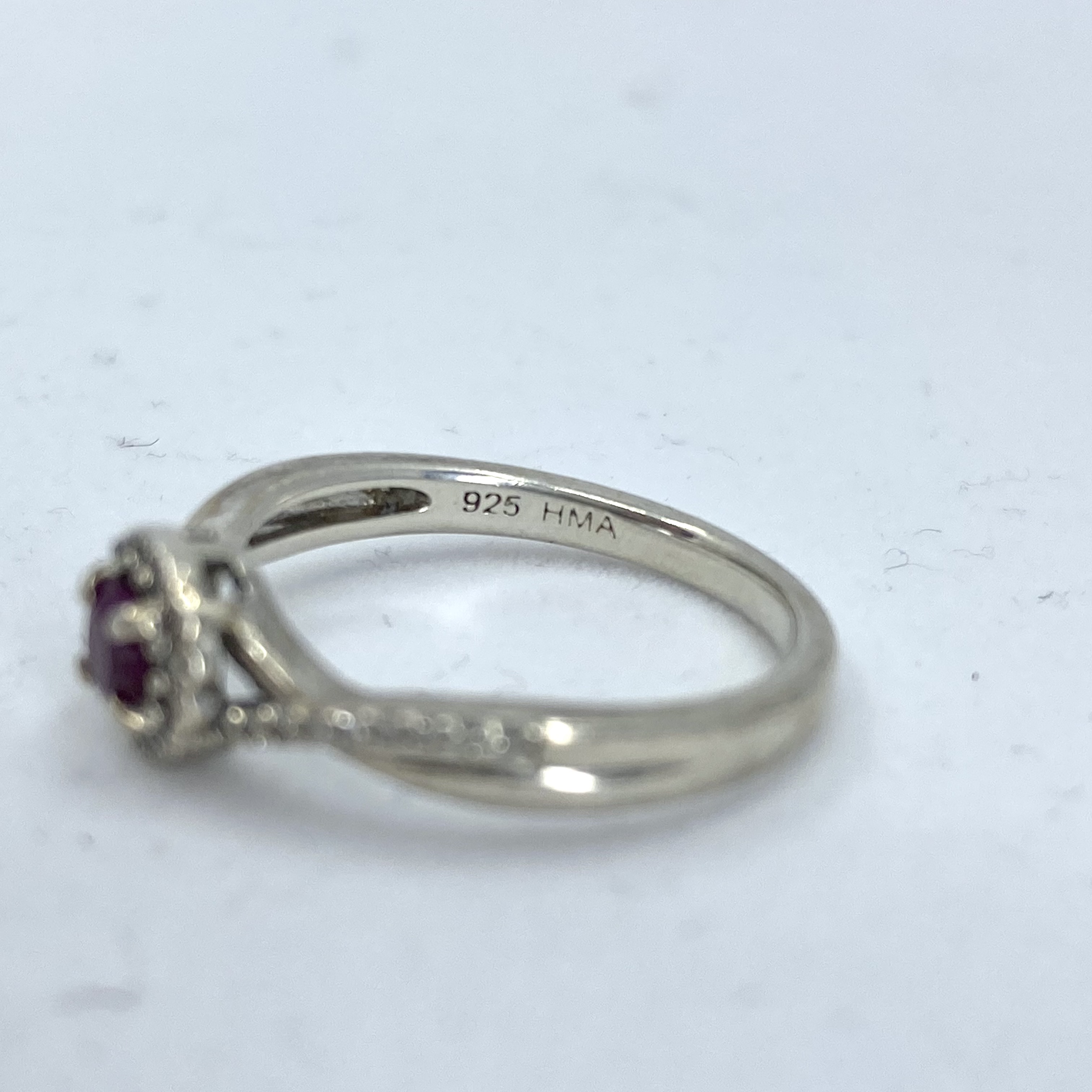 Signed Sterling Ruby And Diamond Halo Ring 2.4g sz 6.75 Engraved HMA 925